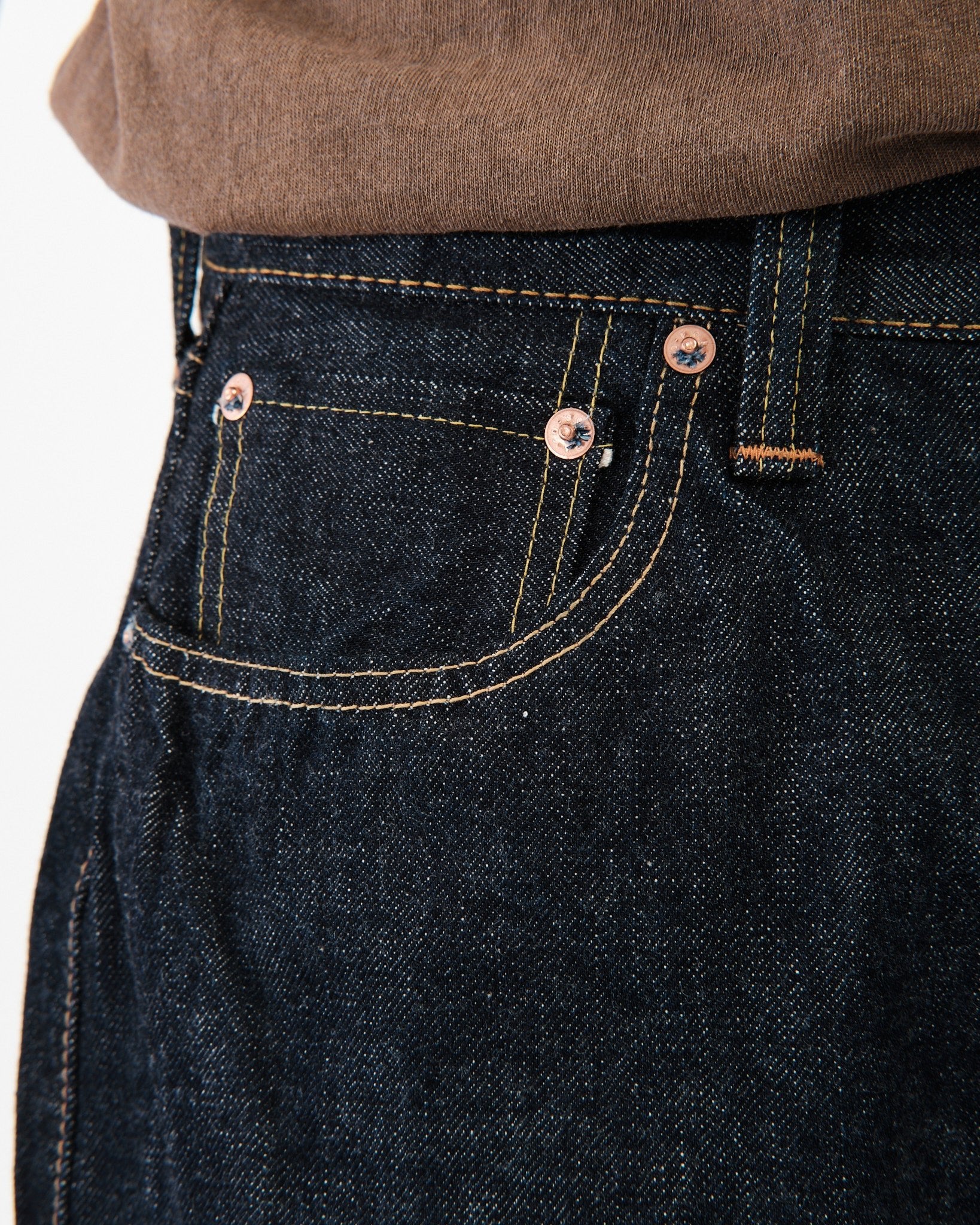 Il FULL COUNT 0105W WIDE DENIM in INDIGO BLUE (0105W) rappresenta una versione raffinata del denim rilassato, offrendo sia comfort che maestria in una silhouette più ampia. Realizzato in 100% cotone dello Zimbabwe, questo denim selvedge originale da 13.7oz è altamente elastico, resistente e traspirante, garantendo un'esperienza d'uso senza stress. Grazie alla profonda collaborazione di Full Count con artigiani esperti, il denim è tessuto con una tensione ottimale, migliorando la morbidezza naturale e la durabilità del cotone dello Zimbabwe. Nota per la sua alta capacità di assorbimento, questa stoffa allontana efficacemente l'umidità, rendendola una scelta confortevole anche in climi più caldi. Precedentemente denominato il MODELLO 1953, questa versione aggiornata presenta una silhouette molto più ampia, un aumento dell'alzata anteriore e posteriore per un migliore appoggio sui fianchi, e un'area dei fianchi espansa—mantenendo comunque una forma equilibrata che evita l'ingombro.