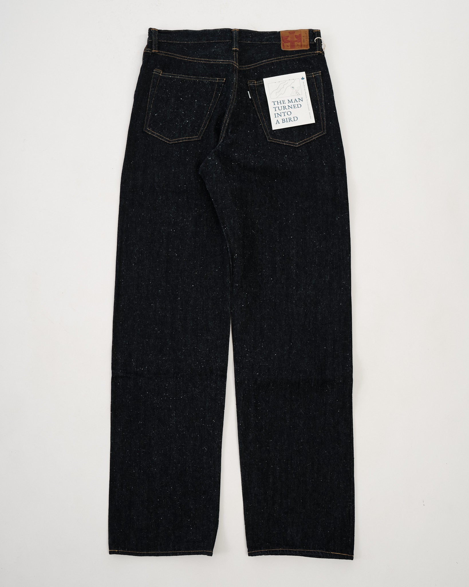 I Jeans Larghi OMOTO 0812 combinano una vestibilità rilassata con una lavorazione di prima qualità, realizzati in denim nep da 16oz per una sensazione unica e texture. I filati di ordito mescolano fibre di cotone corte (27mm o meno) per creare una superficie irregolare e robusta, mentre i filati di trama sono filati utilizzando la tradizionale tecnica "gara-bo", conferendo un aspetto rustico e filato a mano con traspirabilità ariosa.