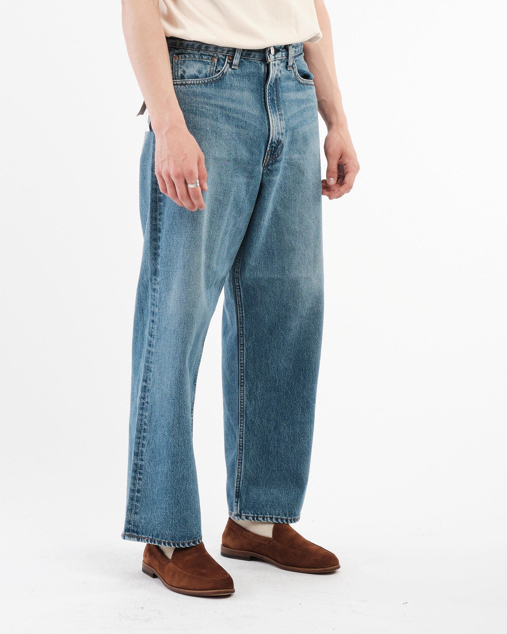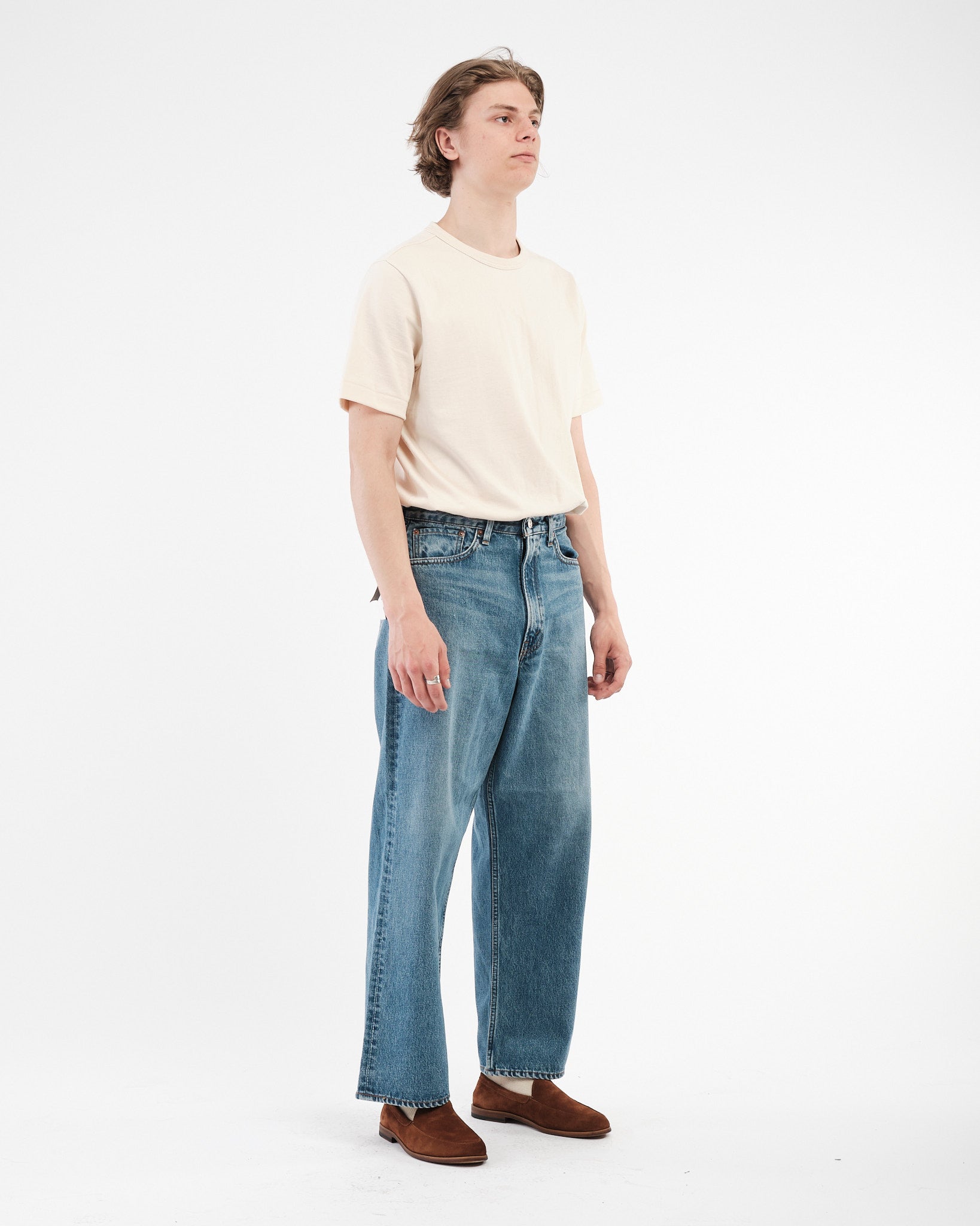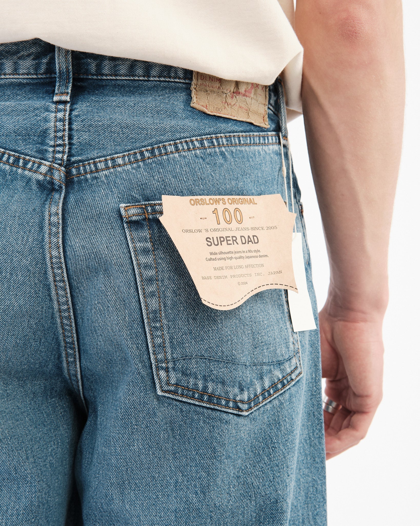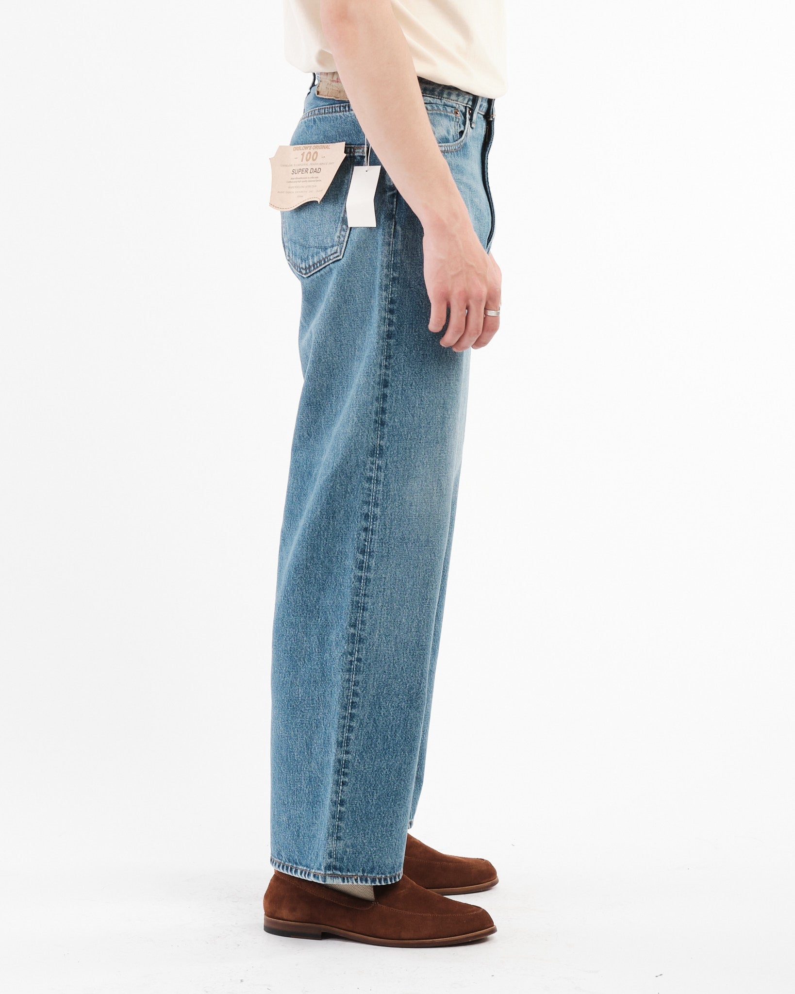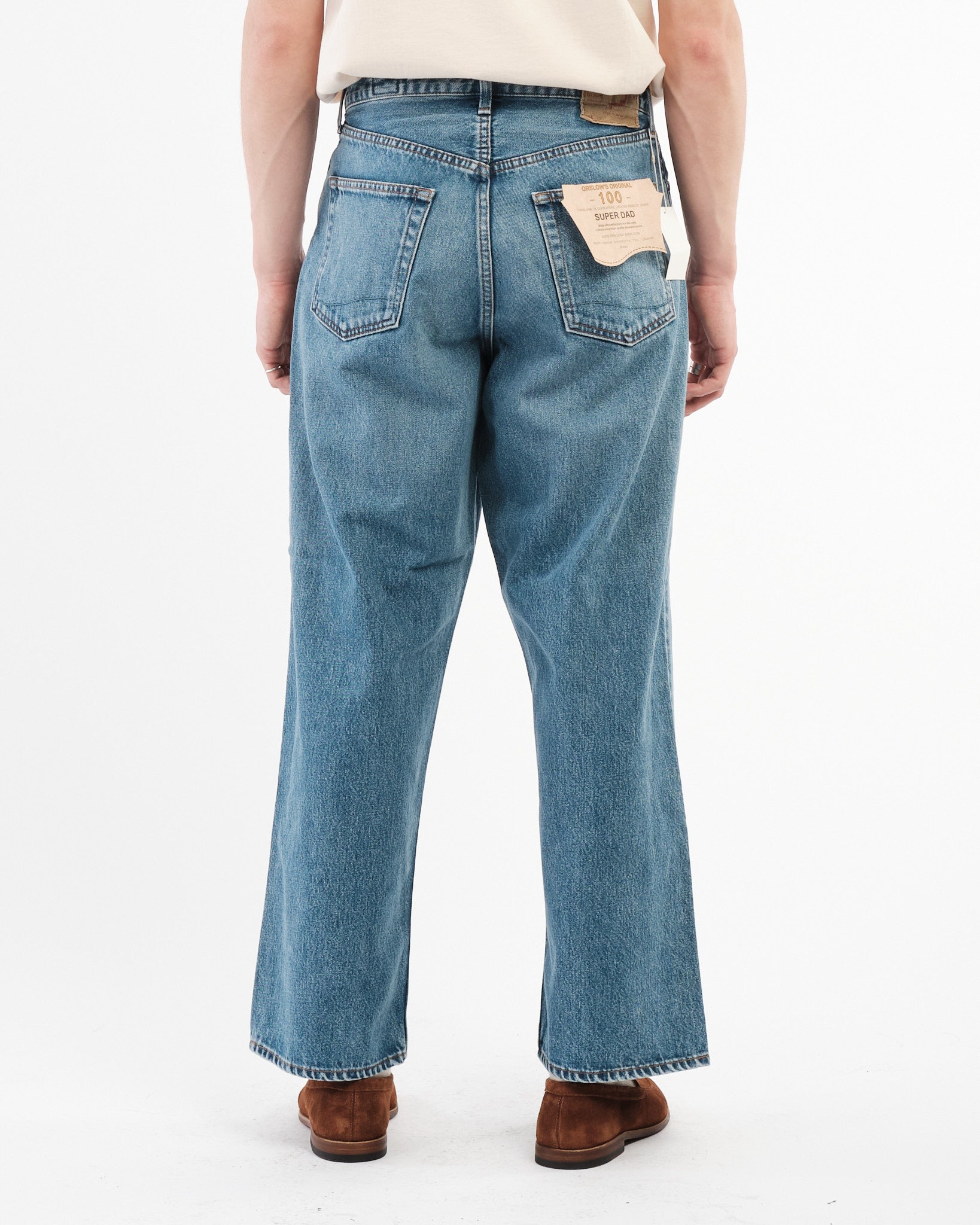 I Pantaloni in Denim Super Dad di orSlow sono un tributo agli stili di denim rilassati e confortevoli che sono diventati popolari negli anni '90. Progettati per coloro che apprezzano una vestibilità ampia e rilassata, questi jeans offrono una vita alta con ampio spazio nel sedere e nelle cosce, che sfocia in una gamba più larga per un indosso senza sforzo. Questa silhouette è diventata una favorita tra gli appassionati di denim che cercano sia comfort che stile.