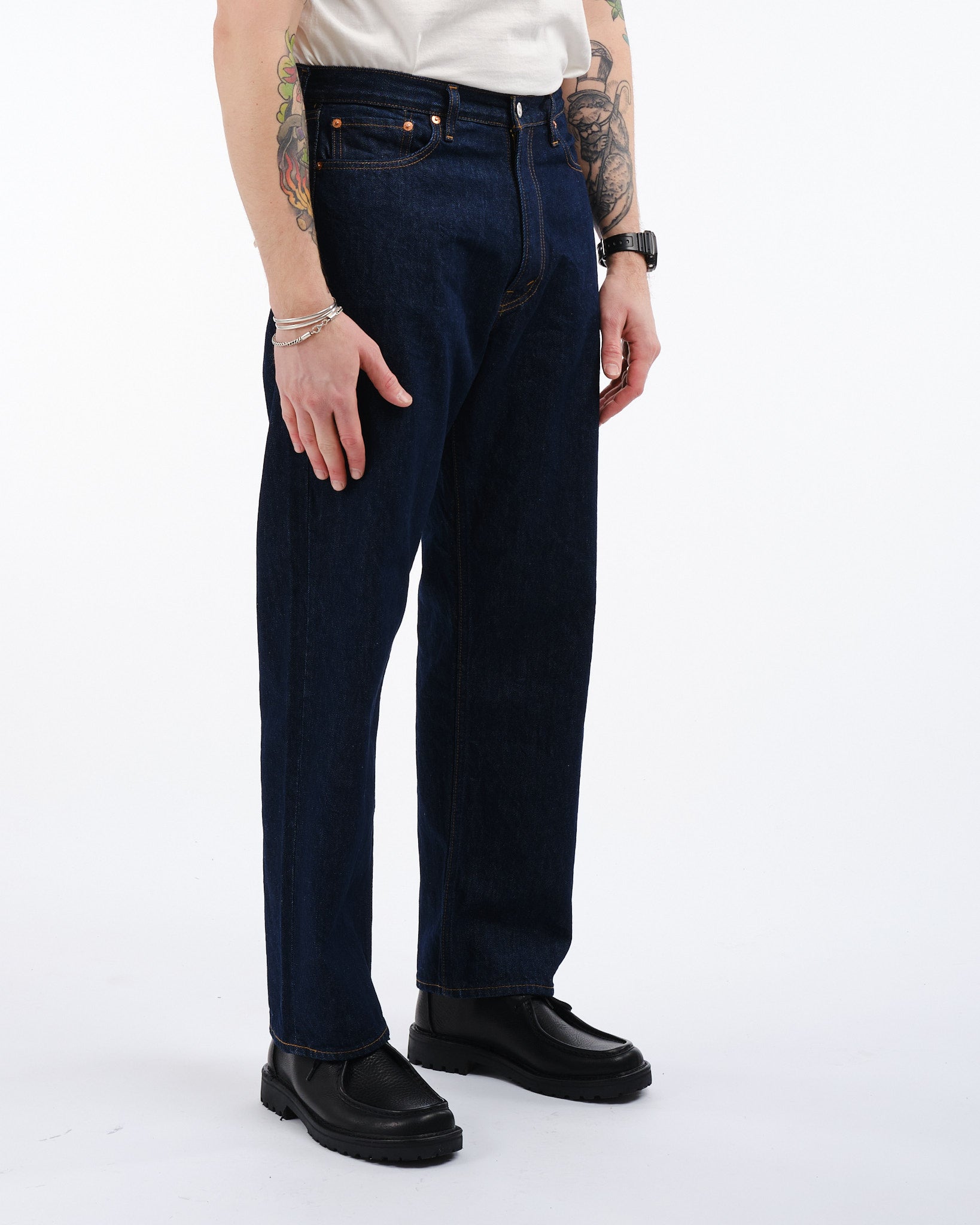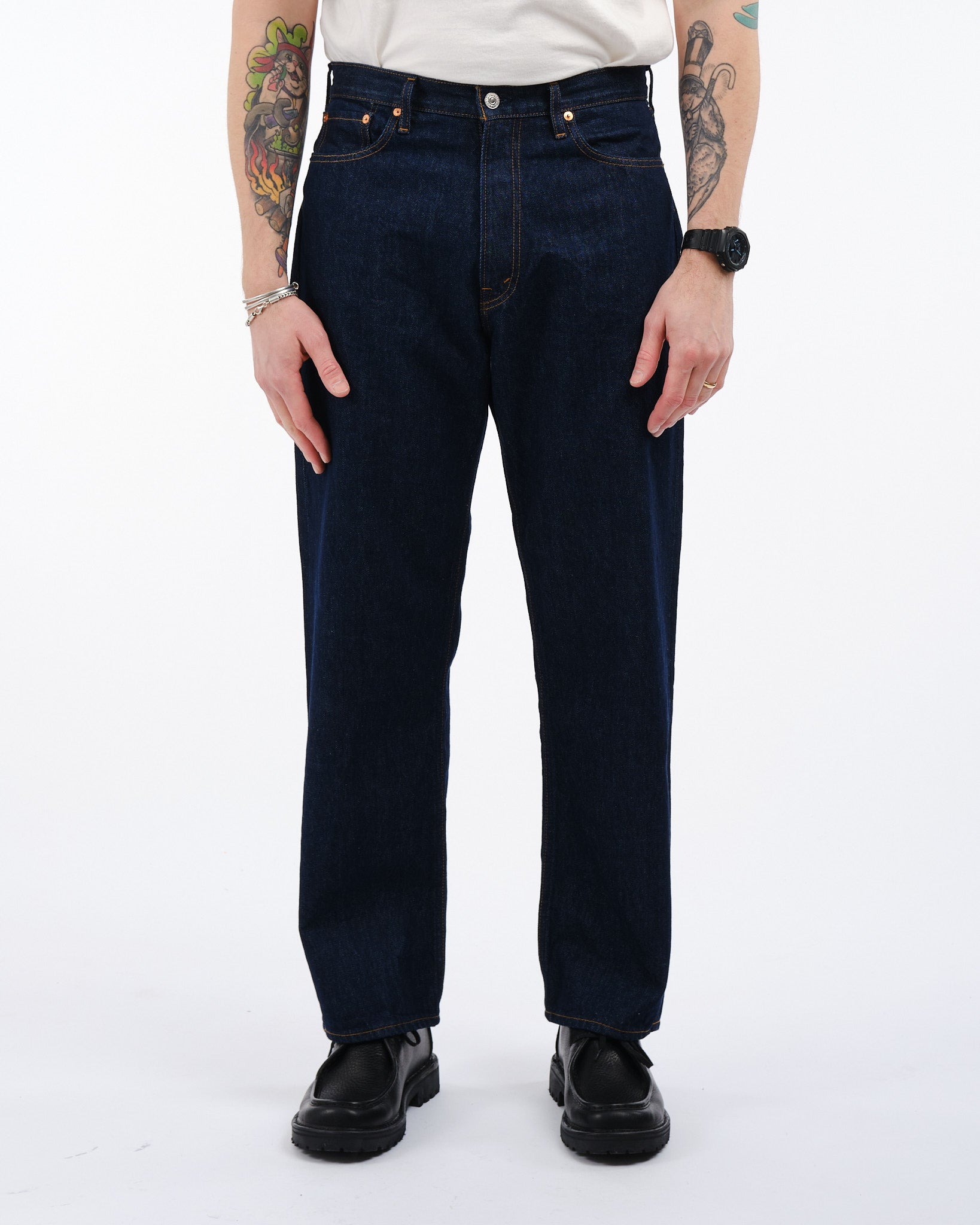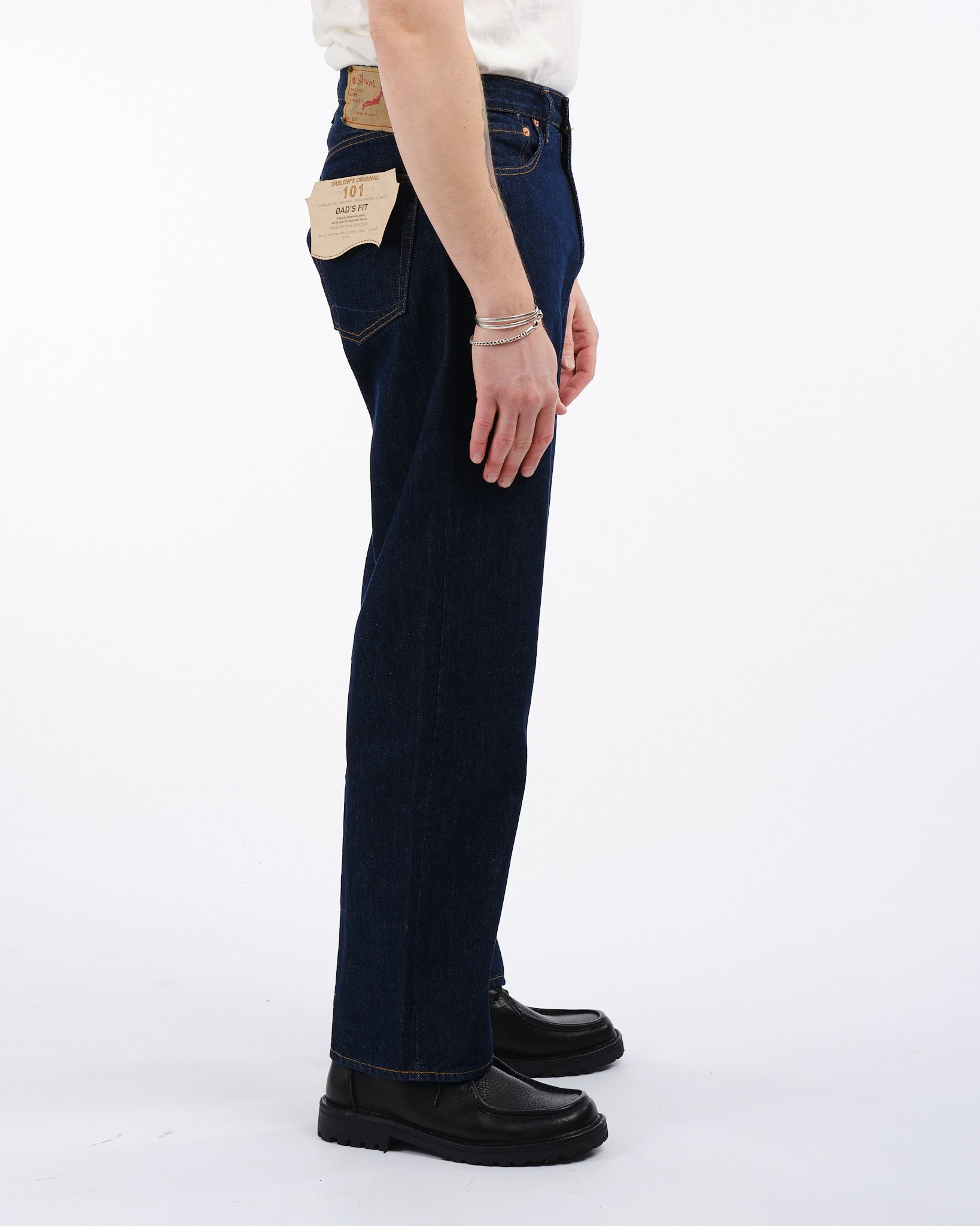 Vivi l'essenza della classica moda papà degli anni '90 con i Pantaloni in Denim OrSlow 101 Dads Fit in ONE WASH. Questo capo senza tempo rende omaggio sia al comfort che alla versatilità, realizzato con cura utilizzando denim Sanforizzato da 14 oz. nel laboratorio di orSlow a Hyogo. Questi pantaloni offrono una vestibilità spaziosa che si posiziona comodamente sopra i fianchi, rendendoli perfetti per essere abbinati a una camicia abbottonata infilata ordinatamente. L'eterna tonalità di blu indaco, prelavata per la tua comodità e comfort immediato, è progettata per invecchiare nel tempo, intrecciando il tuo viaggio personale nel suo stesso tessuto. Abbraccia le vibrazioni degli anni '90 e rendi questi pantaloni in denim un'aggiunta essenziale al tuo guardaroba.