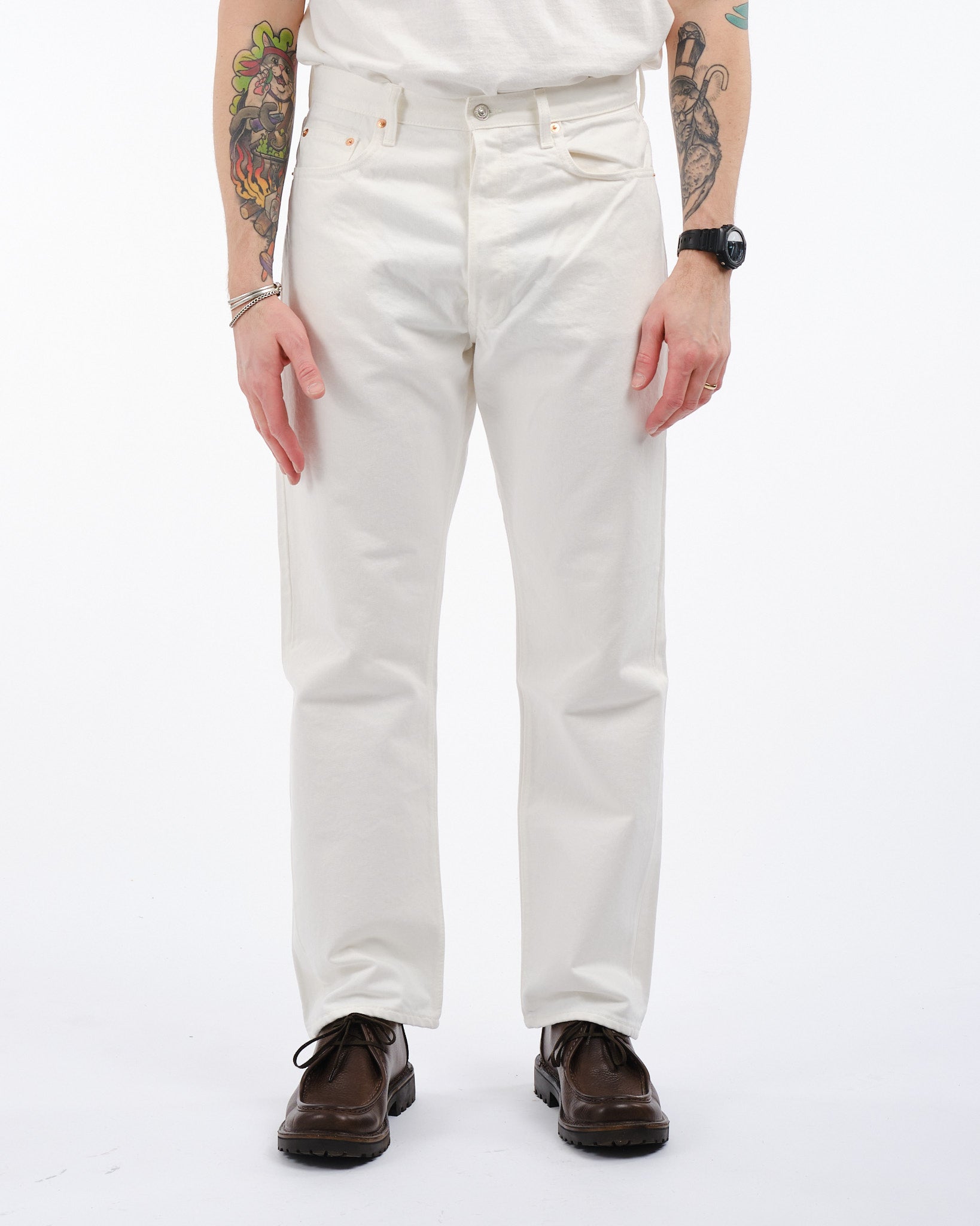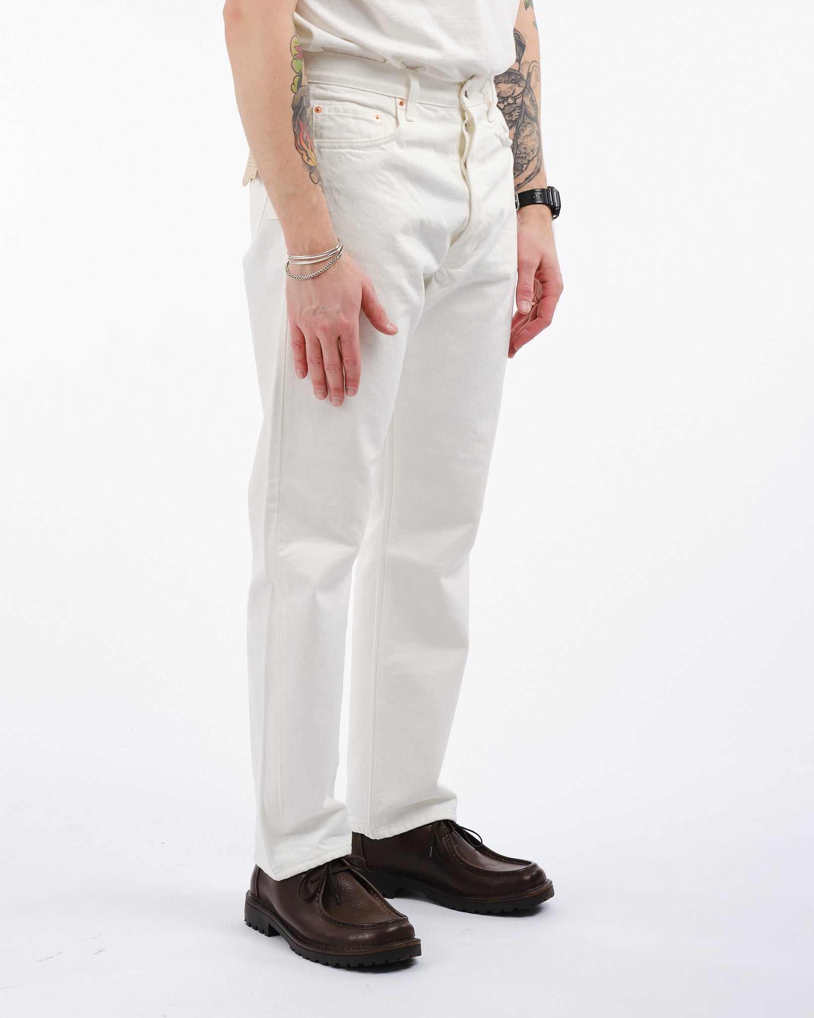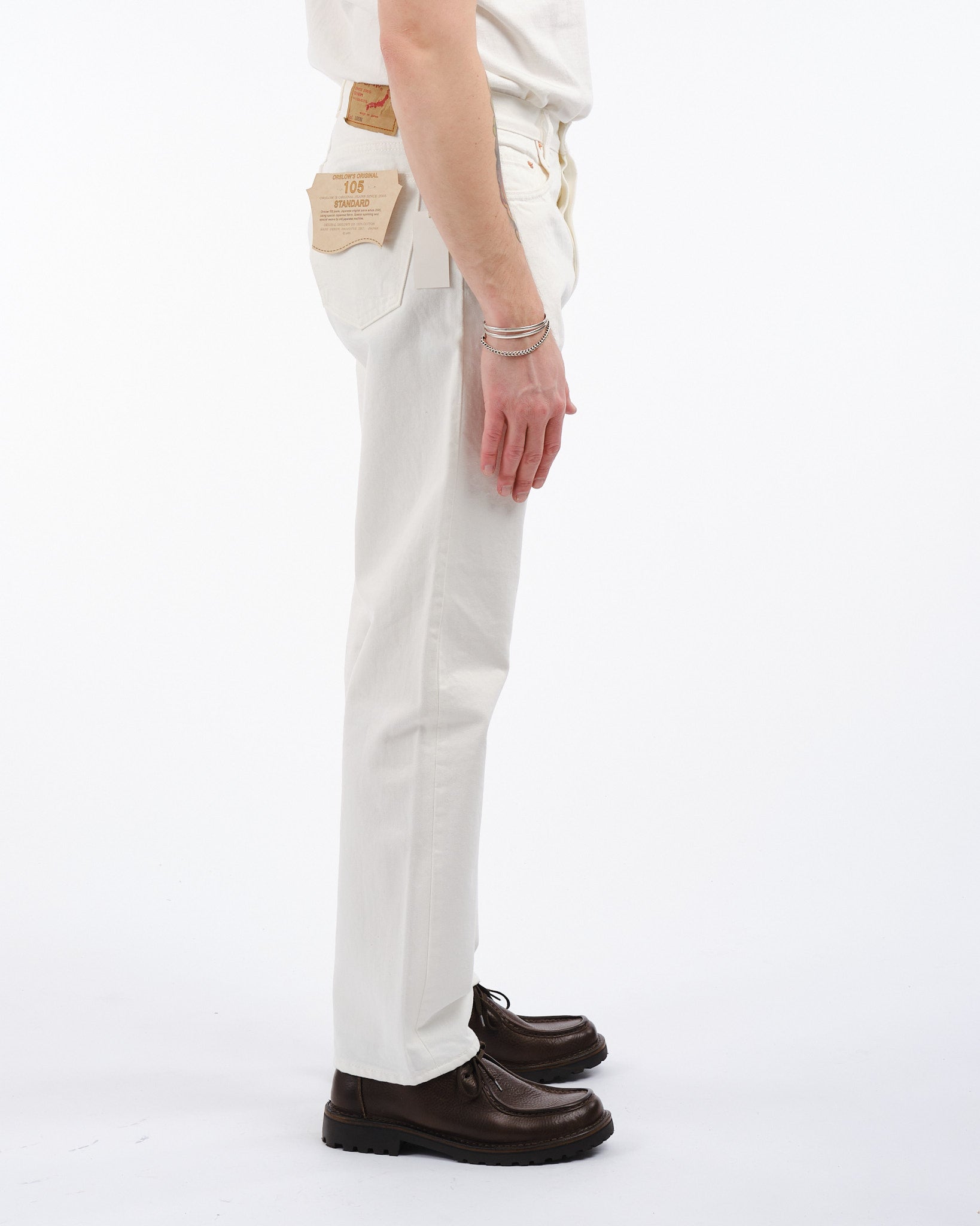 Vivi l'unione di semplicità e durabilità con i jeans bianchi 105 80s di orSlow. Realizzati con maestria in Giappone, questi jeans incarnano un'atmosfera anni '80 con la loro silhouette rilassata e il denim di alta qualità 13,5oz non selvedge. Versatili e alla moda, questi jeans non sono adatti solo per la stagione estiva. Il tessuto 100% cotone garantisce comfort, mentre la chiusura con bottoni e il design a cinque tasche aggiungono funzionalità pratica. Abbina questi jeans bianchi con sneakers e una camicia di denim, per un look senza tempo, o indossali con una giacca M 65 per fare una dichiarazione di moda audace.