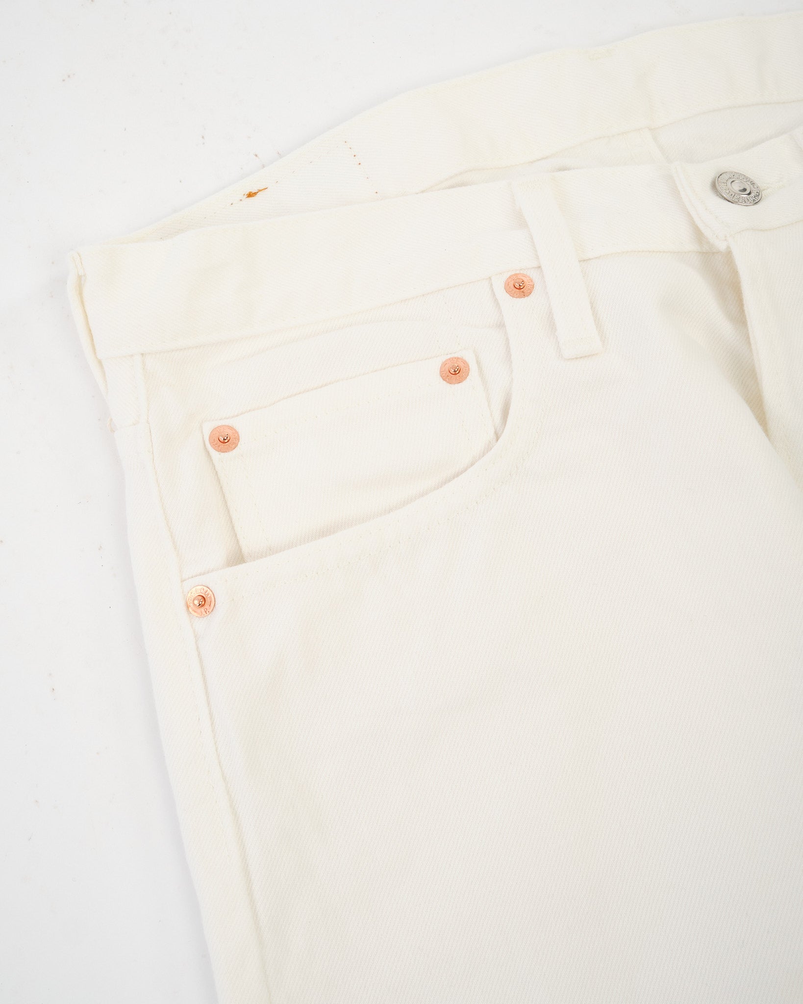 • Lavaggio Bianco Versatile - Un distintivo lavaggio del denim bianco che si distingue pur rimanendo facile da abbinare con una gamma di outfit.