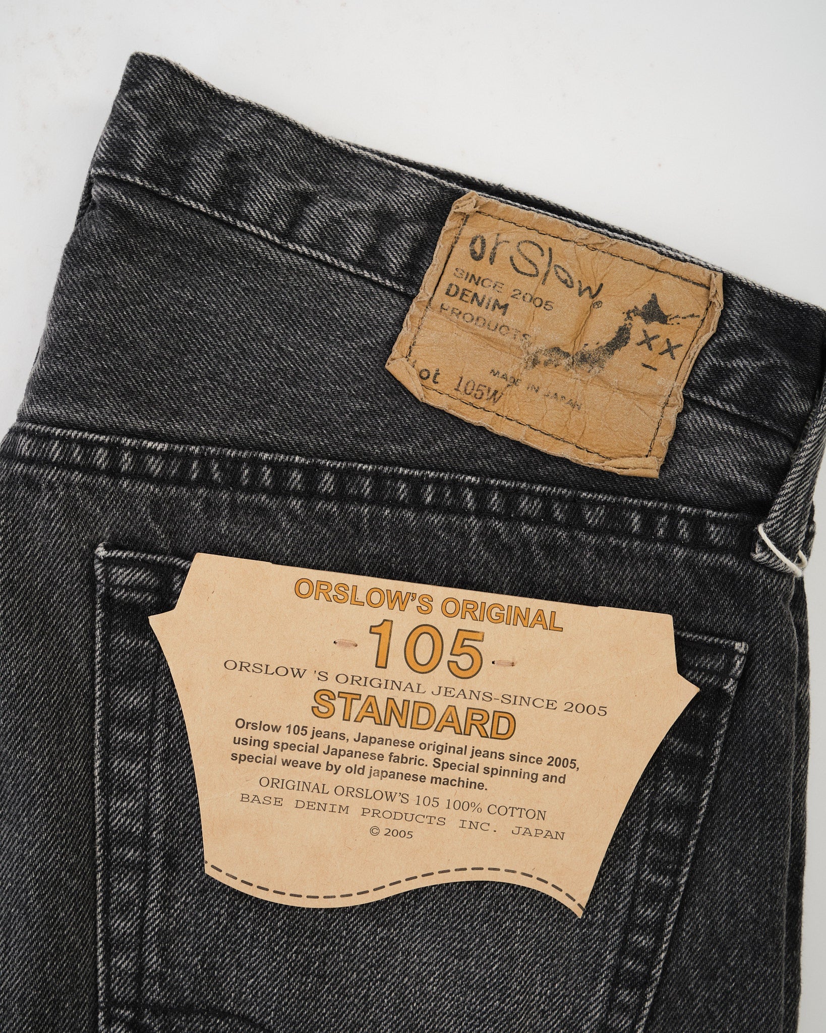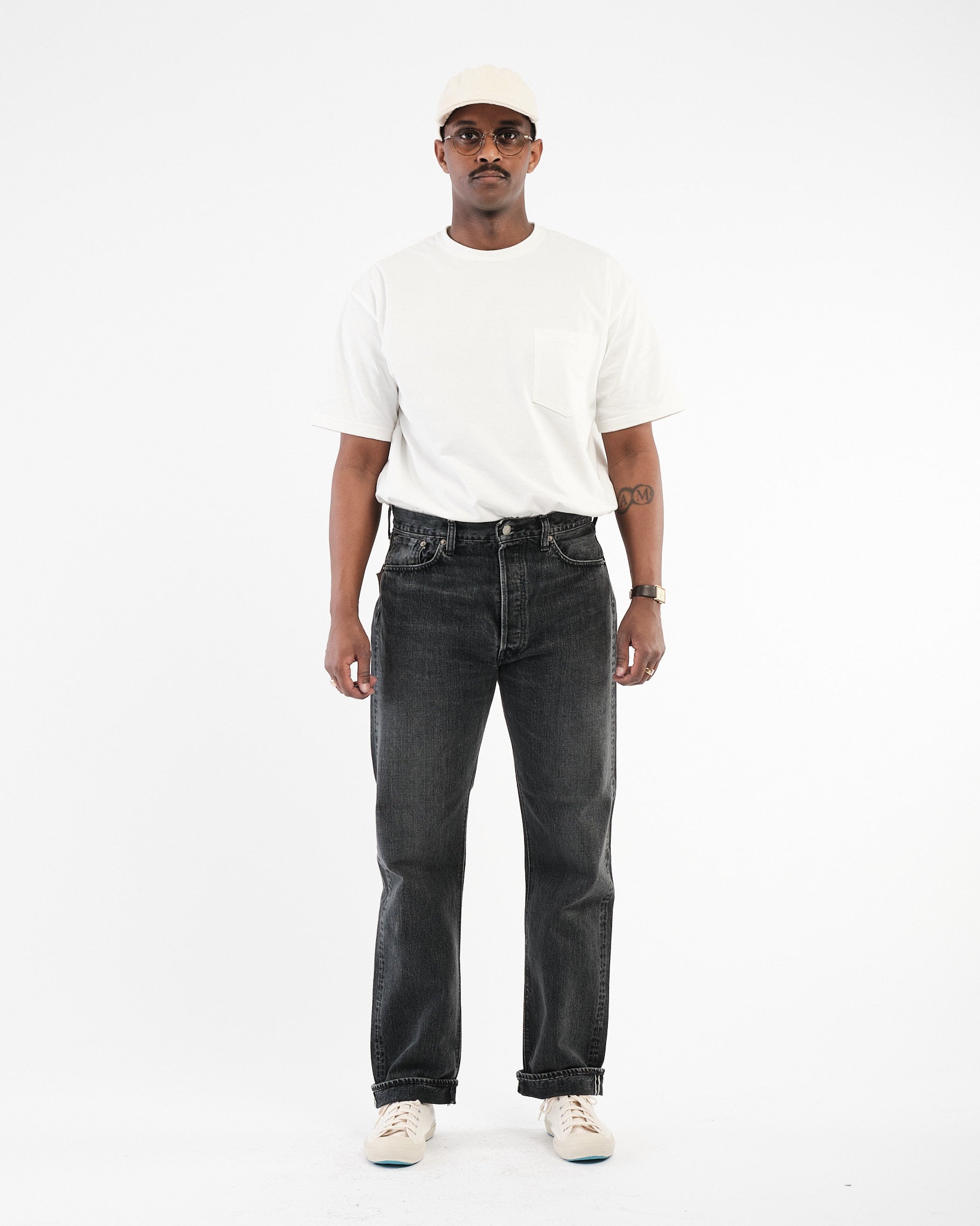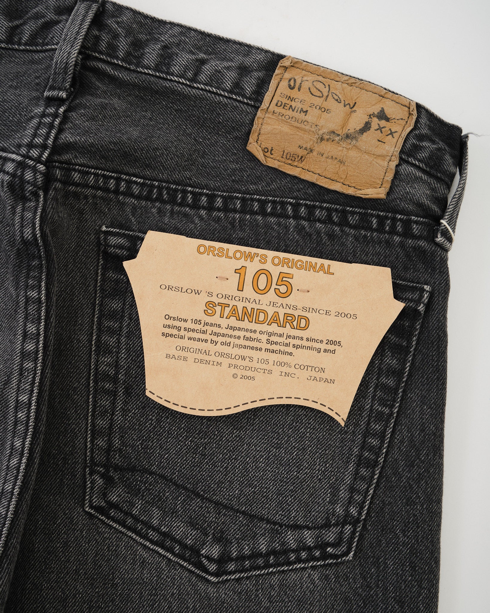Il jeans orSlow 105 Standard Selvedge Black Denim Stone, con Codice di Stile 01-1050 D61S, sono pantaloni in denim di alta qualità che combinano il fascino della vecchia scuola con l'esperienza in modo impeccabile. Ispirandosi alla moda denim retrò dell'era di metà ventesimo secolo degli anni '50 e '60, questi pantaloni sono attentamente realizzati in Giappone utilizzando il tessuto denim selvedge esclusivo di orSlow da 13,5Oz, tessuto utilizzando telai a navetta per ottenere una sensazione distintiva e con texture. Il denim nero con finitura stone washed ha una sensazione nostalgica simile alle tendenze di moda degli anni '90, offrendo comfort e un aspetto classico che non passa mai di moda. Lo stile 105 presenta una vestibilità con una vita moderata e un design a gamba dritta che si adatta bene a diverse forme del corpo. È dotato di caratteristiche come una chiusura con bottone e una disposizione a cinque tasche, insieme a dettagli di cuciture color oro. Rivetti in rame ossidato che aggiungono al suo fascino vintage. Inoltre, l'inclusione di una toppa in carta sulla vita aumenta ulteriormente la sua autenticità retrò. Questi jeans sono stati prelavati per prevenire qualsiasi restringimento all'inizio e sono pronti per essere indossati con un design che promette di sviluppare un aspetto invecchiato col passare del tempo.