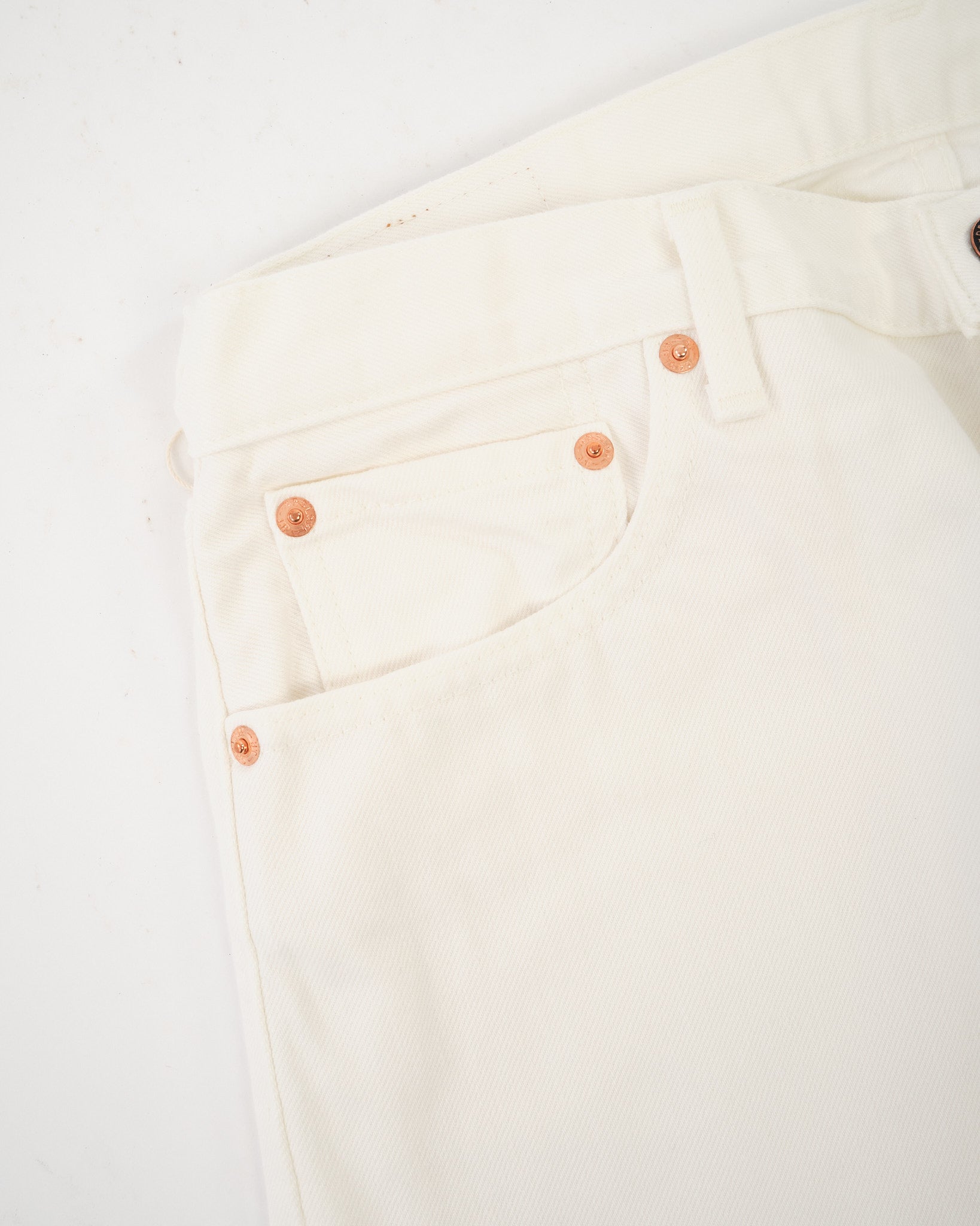 Realizzati in denim selvedge giapponese da 13,5oz, questi jeans offrono una superiore durabilità e comfort. Il tessuto in denim bianco sviluppato su misura ha una sottile texture slavata, che gli conferisce una profondità e un carattere unici. Pre-lavato per una sensazione morbida, minimizza il restringimento e garantisce una sensazione di già indossato fin dal primo utilizzo.