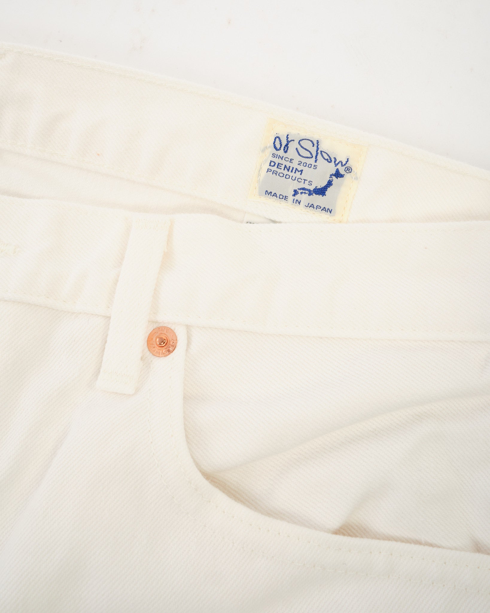 Che tu stia cercando un look casual ma rifinito o che tu stia abbinando elementi ispirati alla Ivy League, il orSlow 107 Ivy Fit White Denim è un essenziale eccellente per il guardaroba.