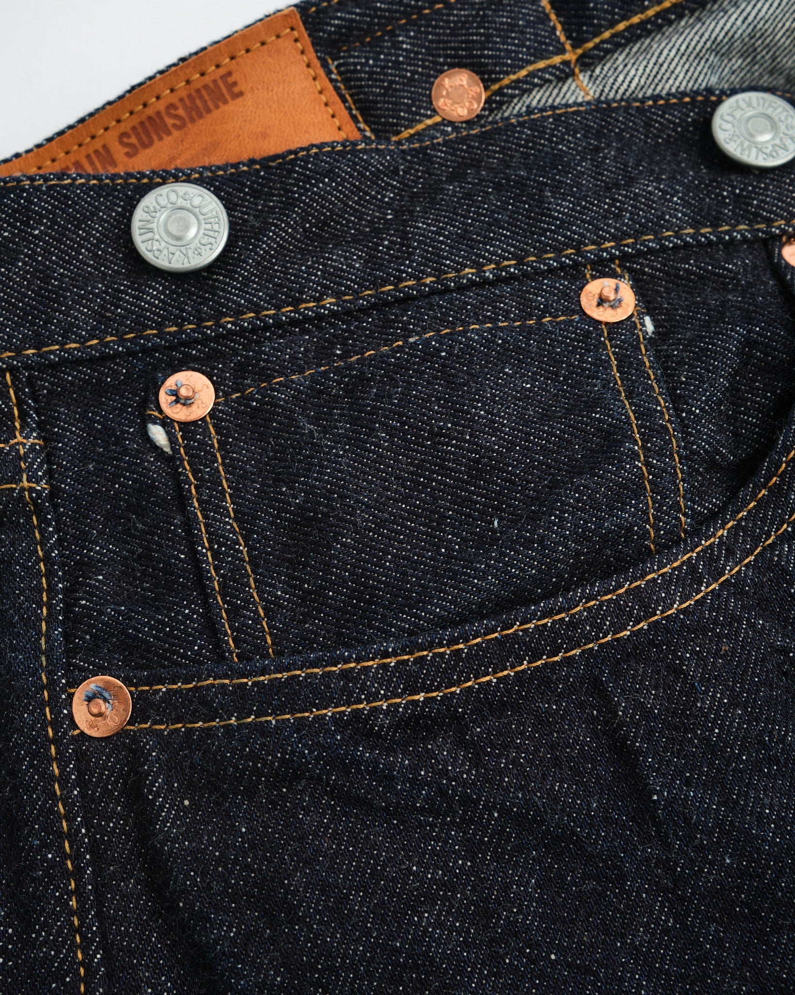 I Pantaloni in Denim Dritto 1930 KAPTAIN SUNSHINE (KSBS201DZ) in Indigo One Wash sono un omaggio alla maestria del denim vintage. Questi pantaloni sono realizzati in denim Selvedge da 13,5oz, tinti con indaco puro, e incorporano nep naturale utilizzando cotone San Joaquin di alta qualità, proveniente da una zona di lunga tradizione nella produzione di cotone da riso.