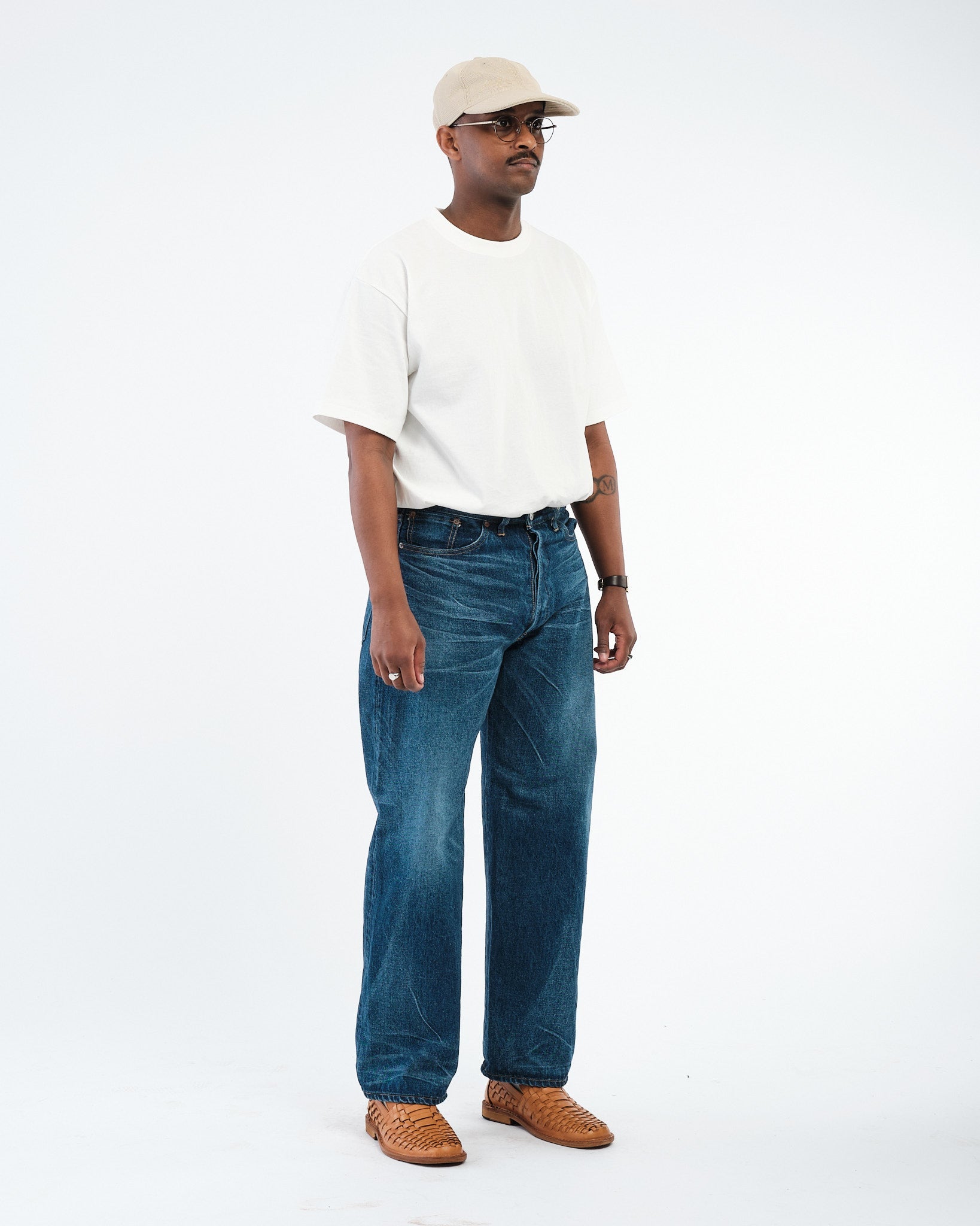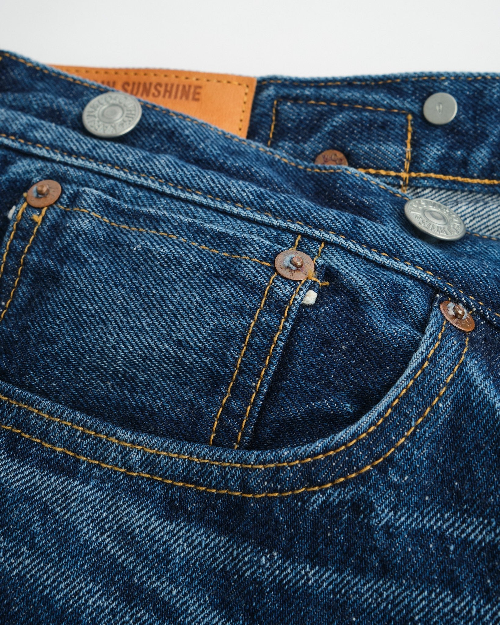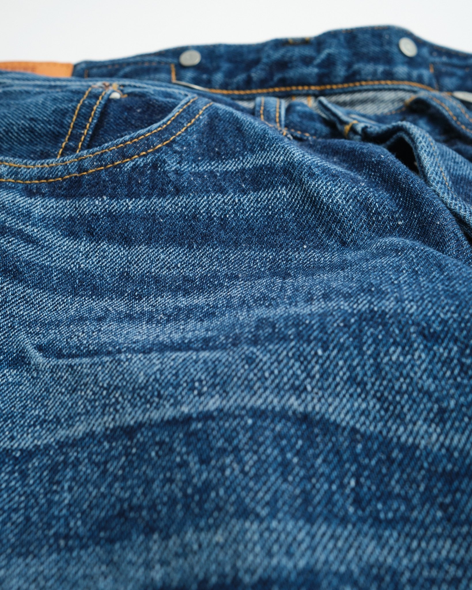 I Pantaloni in Denim Dritto KAPTAIN SUNSHINE 1930 (KSBS203DZ) in Lavaggio Vintage Indigo incarnano l'essenza dell'artigianato del denim vintage. Realizzati in denim Selvedge da 13.5oz, questi jeans sono tinti con indaco puro e incorporano nep naturale, utilizzando Cotone di alta qualità San Joaquin proveniente da una zona di lunga tradizione nella produzione di cotone da riso.