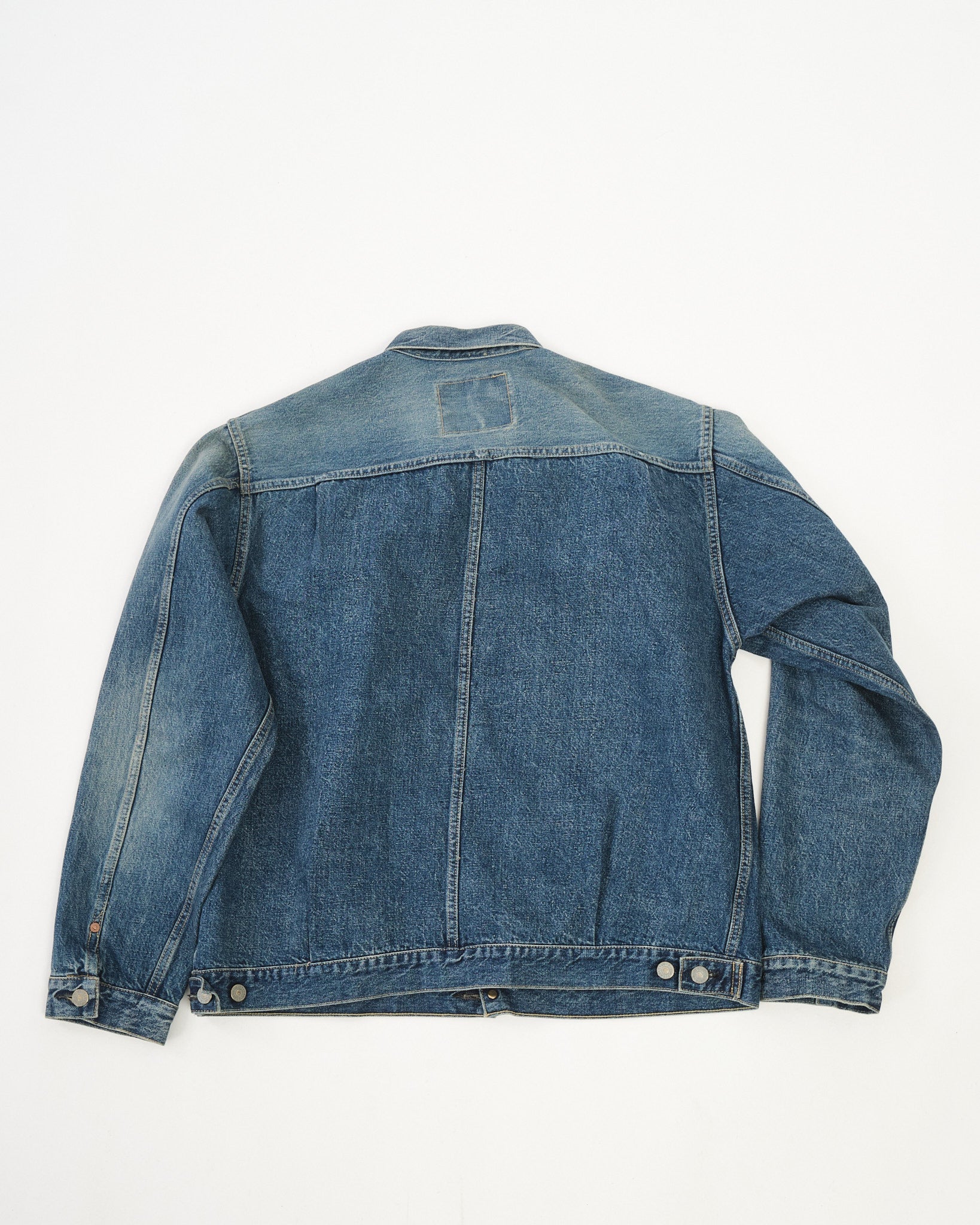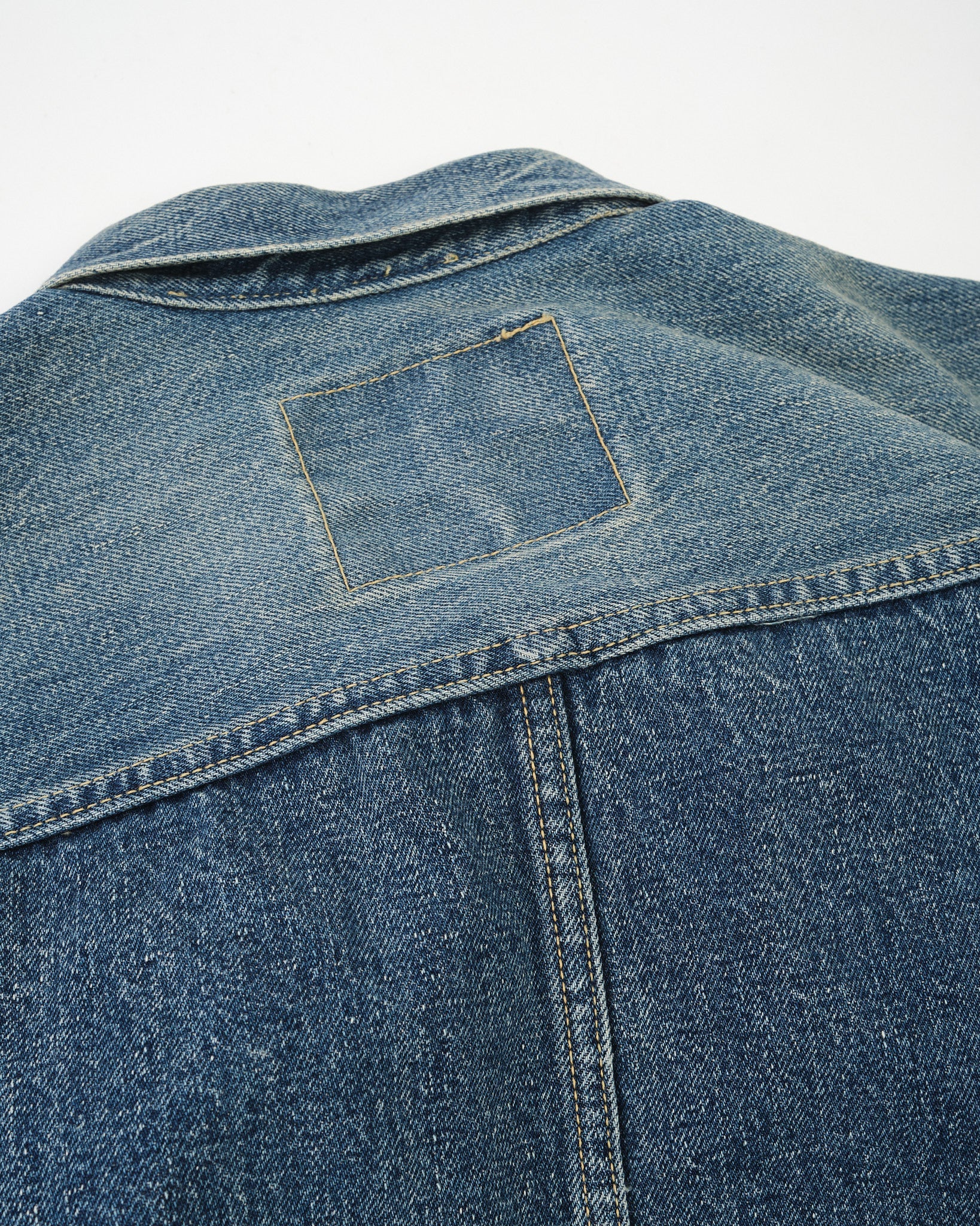 Realizzata in denim selvedge da 12,5oz, questa giacca ha una texture liscia ma asciutta, che ricorda da vicino la sensazione del vero abbigliamento da lavoro vintage. Ogni dettaglio è accuratamente realizzato per replicare il carattere invecchiato del vecchio denim, evocando il fascino senza tempo dei capi molto amati.