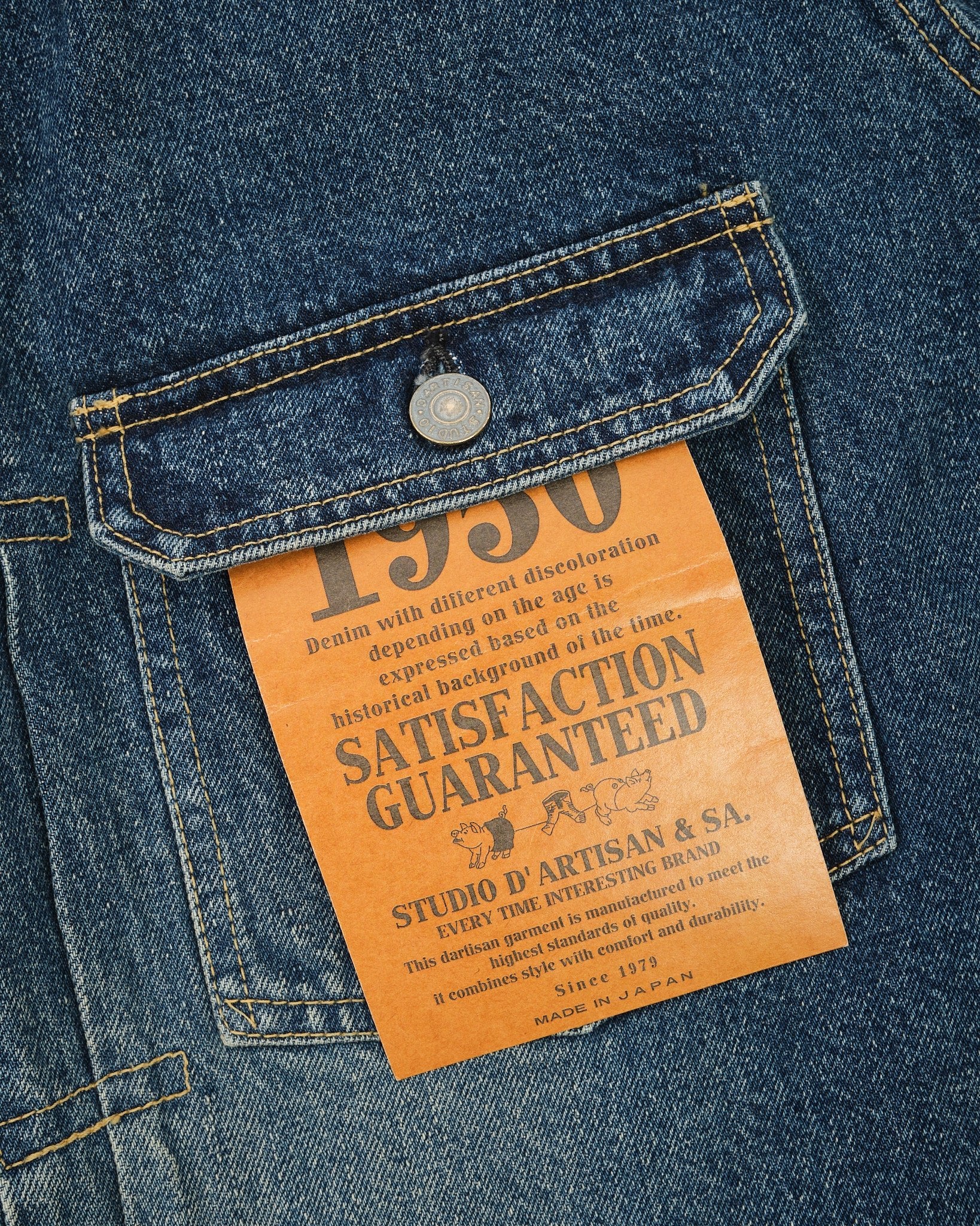 La Giacca in Denim STUDIO D'ARTISAN 1950 (D4536U) rende omaggio allo spirito ribelle della cultura giovanile degli anni '50, quando le giacche in denim simboleggiavano sfida e indipendenza. Questo pezzo è una meticolosa riproduzione delle giacche in denim vintage degli anni '50, completa di un lavaggio usato autentico che cattura il processo naturale di scolorimento e ossidazione del denim molto indossato di quell'epoca.