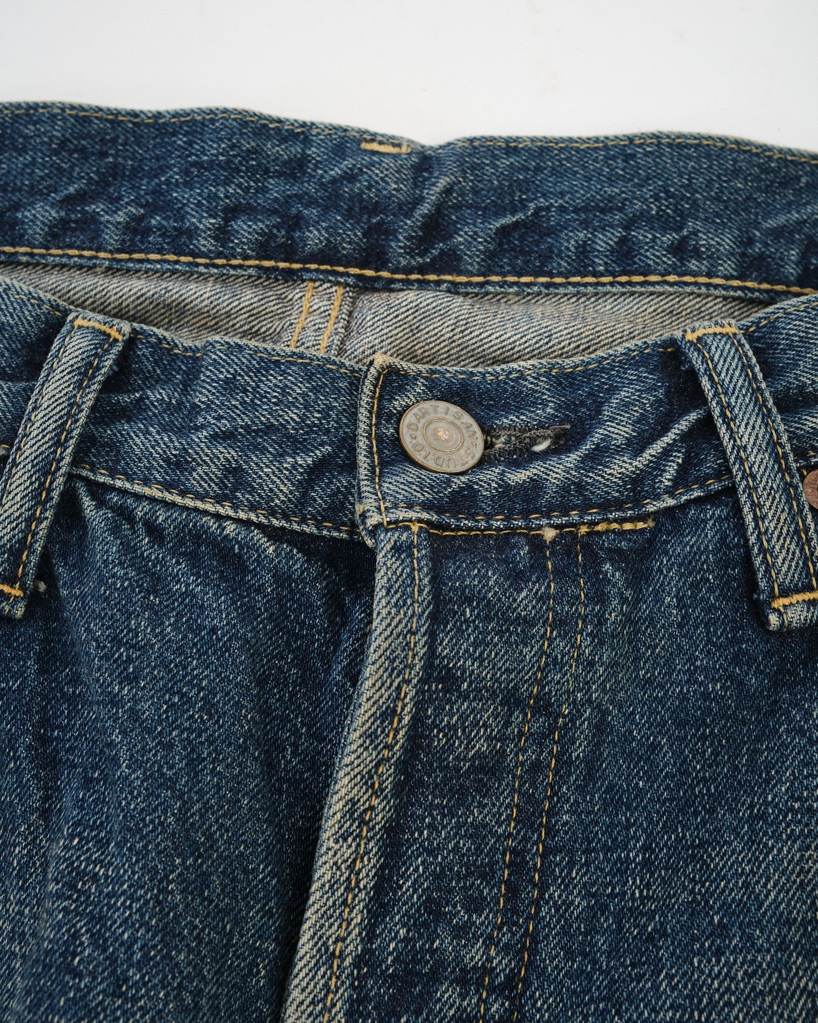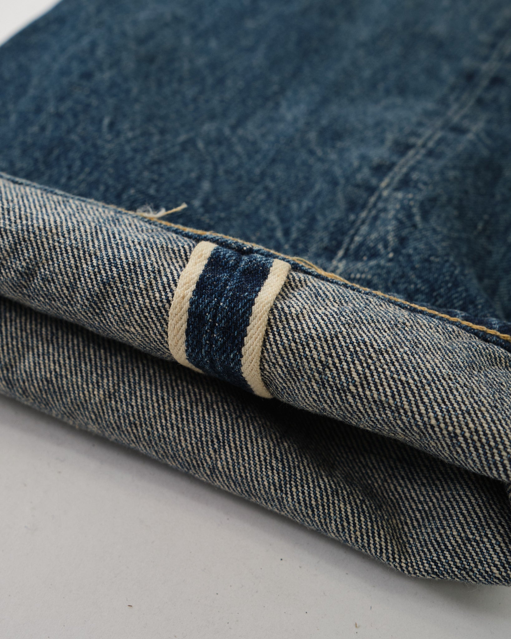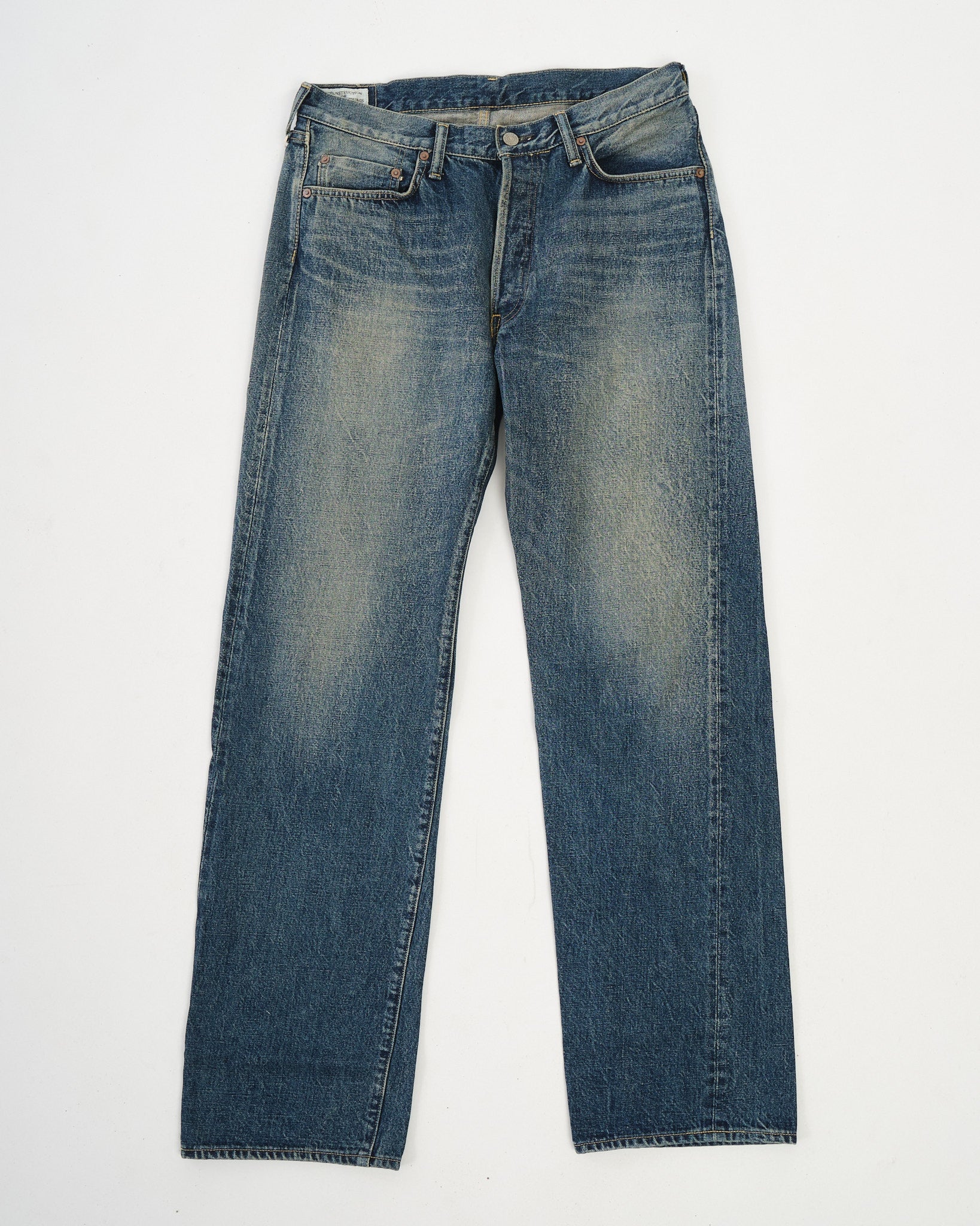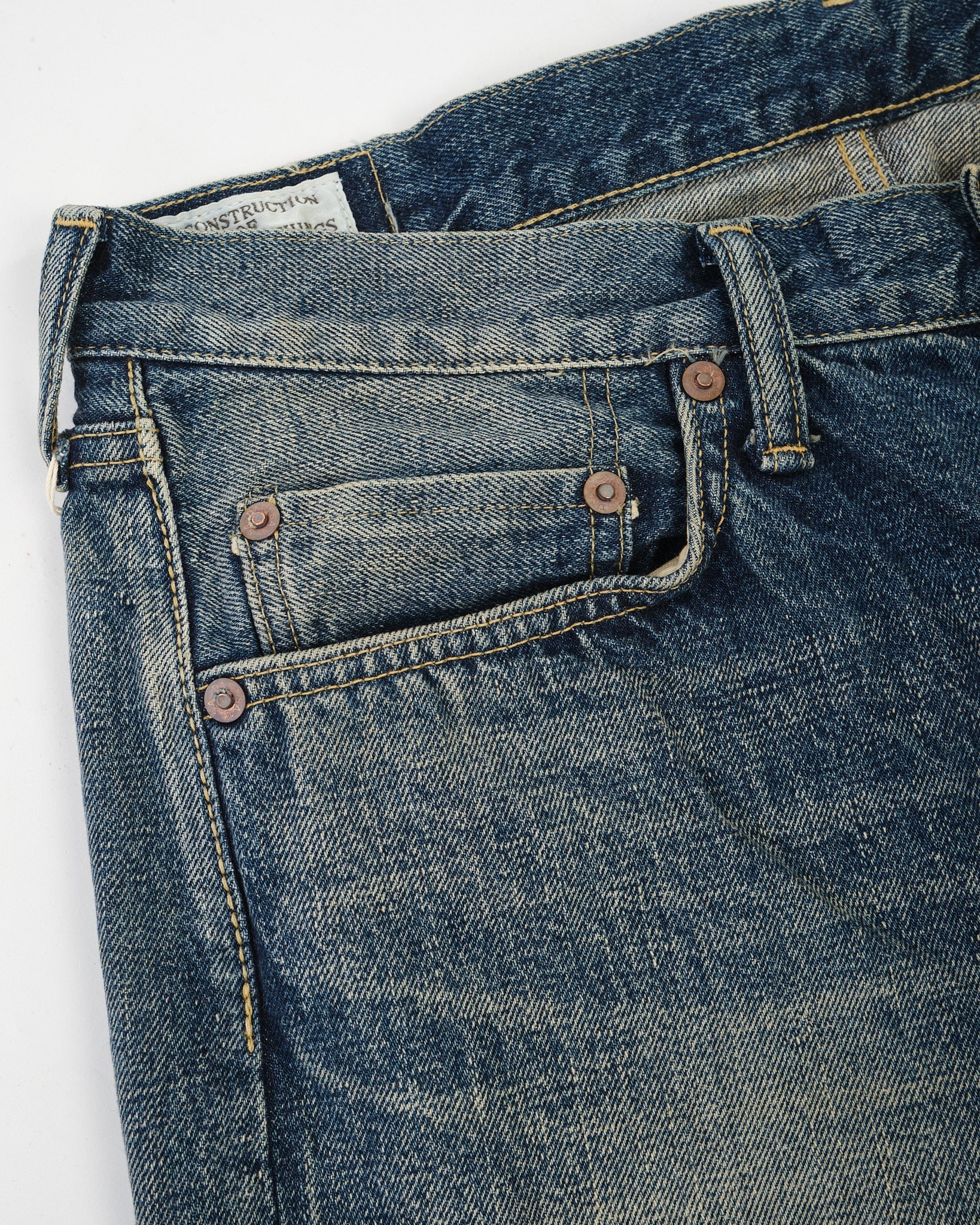 Disegnati con una silhouette dritta stretta 103, questi jeans offrono una vestibilità pulita ma strutturata, rimanendo fedeli all'estetica dell'abbigliamento da lavoro degli anni '50. Il lavaggio in indaco usato esalta la sensazione vintage, mostrando sfumature e pieghe sottili che evidenziano il carattere unico del tessuto.