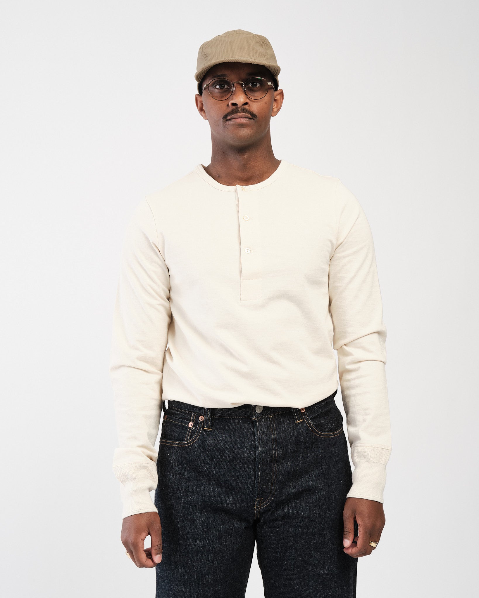 Dettagli come i veri bottoni in madreperla, i polsini a maglia piatta e la patta in cotone tessuto rendono questo capo molto più di un semplice Henley. E sì - se la situazione si riscalda, basta aprire il bottone superiore. Nessuna cucitura laterale, nessun trucco - solo pura semplicità ben realizzata che migliora nel tempo.