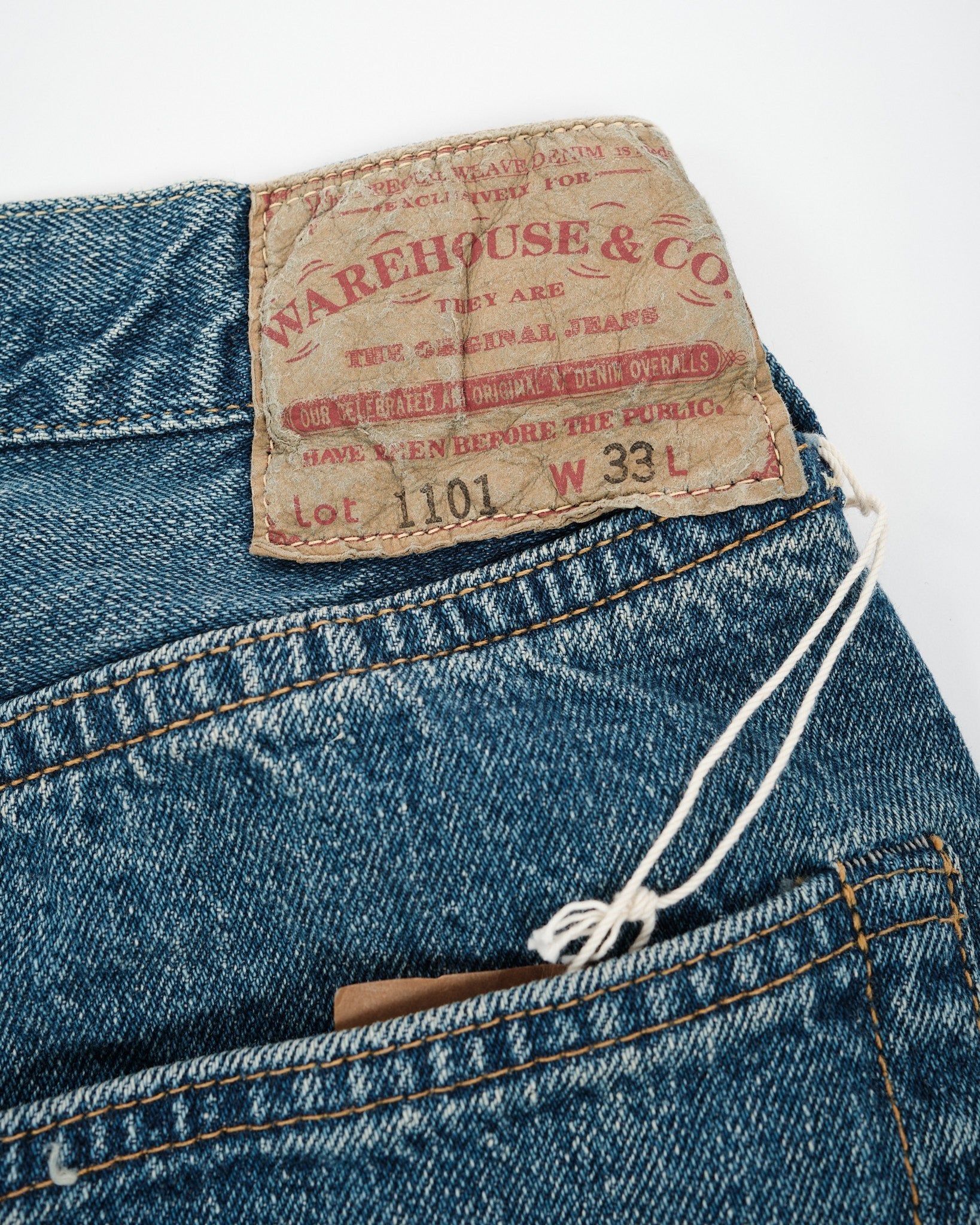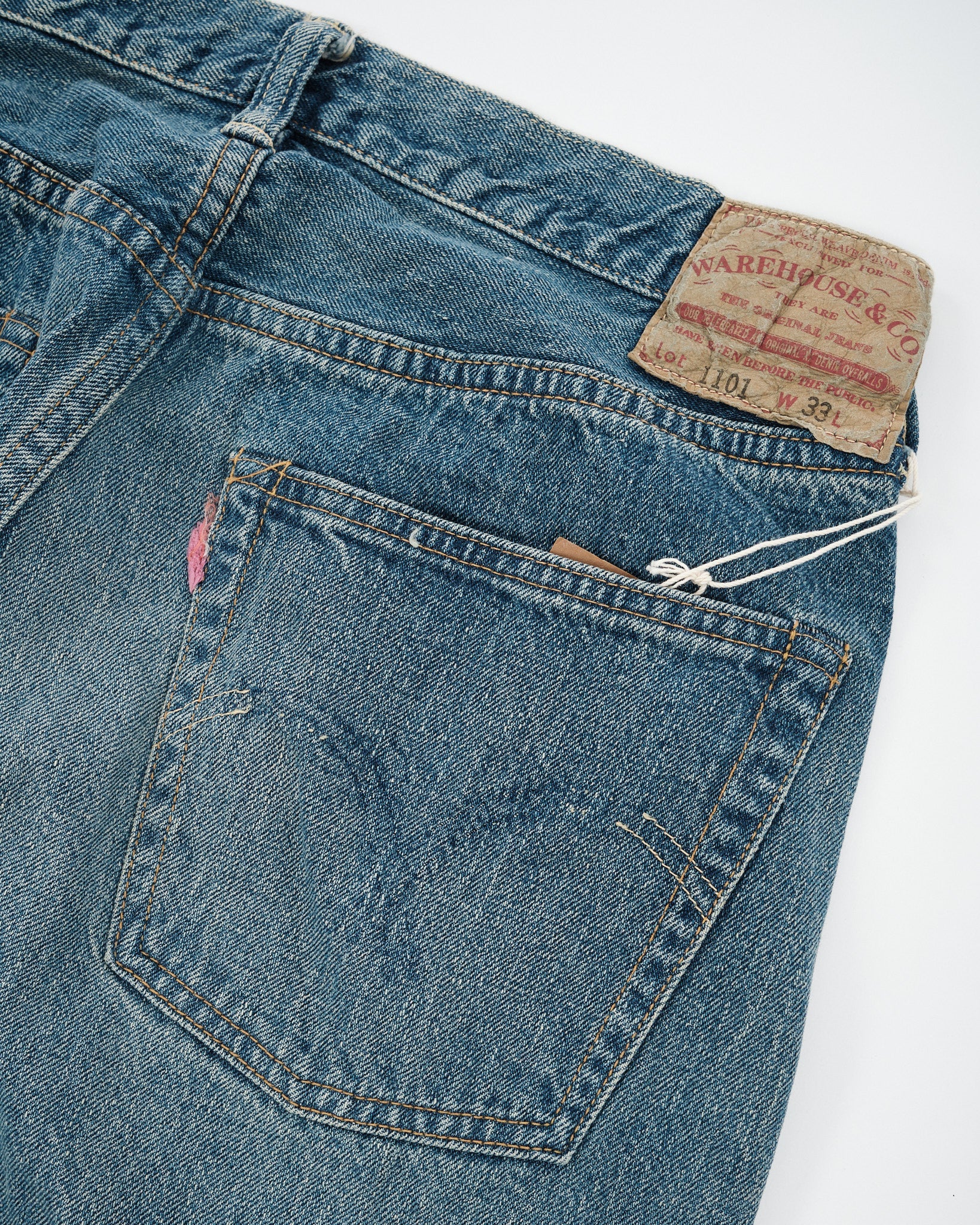 I jeans WAREHOUSE Lot 2ND-HAND 1101 (USED WASH LIGHT COLOR) offrono l'aspetto autentico e la sensazione del denim vintage, meticolosamente lavorati per replicare anni di usura naturale. Realizzati in denim selvedge No. 7 x No. 10 (12 Oz), questi jeans forniscono un'usura comoda ma resistente adatta all'uso quotidiano. La finitura USED WASH LIGHT COLOR emula un aspetto indaco chiaro naturalmente invecchiato, completo di modelli realistici di baffature e sbiaditure che rendono ogni paio unico.