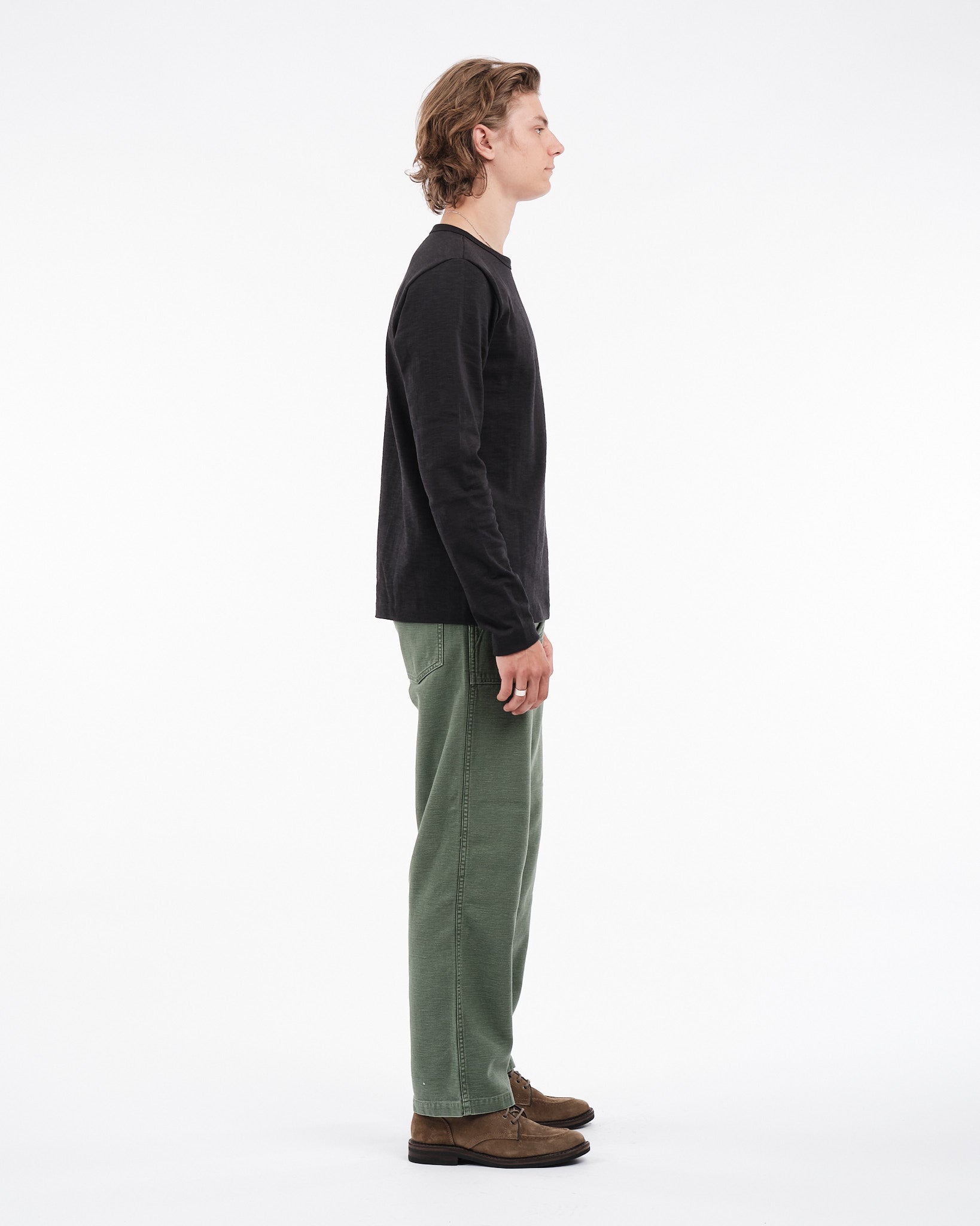 • Realizzato in 100% cotone biologico con una texture pesantemente slub.