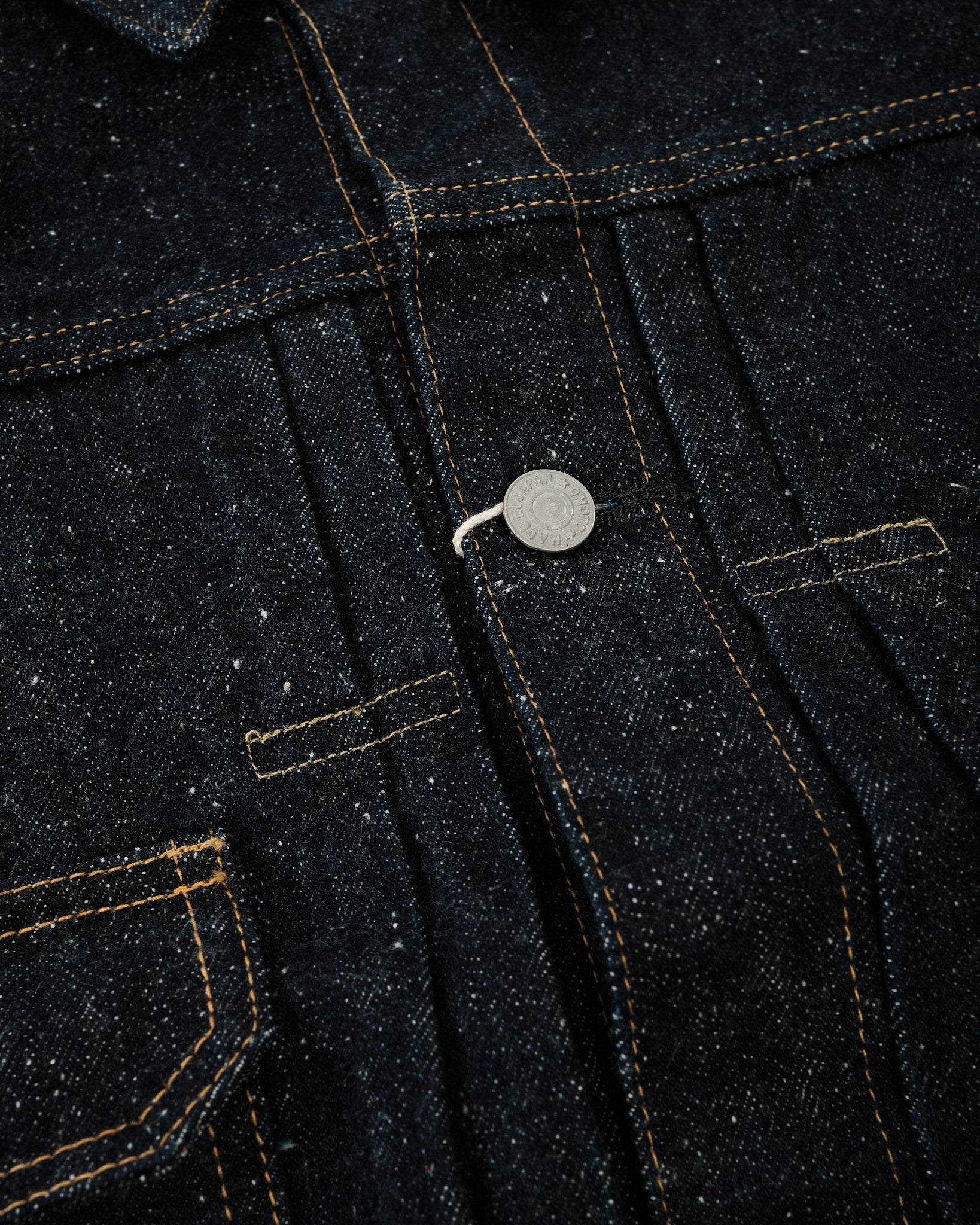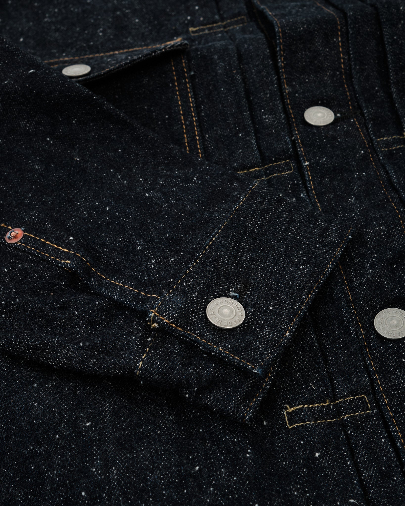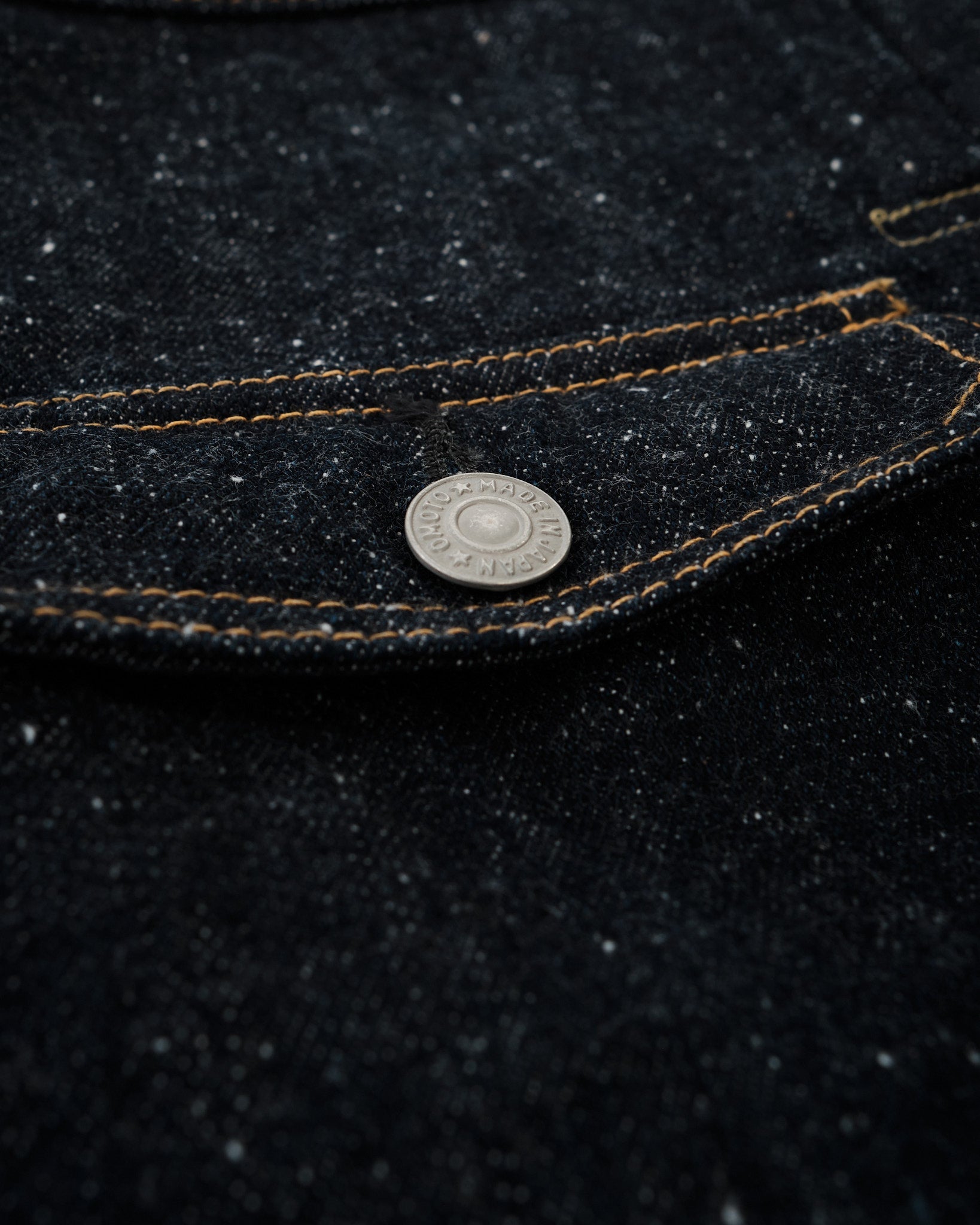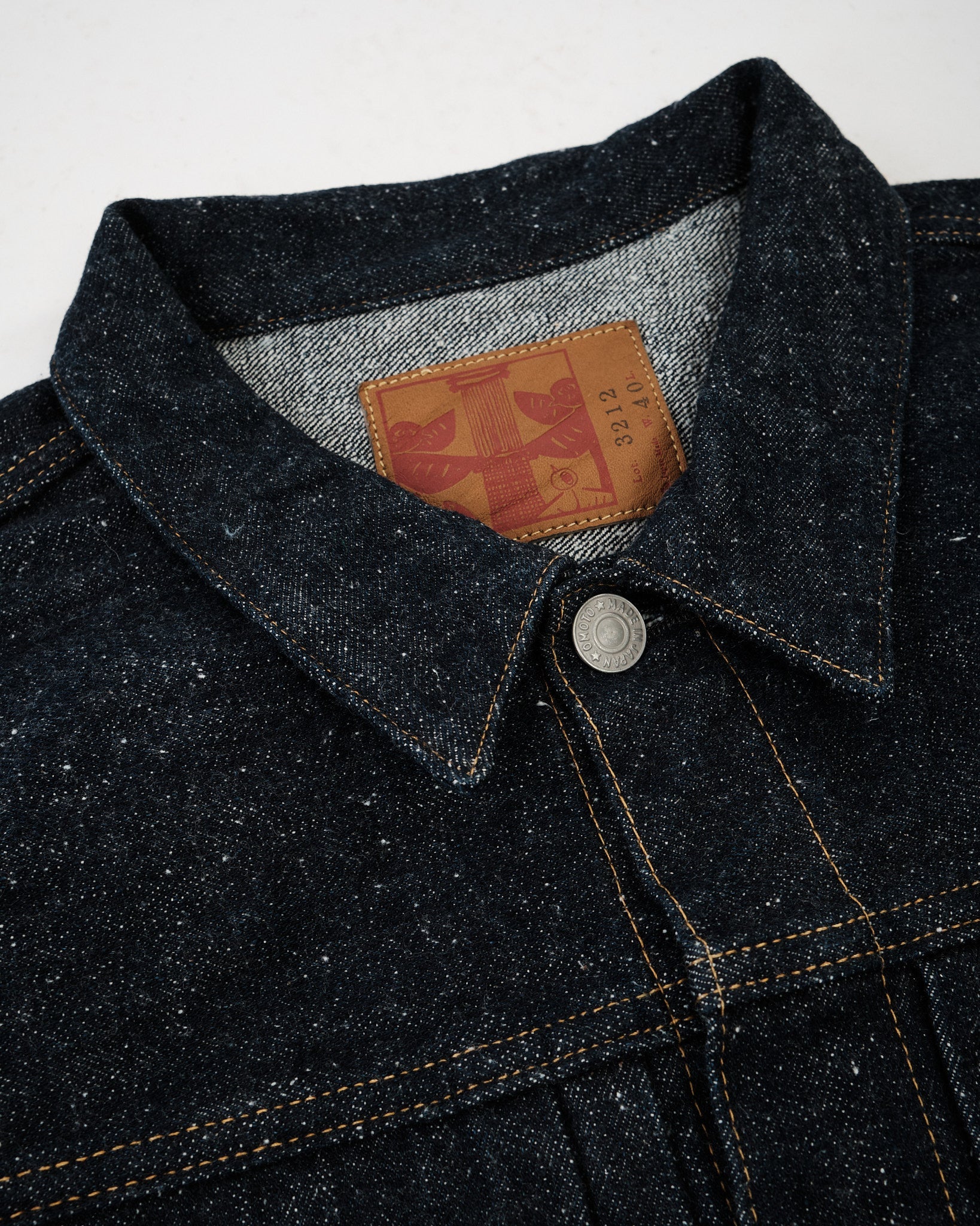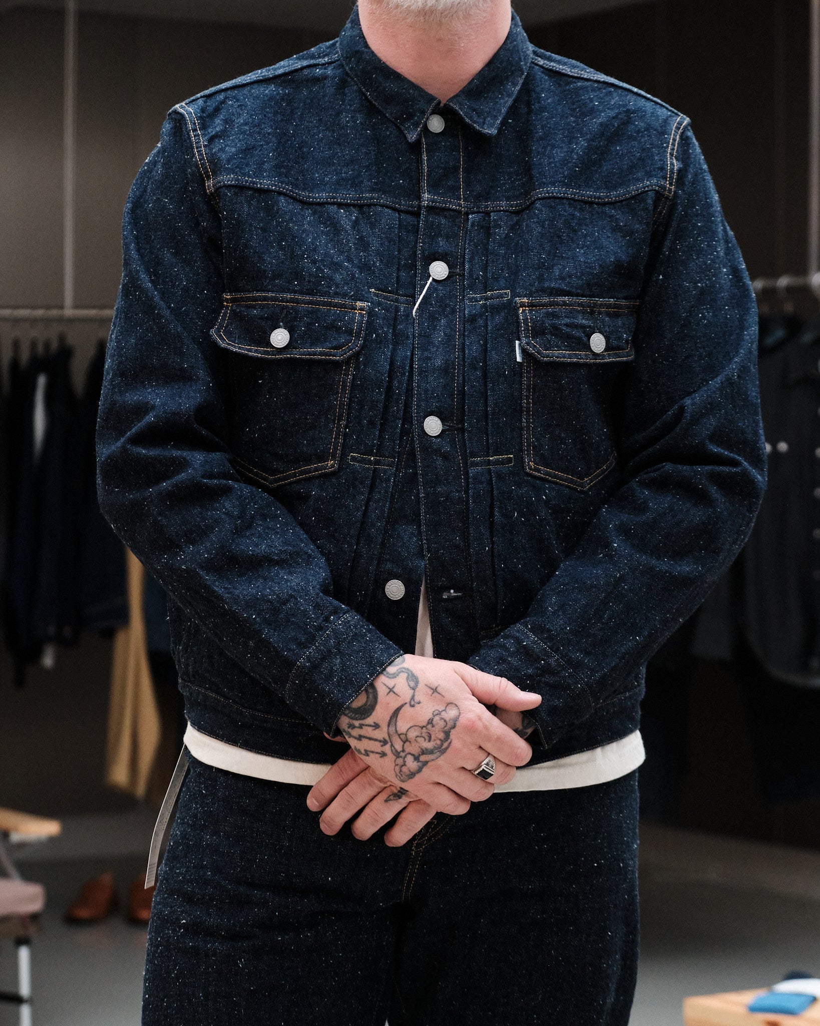 La Giacca in Denim OMOTO 3212 2nd Type è un tributo moderno all'abbigliamento da lavoro classico, realizzata in denim nep da 16oz con una superficie ricca e testurizzata. I filati di ordito incorporano fibre di cotone corte (27mm o meno), creando una texture irregolare e robusta, mentre i filati di trama sono filati utilizzando la tecnica tradizionale "gara-bo", conferendo un'estetica rustica e filata a mano con una struttura traspirante e ariosa.