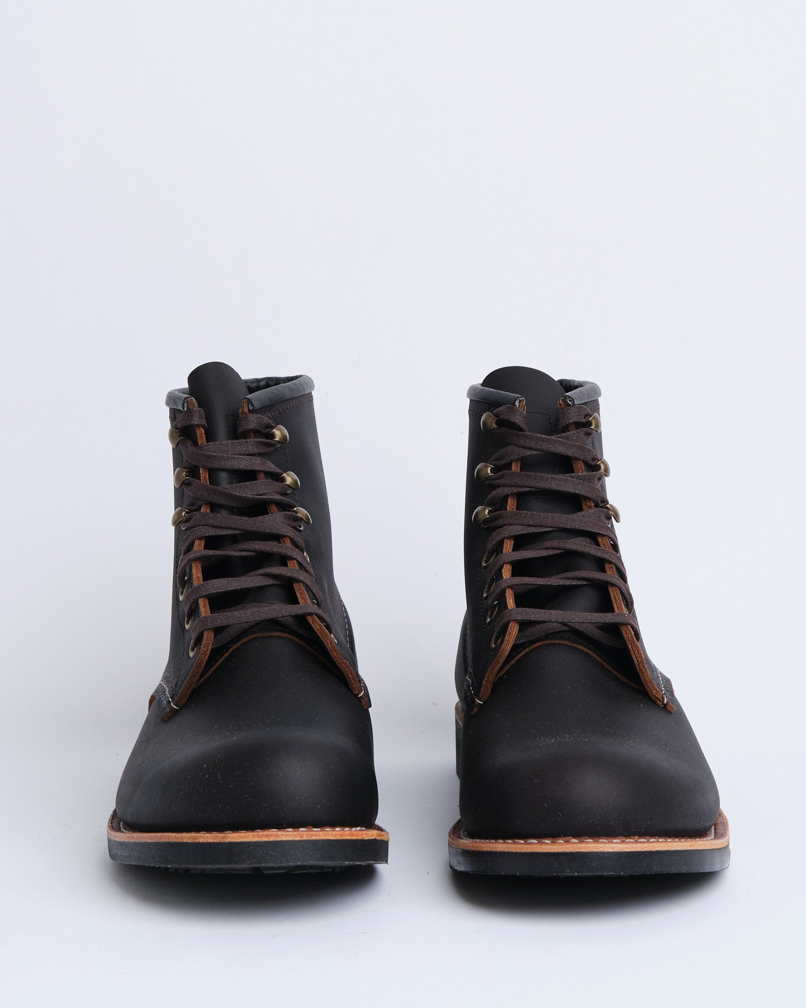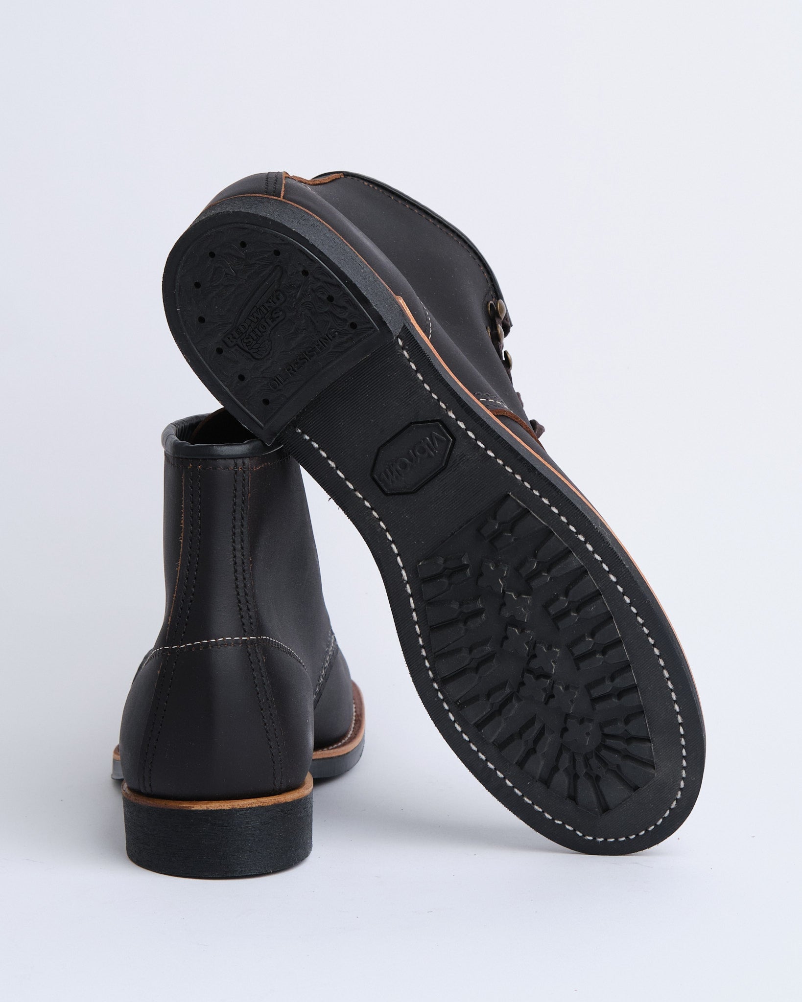 Presentazione del 3345 BLACKSMITH in BLACK PRAIRIE di RED WING SHOES. Un stivale progettato per essere sia funzionale che versatile, il Blacksmith ha le sue origini nell'utilità dell'officina ma non si tira indietro di fronte all'estetica dei giorni nostri. È stato realizzato per proteggere i piedi dalle sfide affrontate in una forgia, e oggi offre una formidabile barriera contro lo sporco, il caldo estivo e la neve invernale. Questo stivale di 6 pollici mostra con orgoglio una combinazione di robusta durabilità e stile raffinato, uniti da pelle di prima qualità, una cucitura a tre quarti Goodyear in cuoio e la iconica costruzione a triplo punto Puritan. La suola Vibram® 430 Mini-Lug garantisce una presa affidabile su tutti i terreni e in tutte le stagioni.