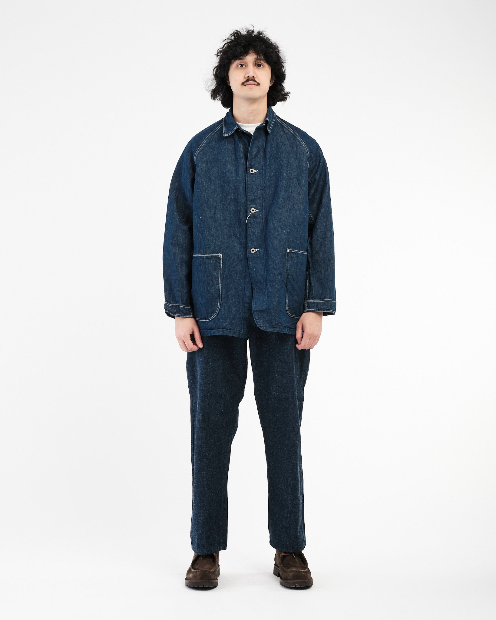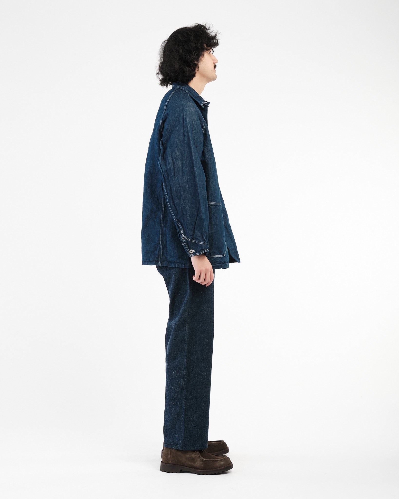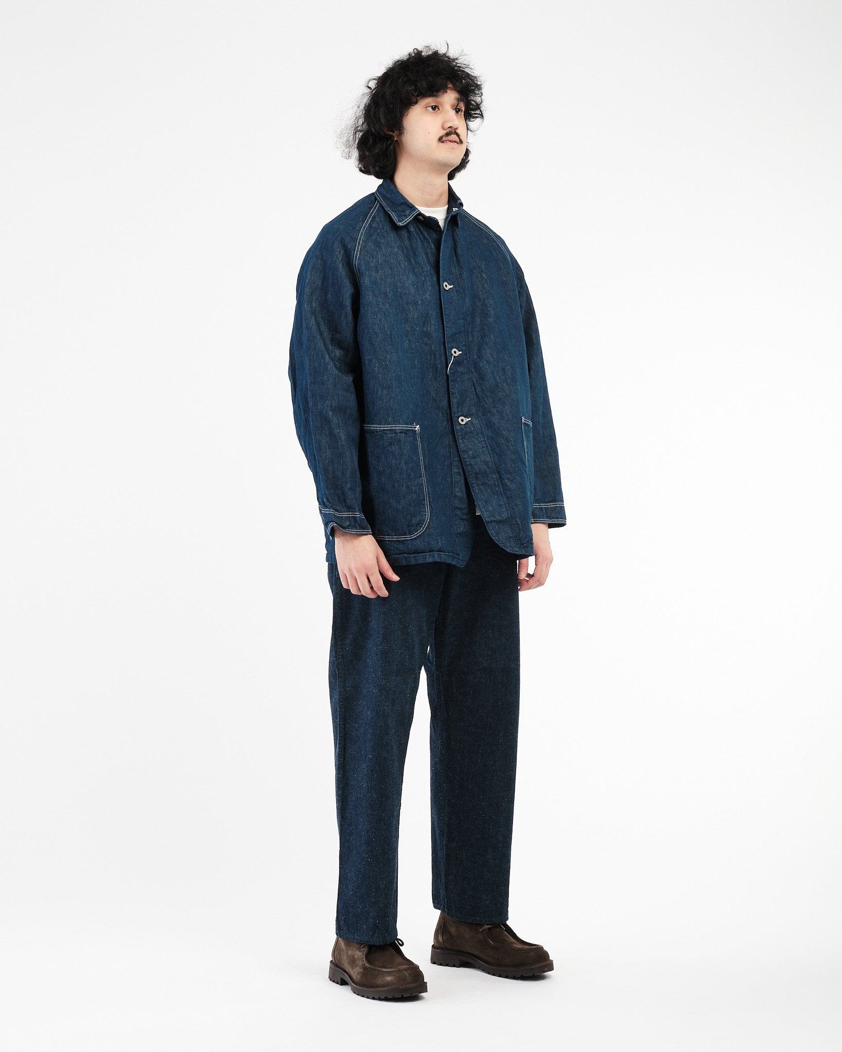 Il orSlow 40's WWII Denim Coverall Loose Fit One Wash (Codice Prodotto: 01-6142-81) rende omaggio all'abbigliamento da lavoro classico degli anni '40 con una miscela di funzionalità e design senza tempo. Realizzato in denim giapponese da 9oz, questa tuta presenta una vestibilità larga e scatolata che permette una facile sovrapposizione mantenendo il comfort. Il trattamento one-wash gli conferisce una sensazione leggermente vissuta, ammorbidendo il tessuto per una vestibilità immediata. I dettagli chiave includono un colletto in velluto a coste beige a contrasto, quattro tasche frontali utilitarie, una grande tasca interna applicata e polisini da ingegnere regolabili. Rinforzato con cuciture a triplo ago, rinforzi rivettati e bottoni metallici con logo, questa giacca è progettata per la durabilità e l'uso quotidiano. Prodotto in Giappone, incarna la dedizione di orSlow all'artigianato e all'estetica del patrimonio.