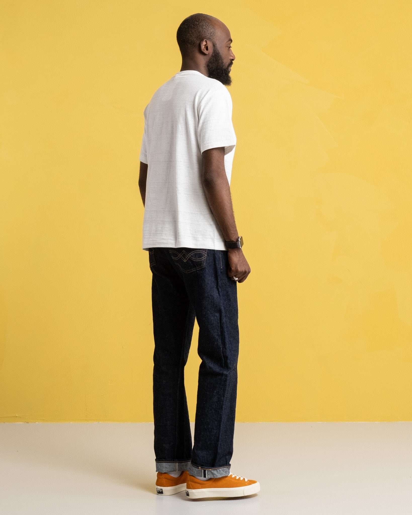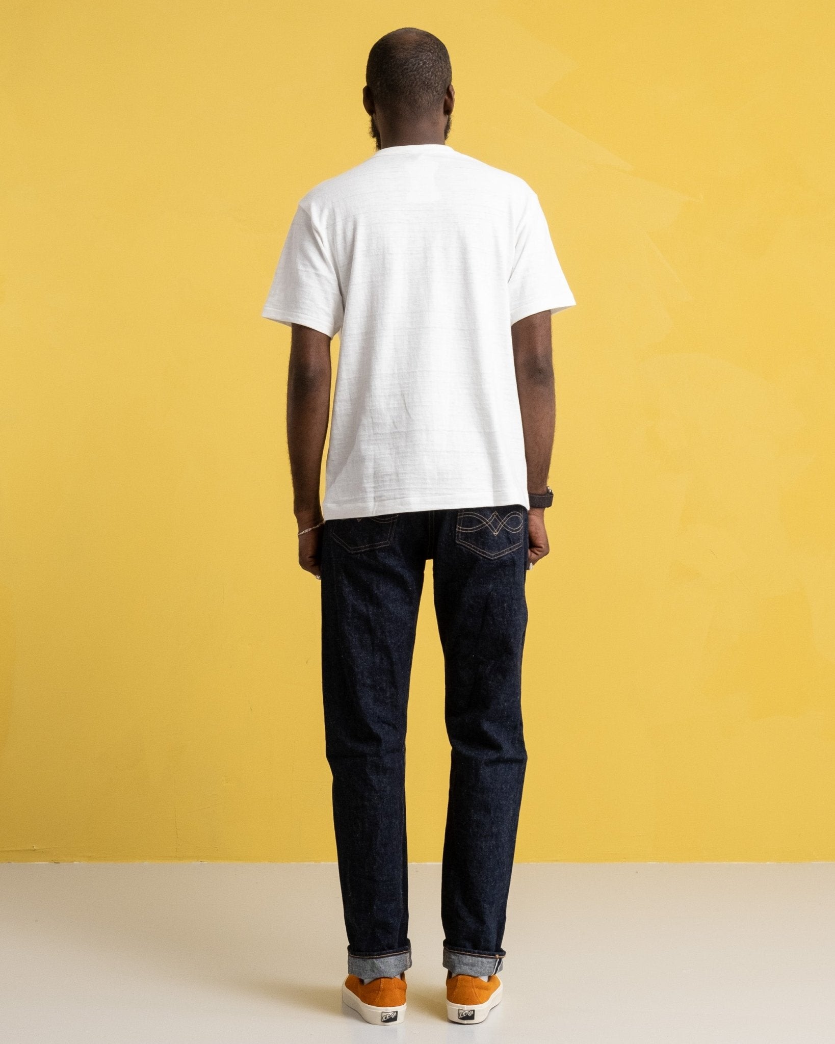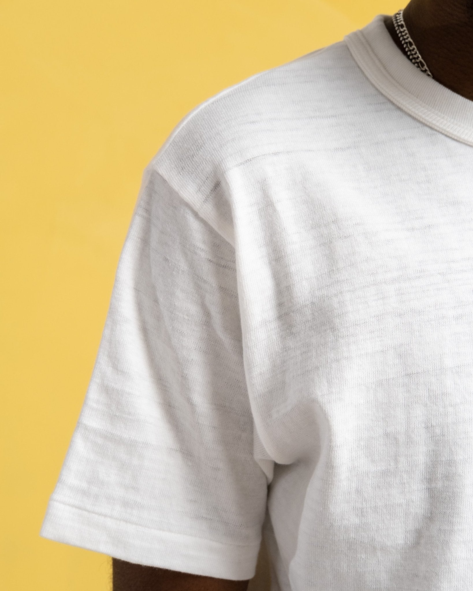 4601 T-shirt semplice color avorio di Warehouse & CO. Super morbida e confortevole maglietta di cotone a maniche corte. Maglia tubolare che significa che non ci sono cuciture laterali per un comfort aggiunto. Prodotto in Giappone.