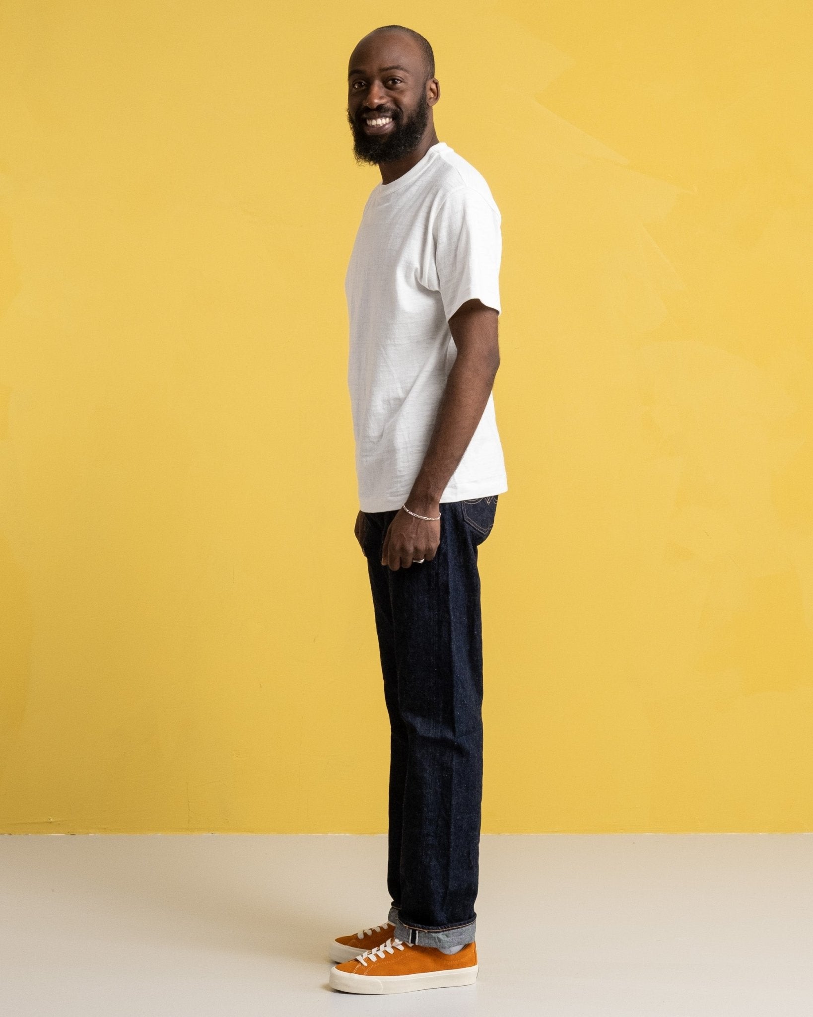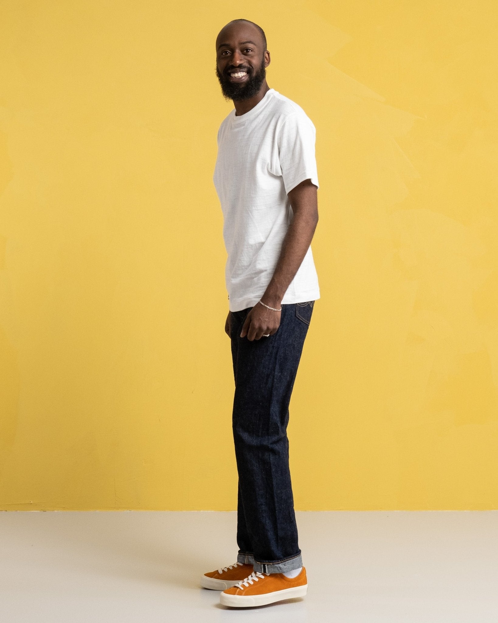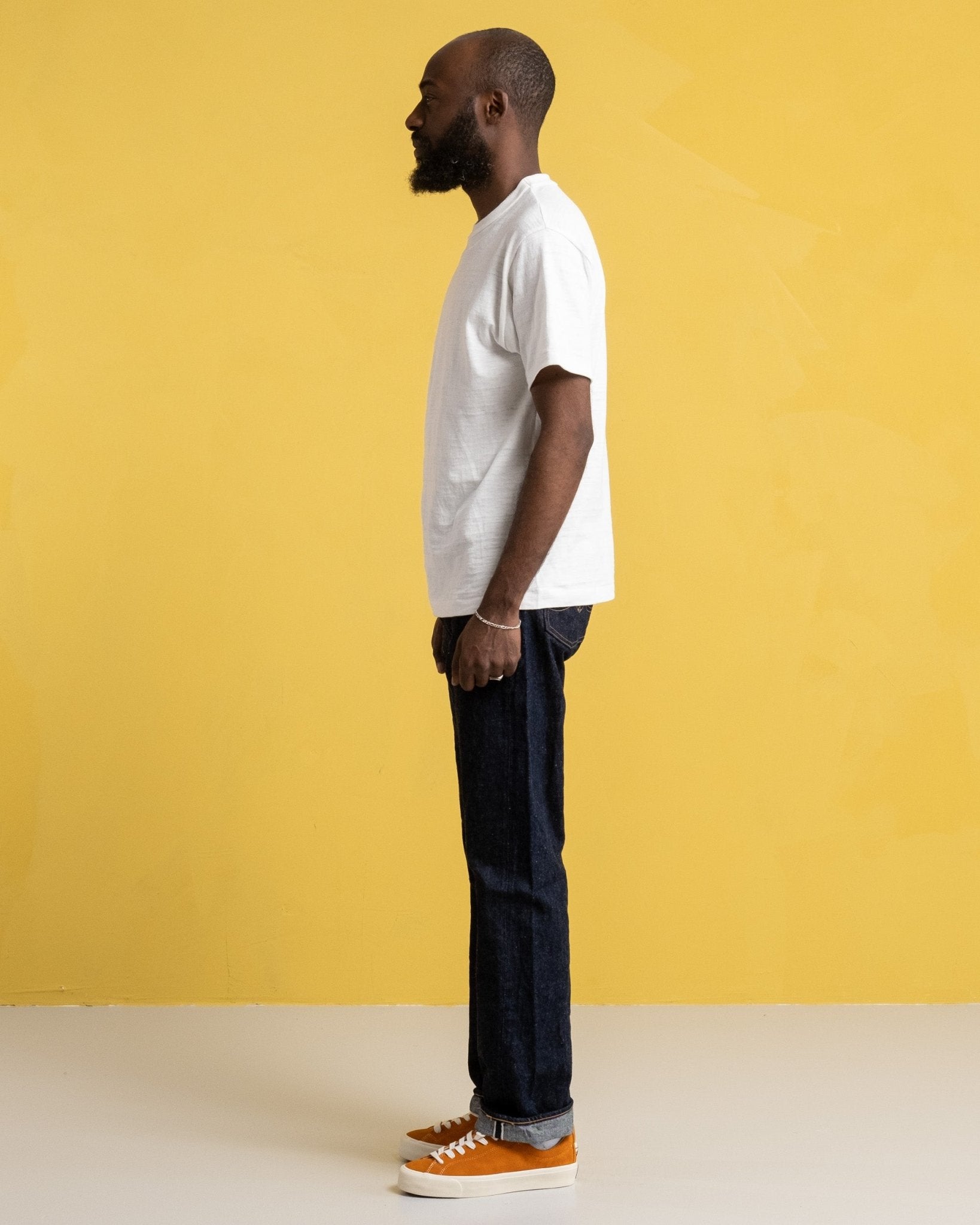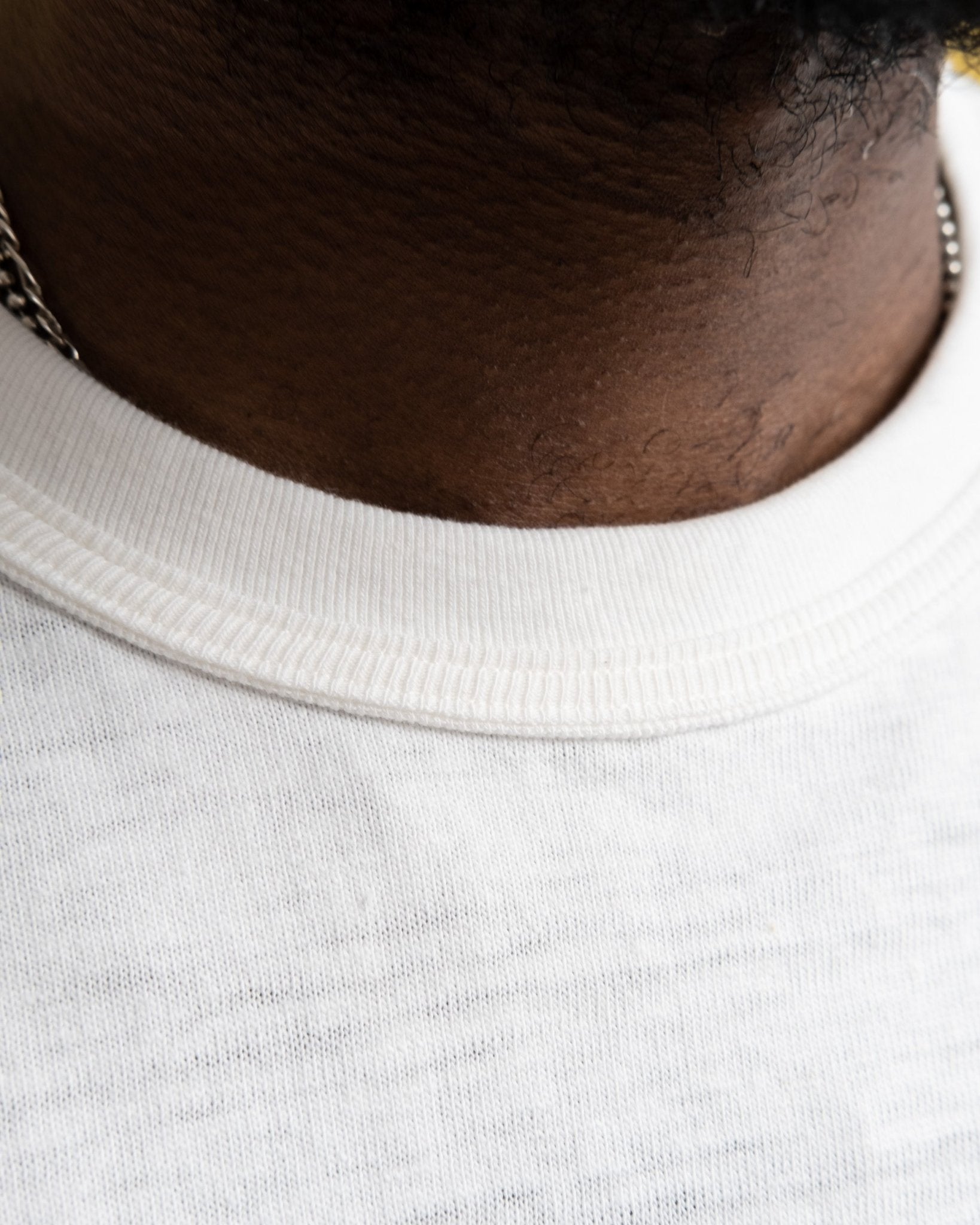 4601 T-shirt semplice color avorio di Warehouse & CO. Super morbida e confortevole maglietta di cotone a maniche corte. Maglia tubolare che significa che non ci sono cuciture laterali per un comfort aggiunto. Prodotto in Giappone.