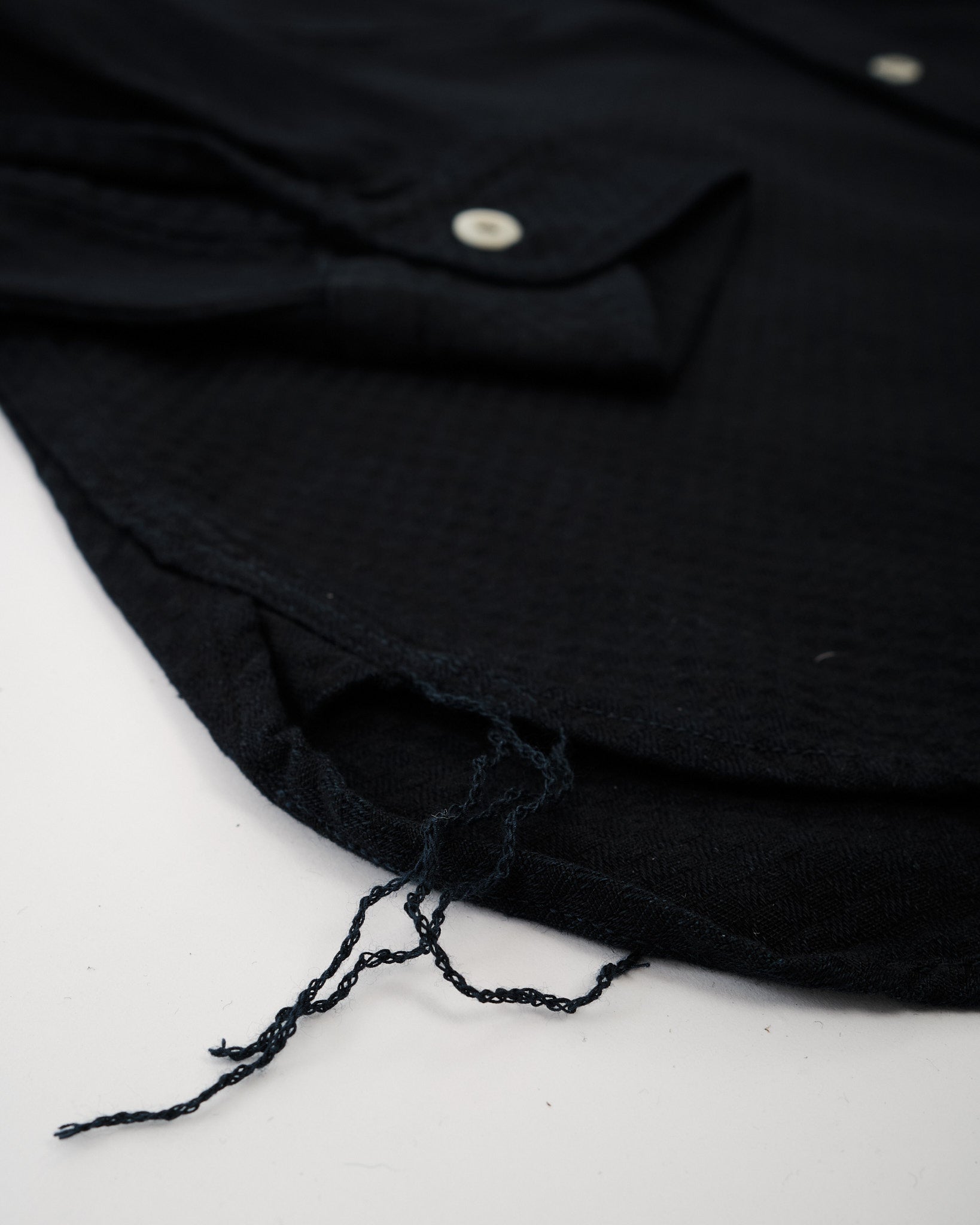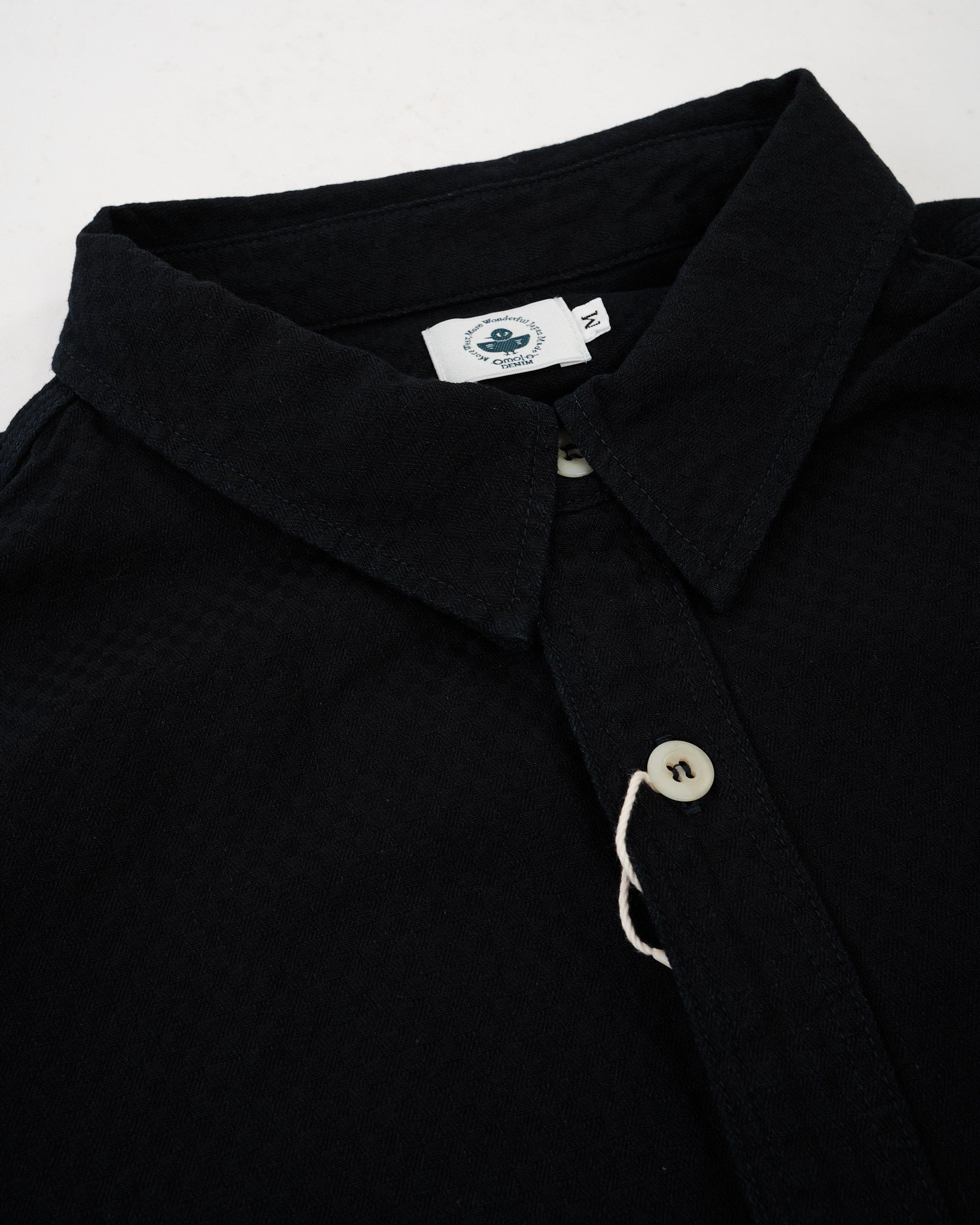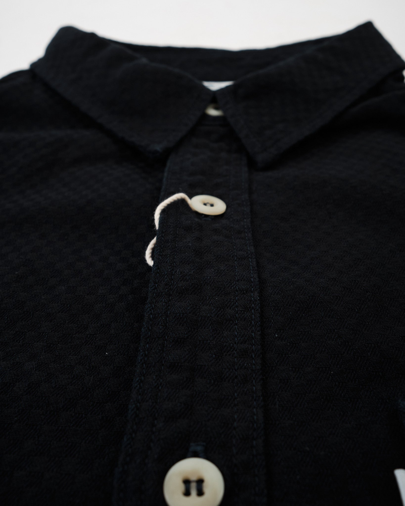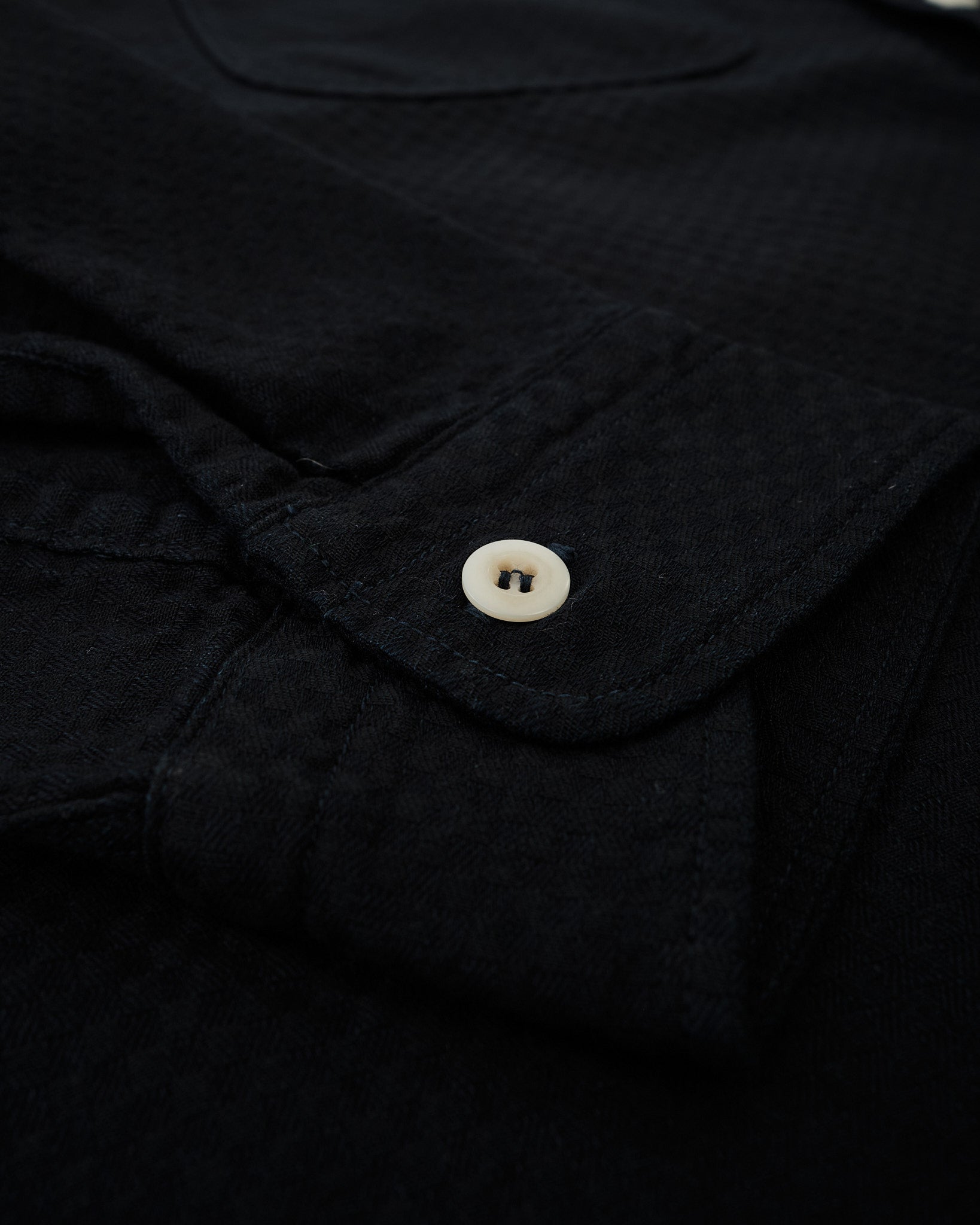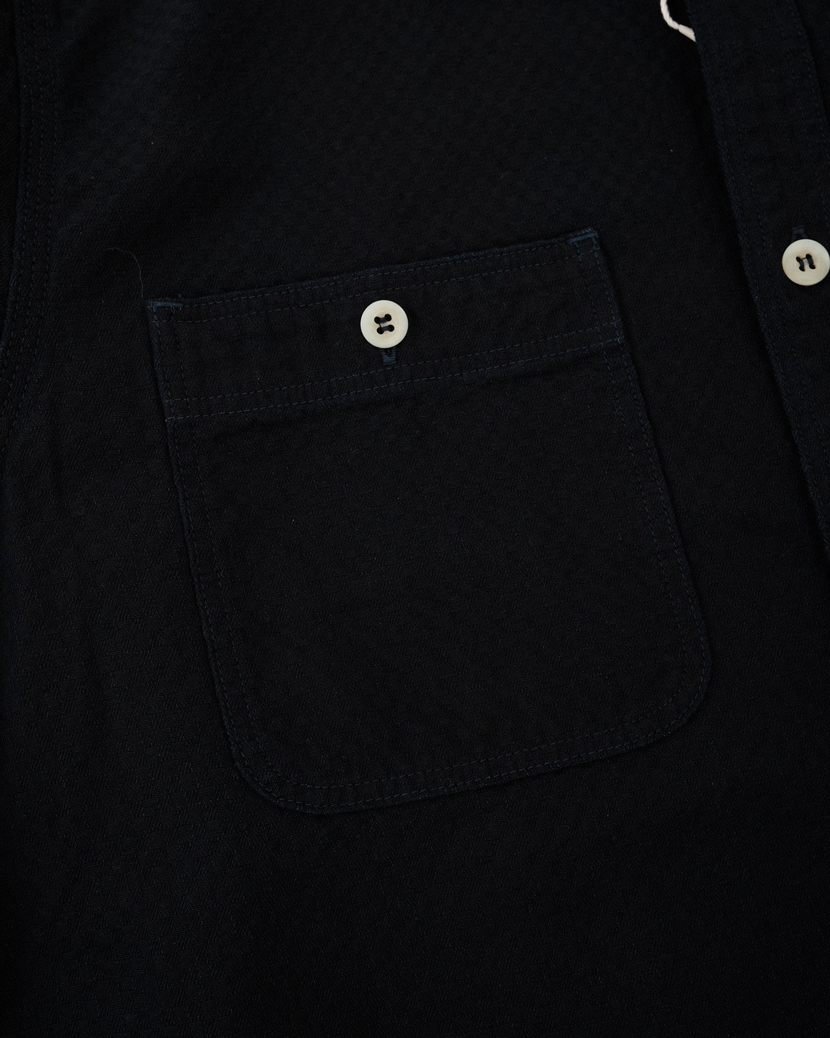 I dettagli chiave includono il selvedge blu-verde “MIMI” di OMOTO, bottoni metallici originali, e cuciture rinforzate per una lunga durata. Una classica silhouette di camicia da lavoro rende questo capo un pezzo senza tempo, che unisce l'artigianato ereditario con lo stile moderno.