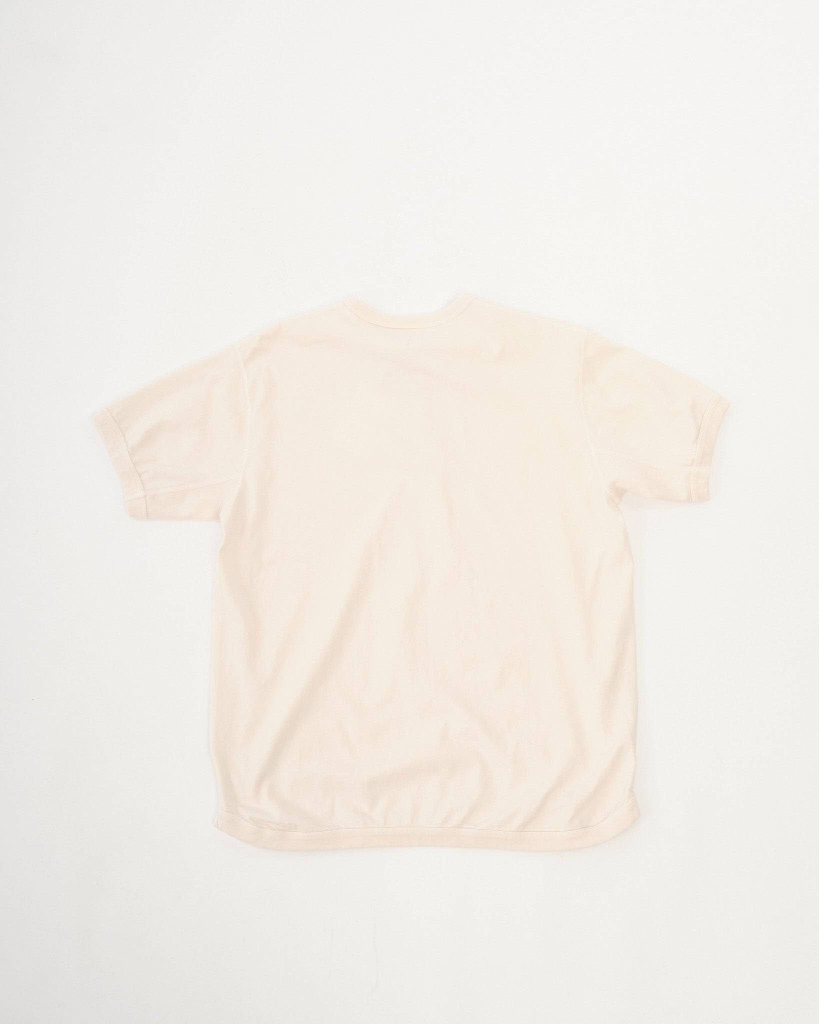 Circular knit to size on vintage machines, this tee has no side seams, giving it a clean fit that molds to your body with wear. The Henley neckline adds versatility, with a finer binder than standard tees for a casual, rugged edge when left open. A unique spinning method traps air inside the yarn, creating a soft-yet-substantial feel, while the 4-needle flat seam stitching ensures irritation-free wear.