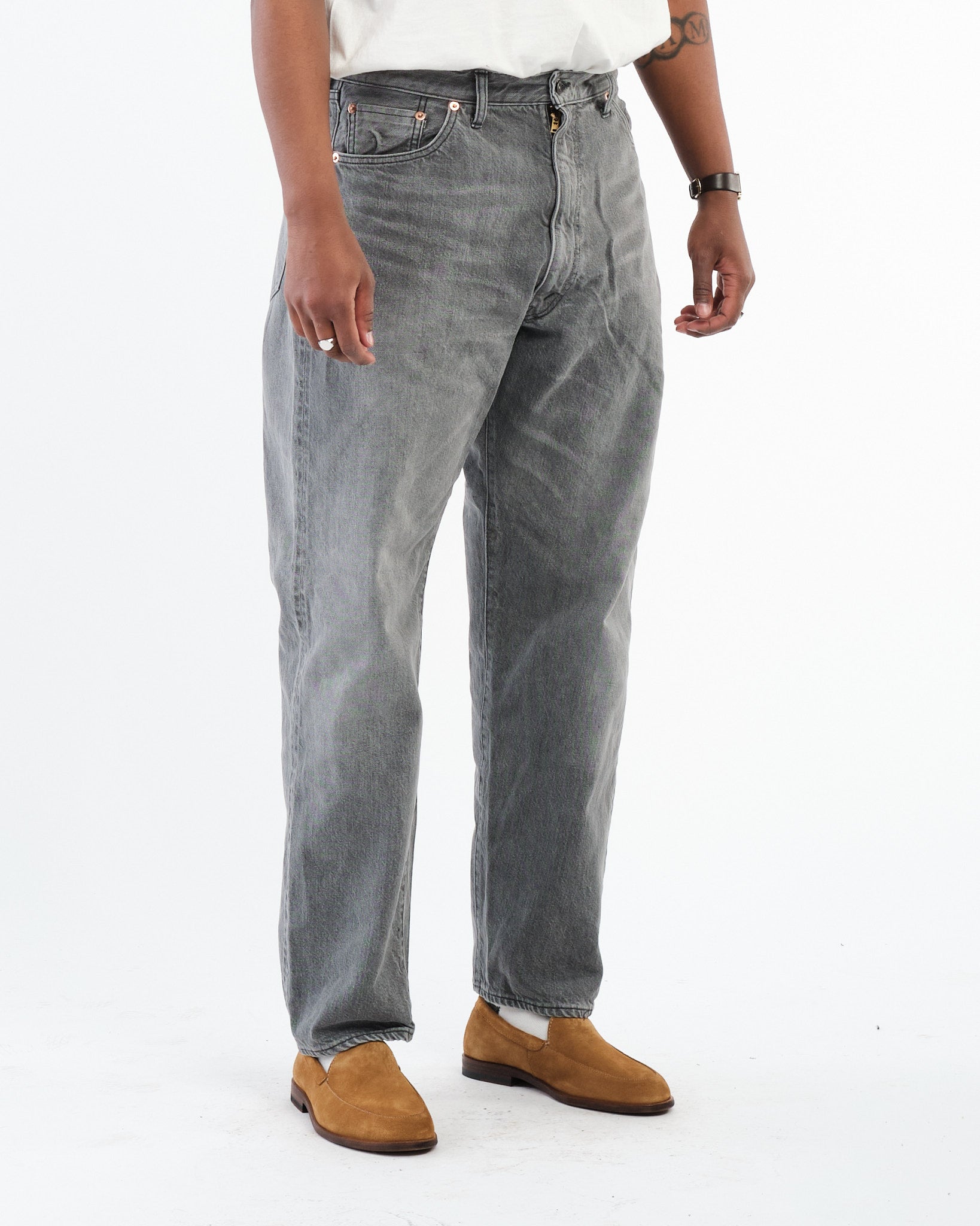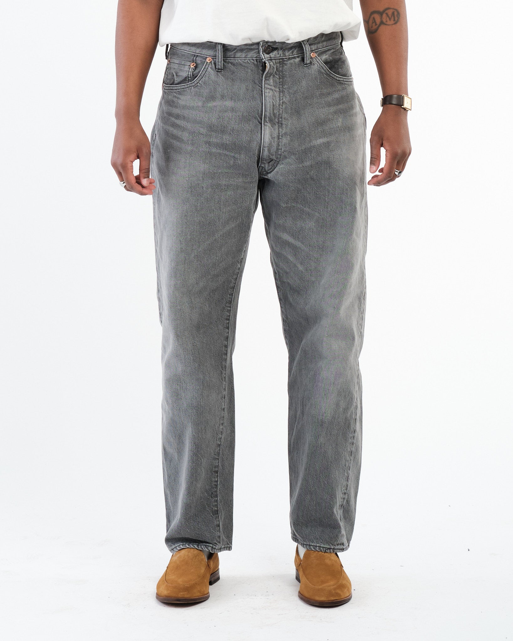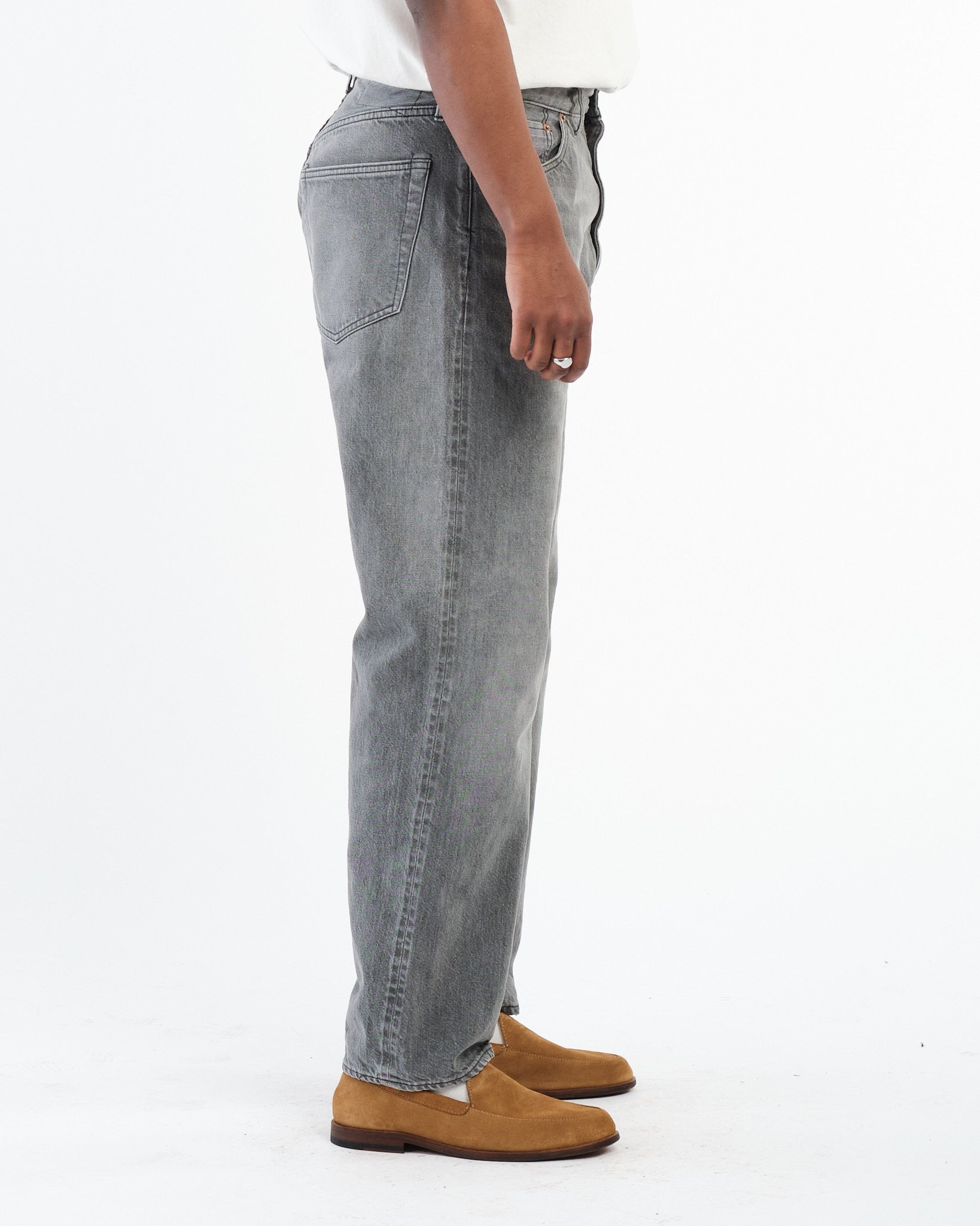 5P Zipper Front Denim Pants Black Vintage Wash