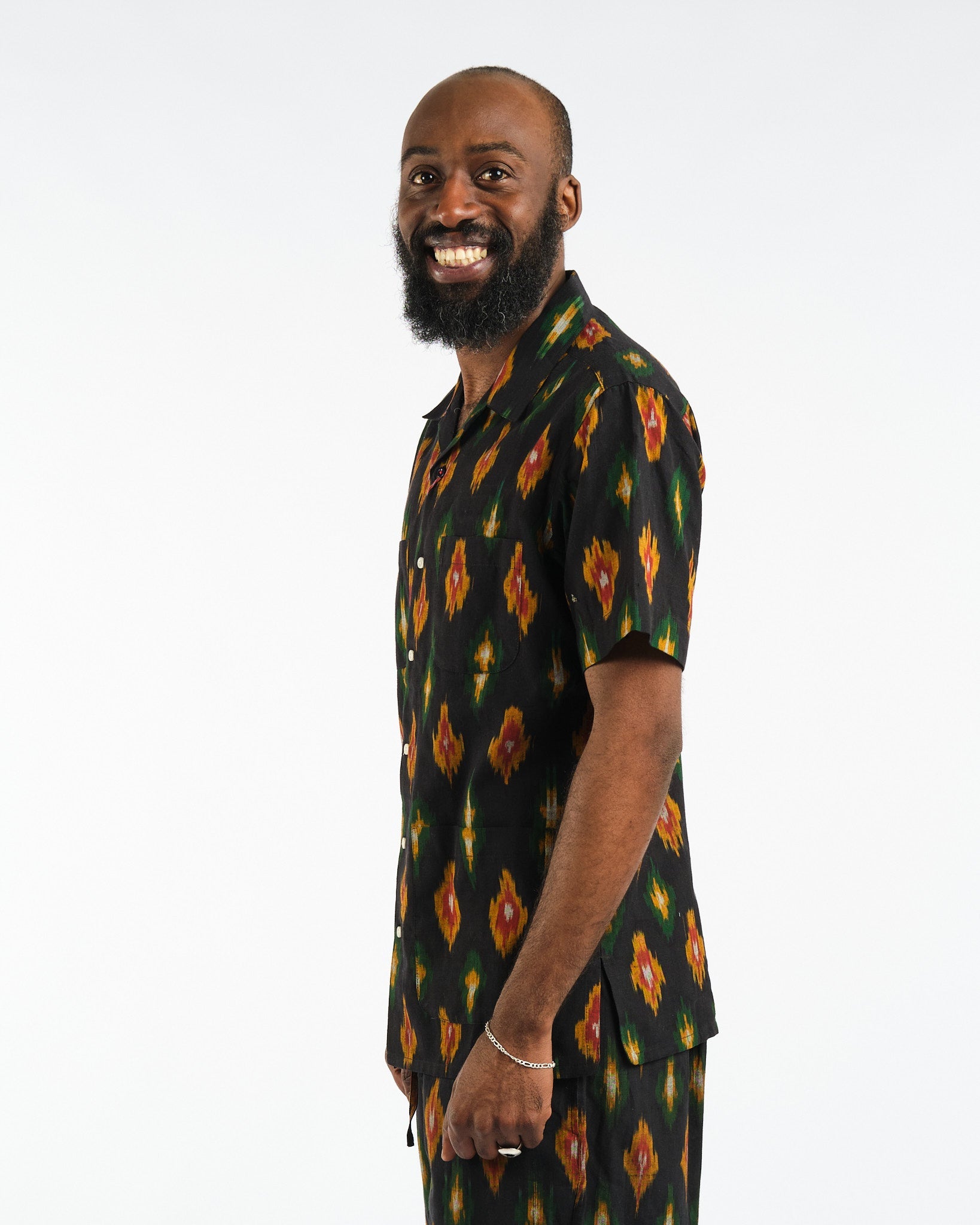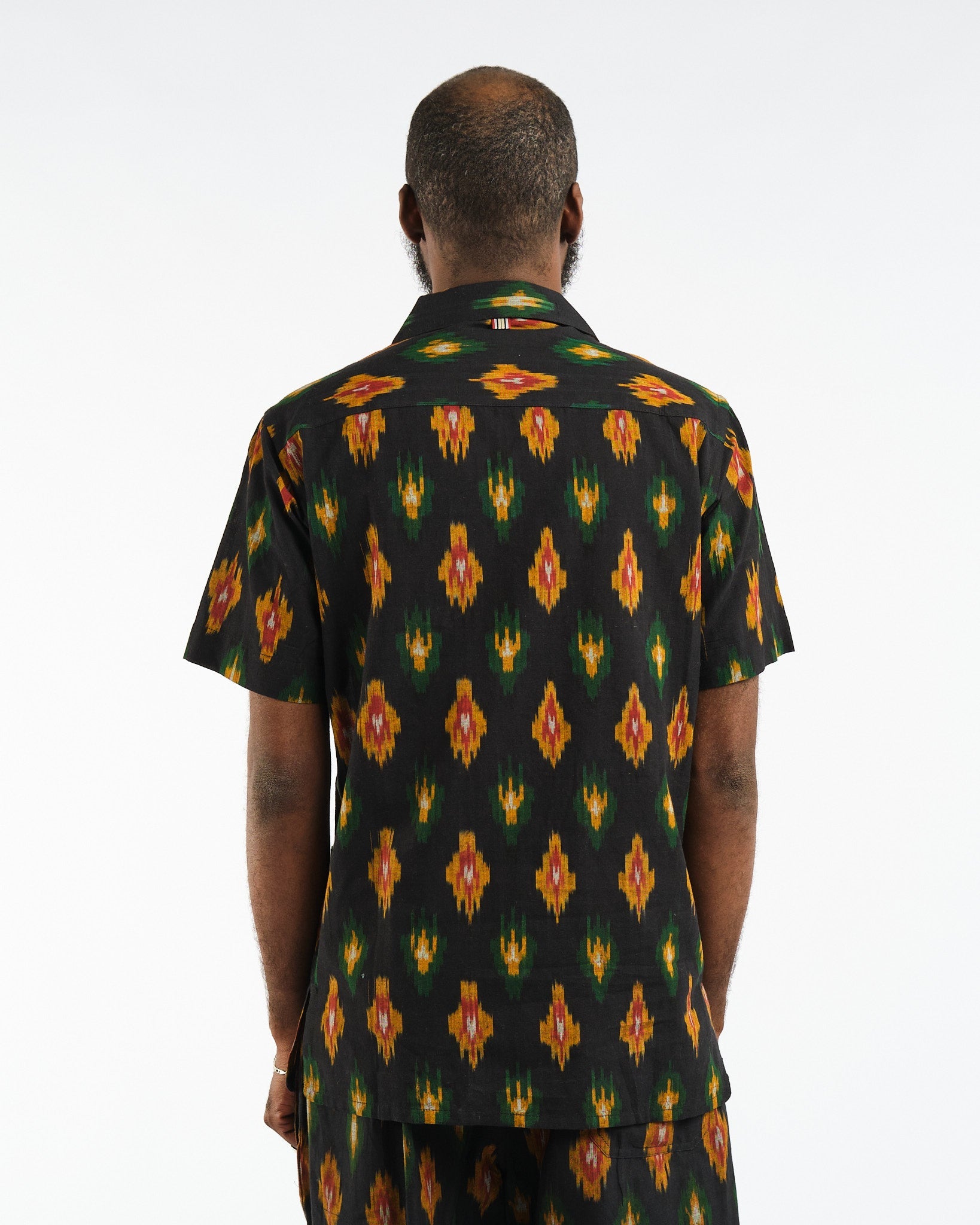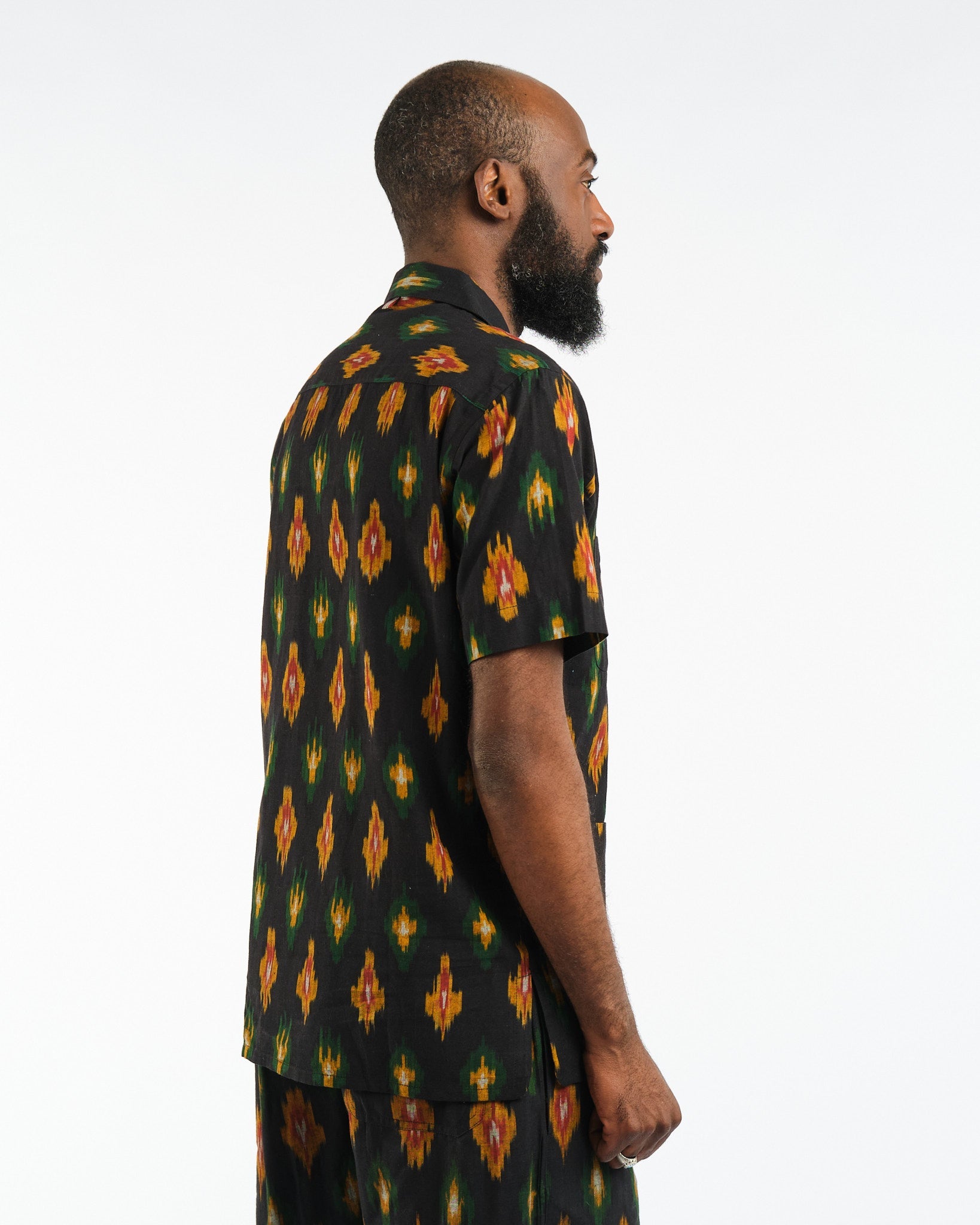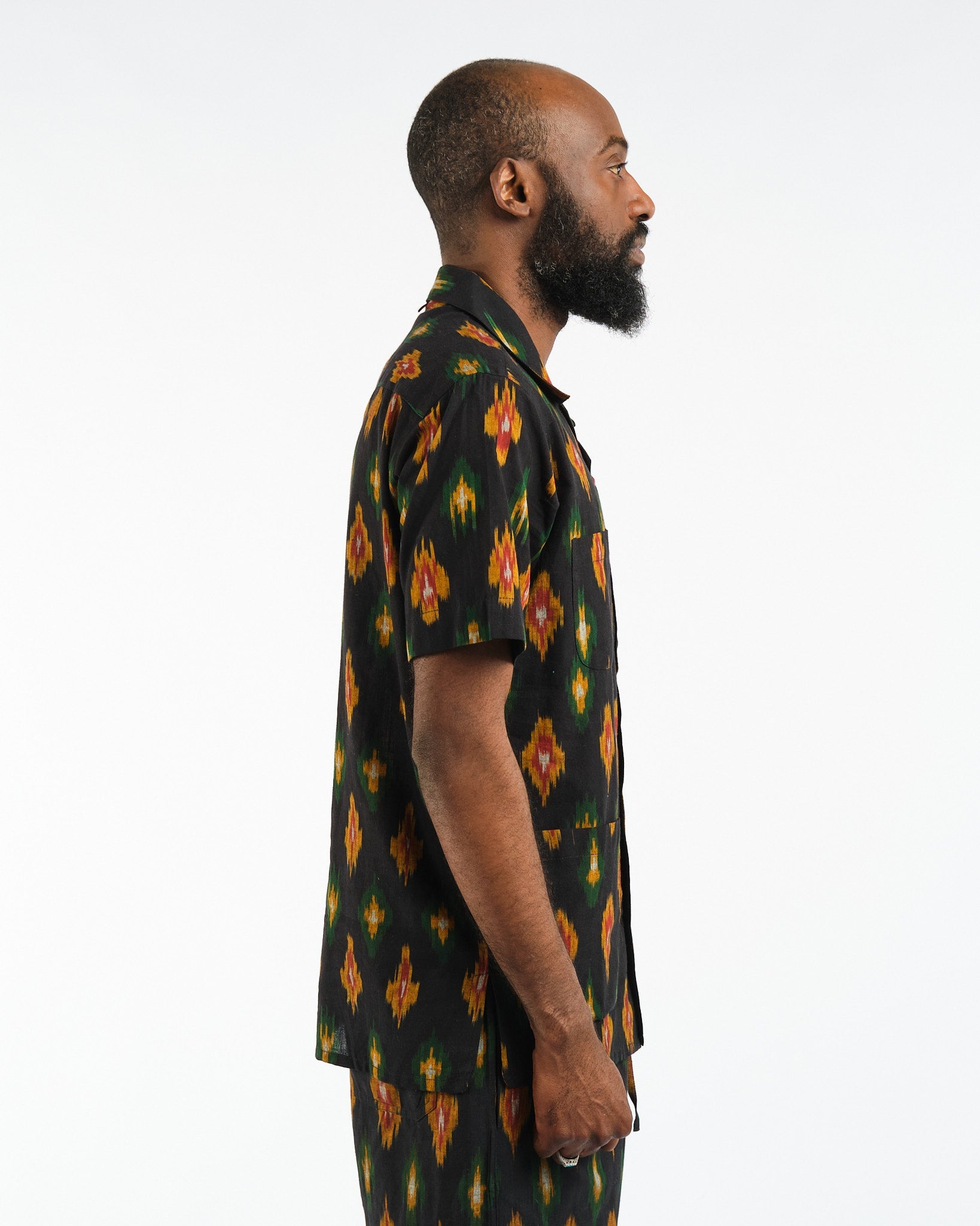 Il tessuto Ikat tessuto a mano aggiunge un tocco unico e tradizionale alla camicia.