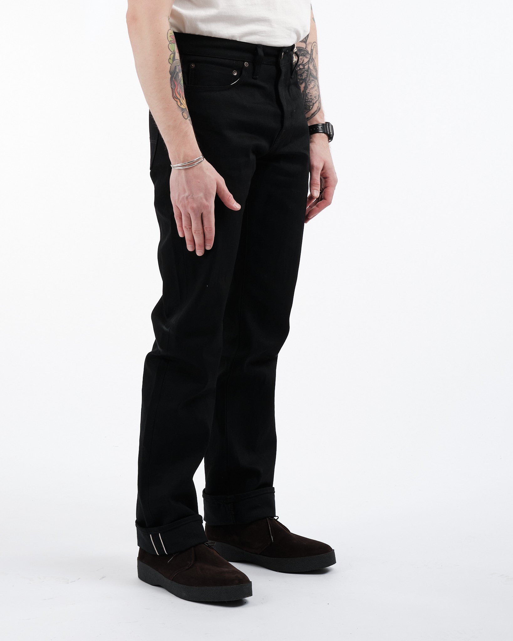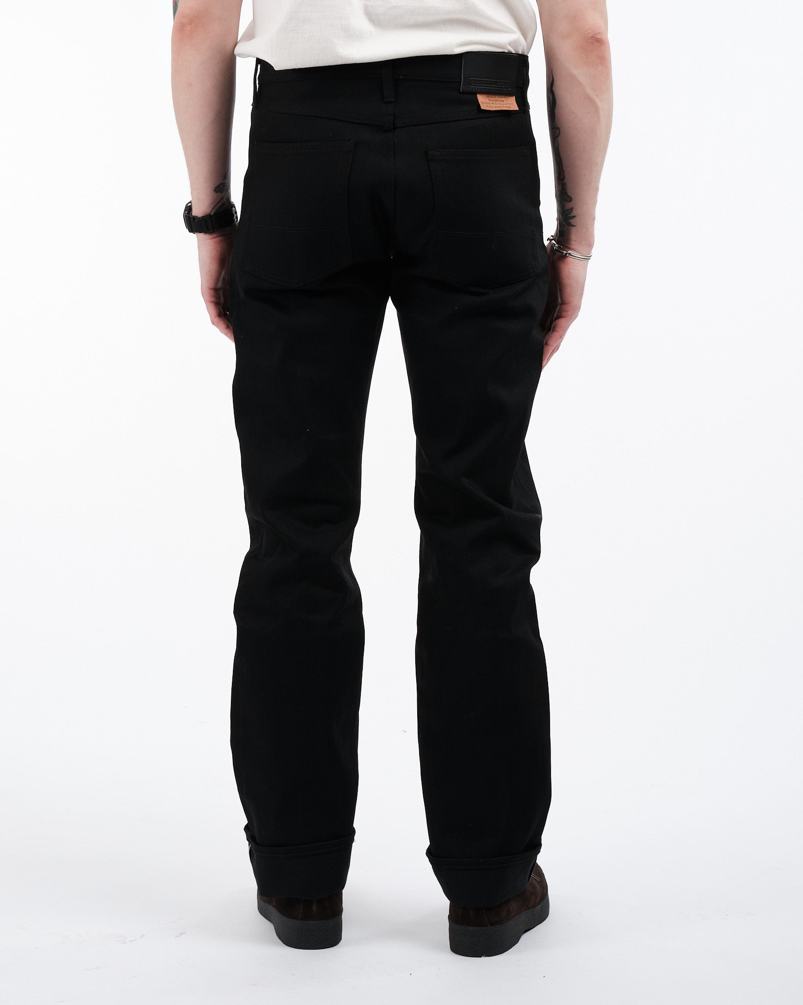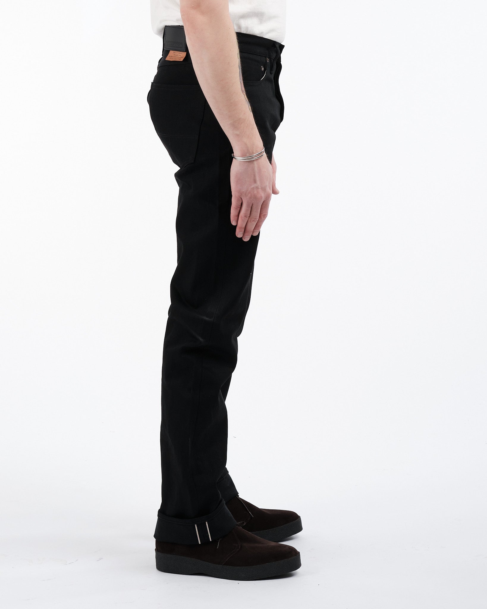 Vivi il massimo dell'eleganza con i jeans Ankara di Tellasons codice di stile 10012.15 in selvage giapponese. Questi jeans incarnano la sofisticatezza senza tempo, meticolosamente realizzati con denim selvage proprietario sanforizzato a riga rossa giapponese da 13,5 oz. per un equilibrio di durabilità e comfort. Con una vestibilità a gamba dritta che si adatta a tutte le forme del corpo, i jeans Ankara esibiscono un design duraturo e un'arte esperta. Gli attributi notevoli includono una chiusura con bottoni, tasche robuste e fondi delle tasche posteriori rinforzati per una resilienza senza pari. L'aggiunta di una toppa in pelle Tanner Goods proveniente da Portland, Oregon, conferisce un tocco di eccezionalità a questi jeans. Con cuciture graduate che vanno da 34,25" a 35,75", questi jeans garantiscono una vestibilità su misura per le preferenze individuali. Orgogliosamente fabbricati a San Francisco, California, USA, i jeans selvage neri Ankara incarnano l'eredità dell'artigianato denim americano, soddisfacendo coloro con un gusto raffinato, per qualità e moda.
