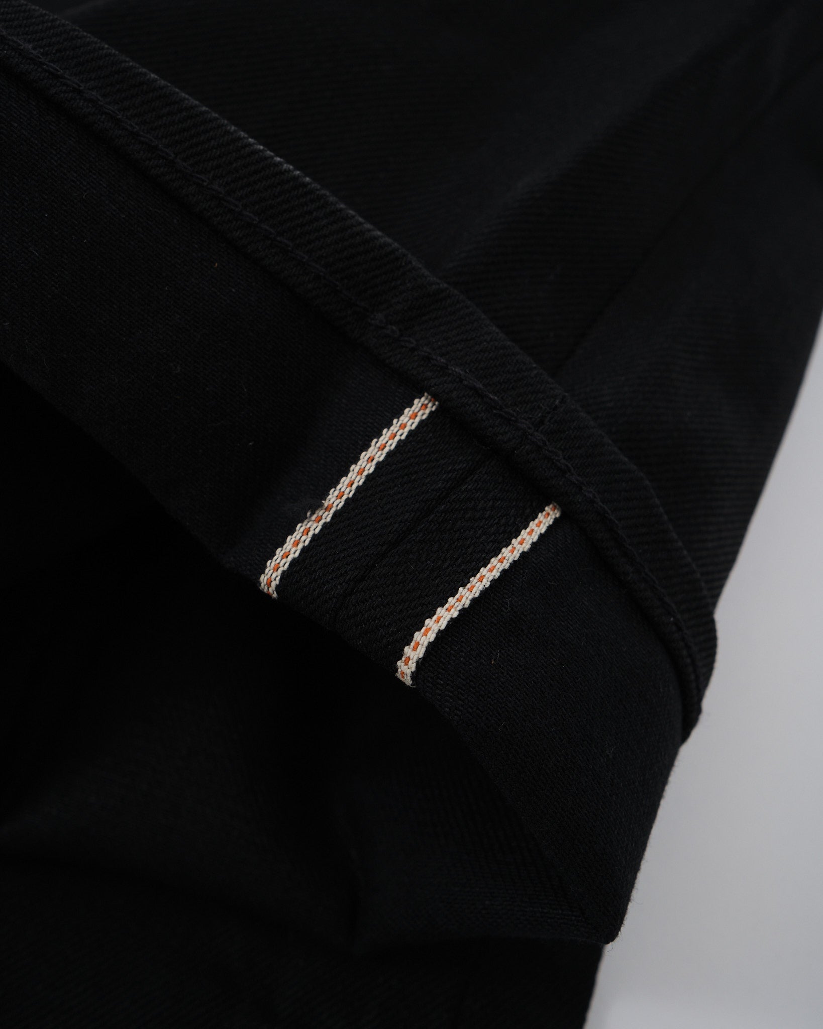 1. Denim Selvage Giapponese Premium: Realizzato in denim selvage proprietario giapponese da 13,5 oz. con linea rossa sanforizzato per la massima qualità.