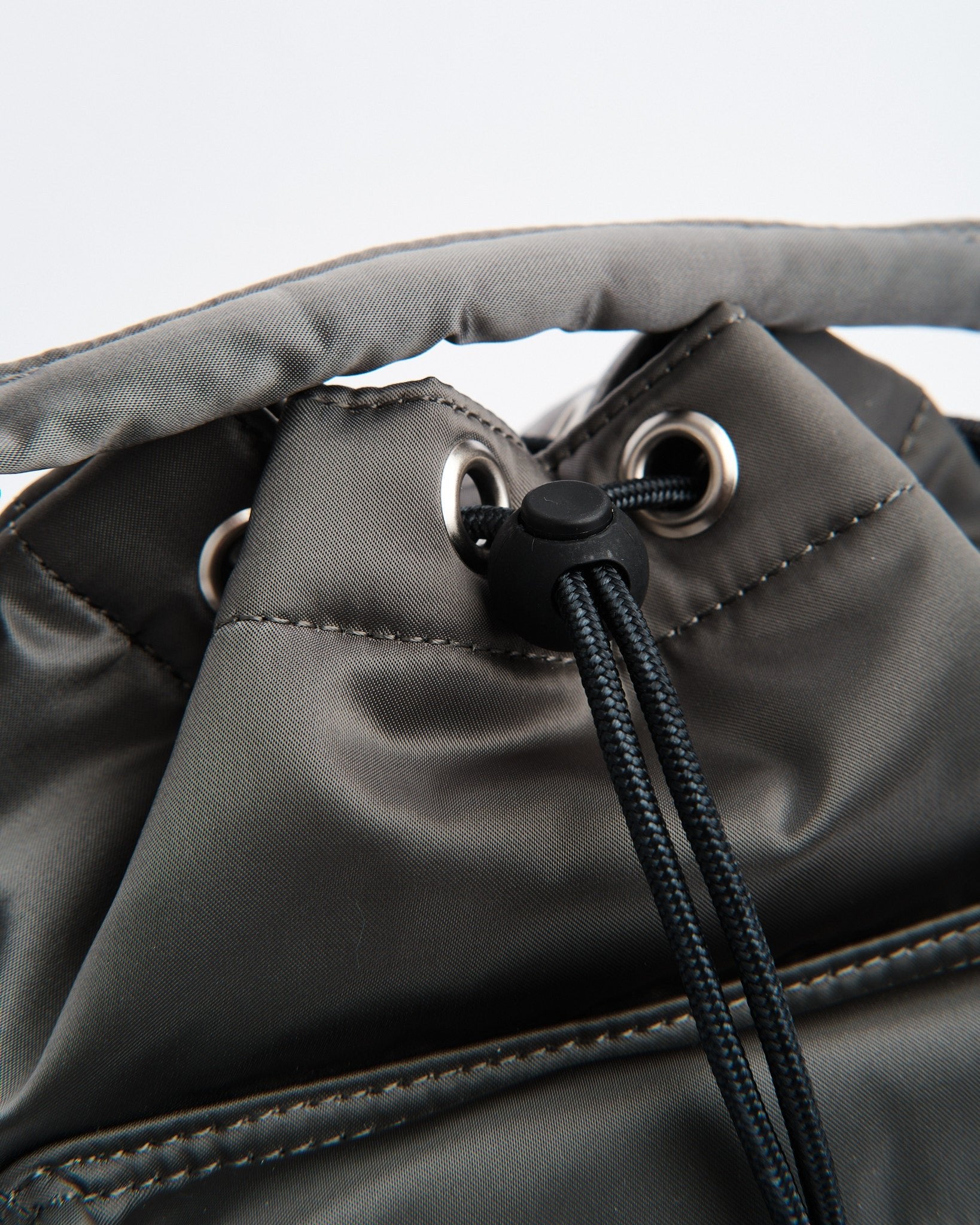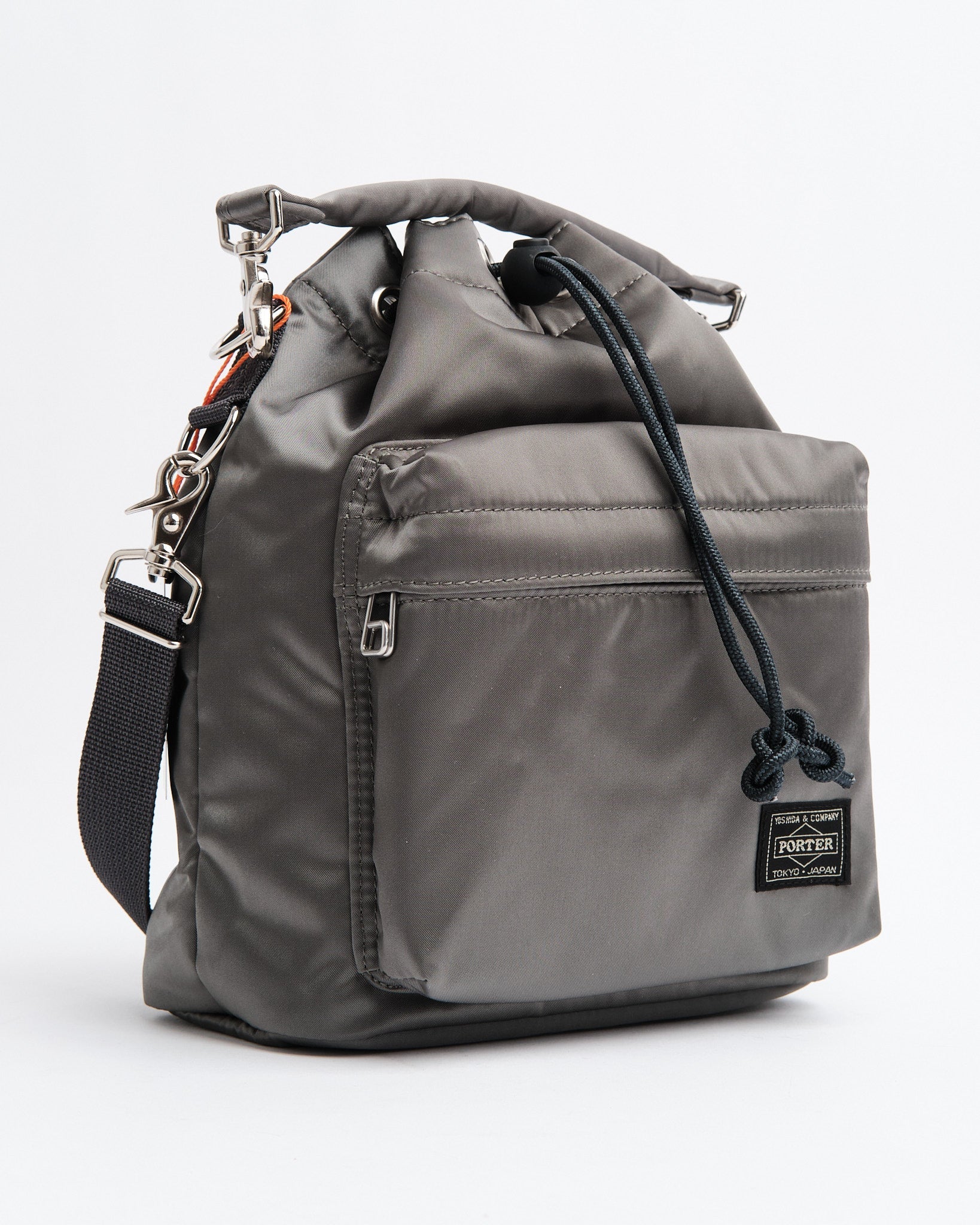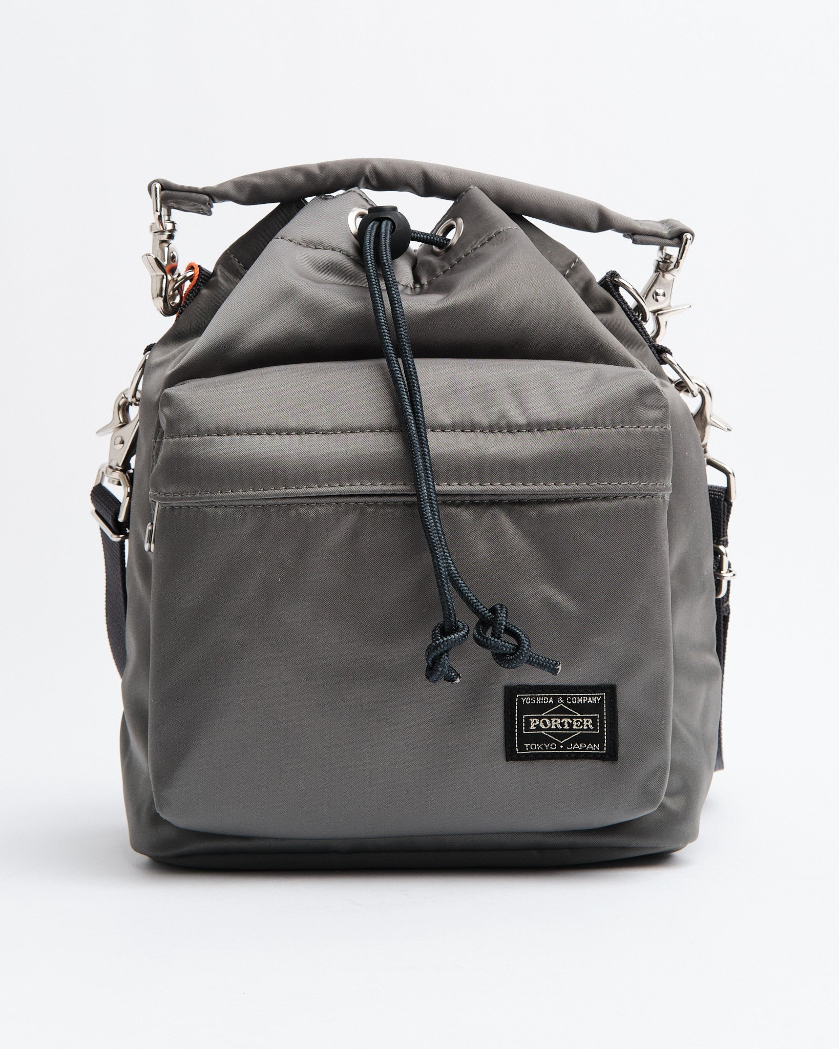 La PORTER by Yoshida Balloon Bag (S) in Grigio Argento è un accessorio compatto e versatile che combina design minimalista con funzionalità pratica. Realizzata in tessuto twill di nylon-cotone lucido, offre una sottile lucentezza e una texture morbida, garantendo sia durata che eleganza. Il capiente scomparto principale è assicurato con una chiusura a coulisse regolabile, mantenendo al sicuro i tuoi beni. Inoltre, la borsa presenta una tasca frontale con zip per un facile accesso agli essenziali e una tasca interna nascosta con velcro per gli oggetti di valore. Con manici superiori staccabili e una tracolla regolabile, può essere portata come una borsa a mano o indossata a tracolla. Realizzata a mano in Giappone, questa Balloon Bag è l'esempio dell'impegno di PORTER per la qualità e l'attenzione ai dettagli.