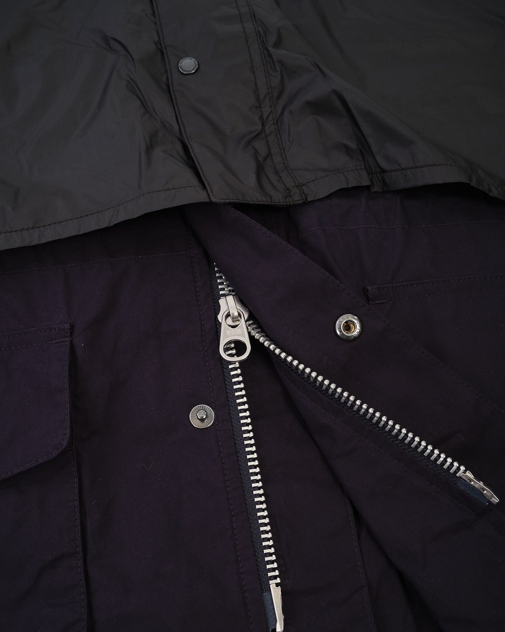Zip in ottone a due vie con patta antitempesta a chiusura a pressione