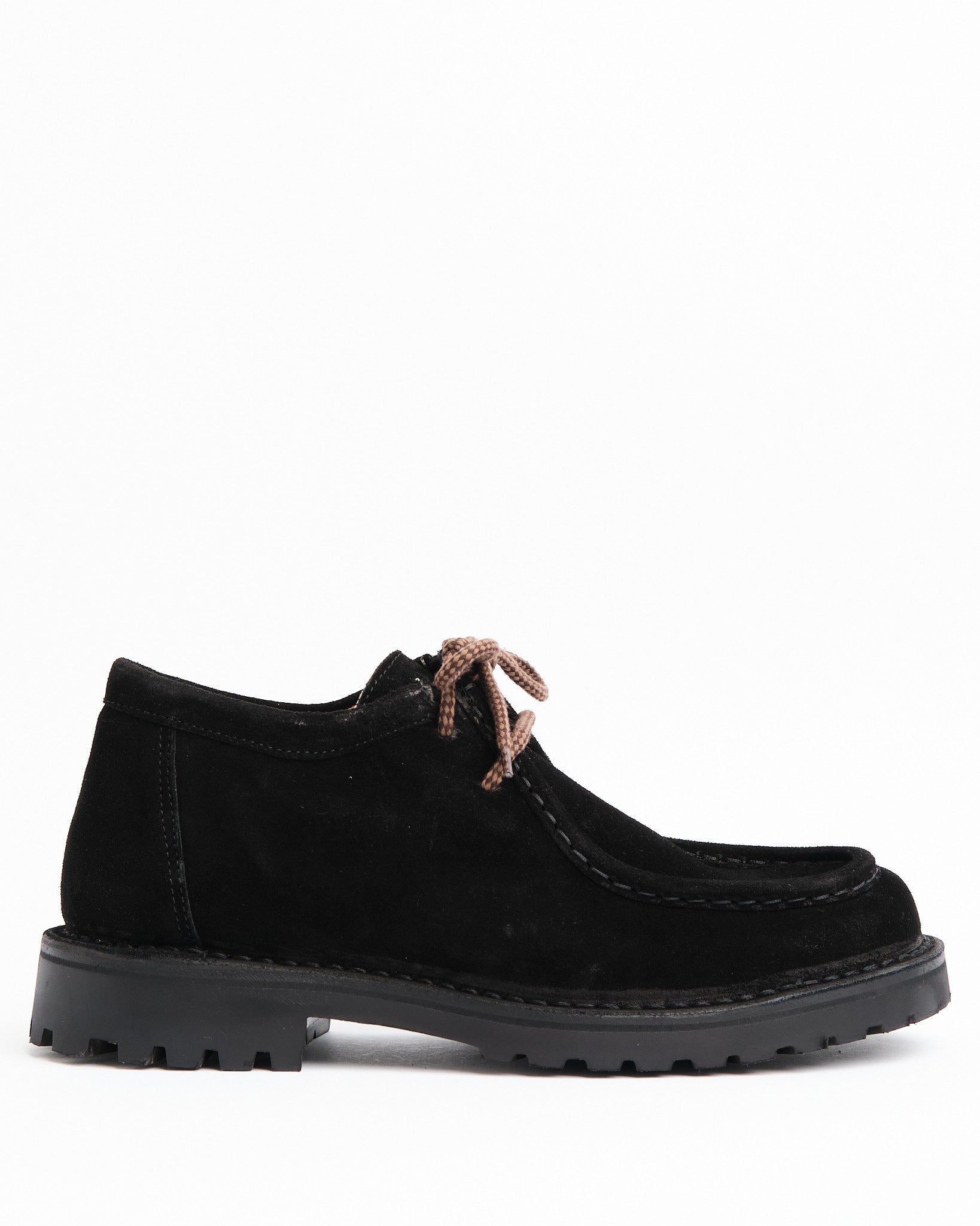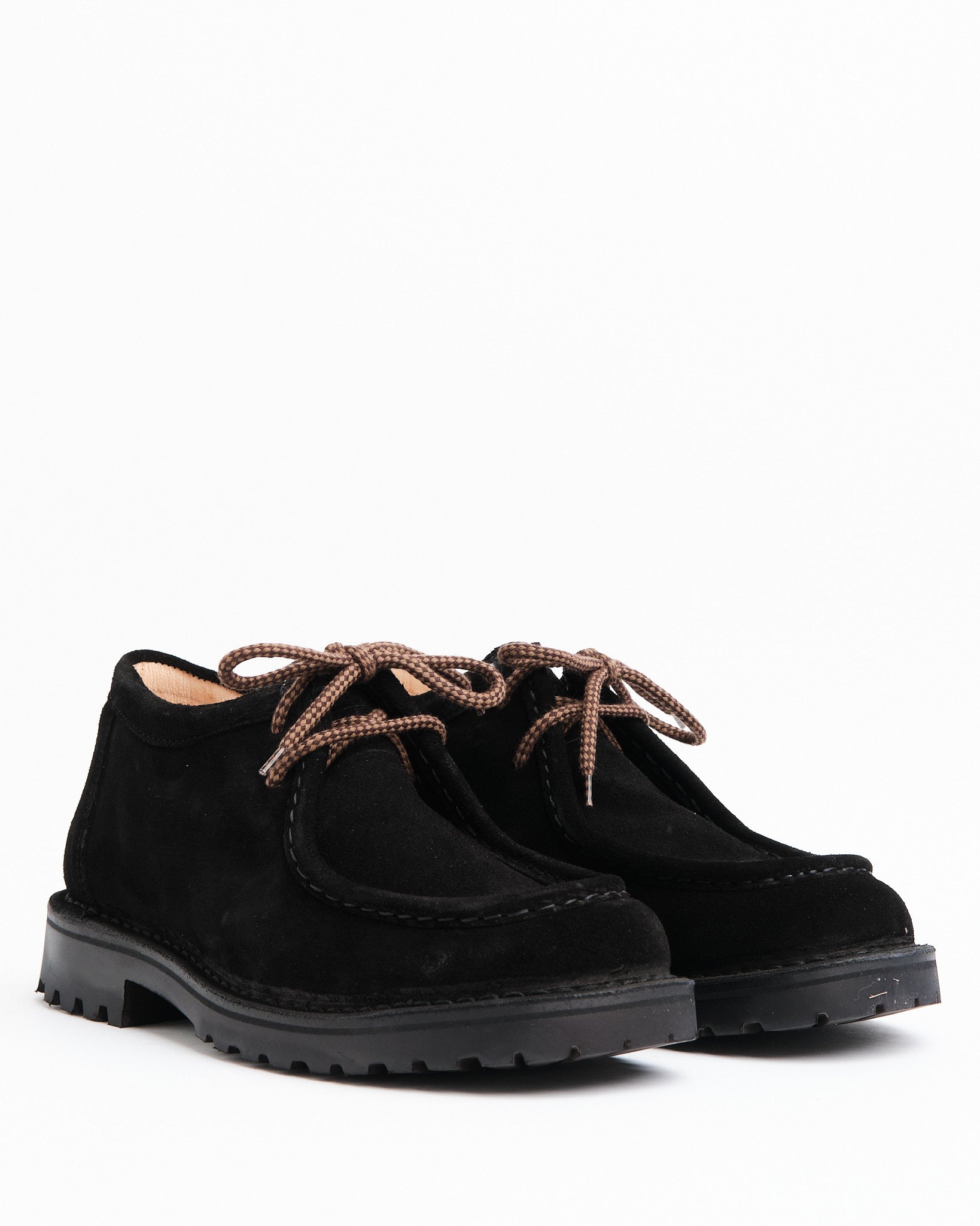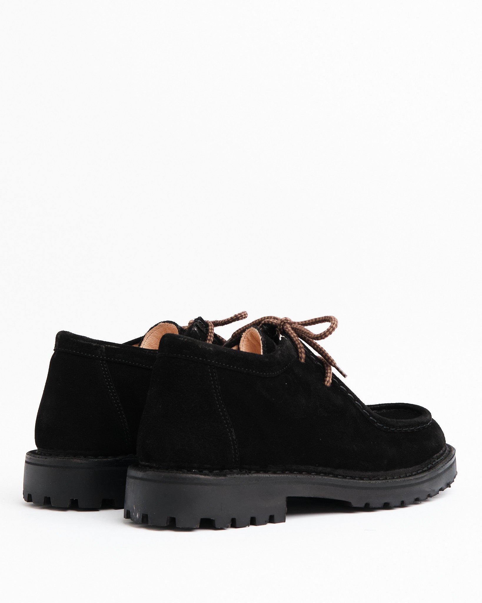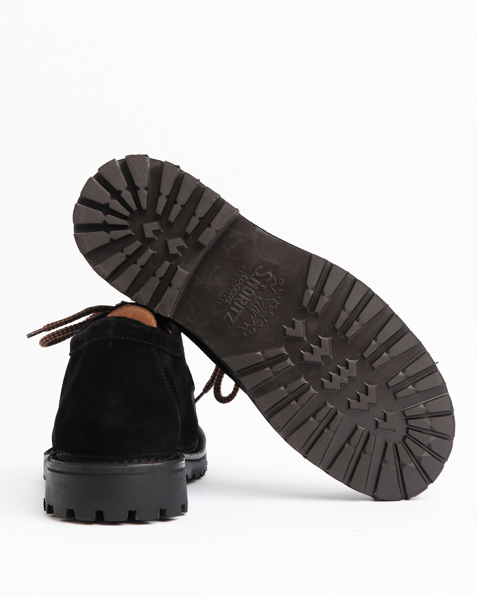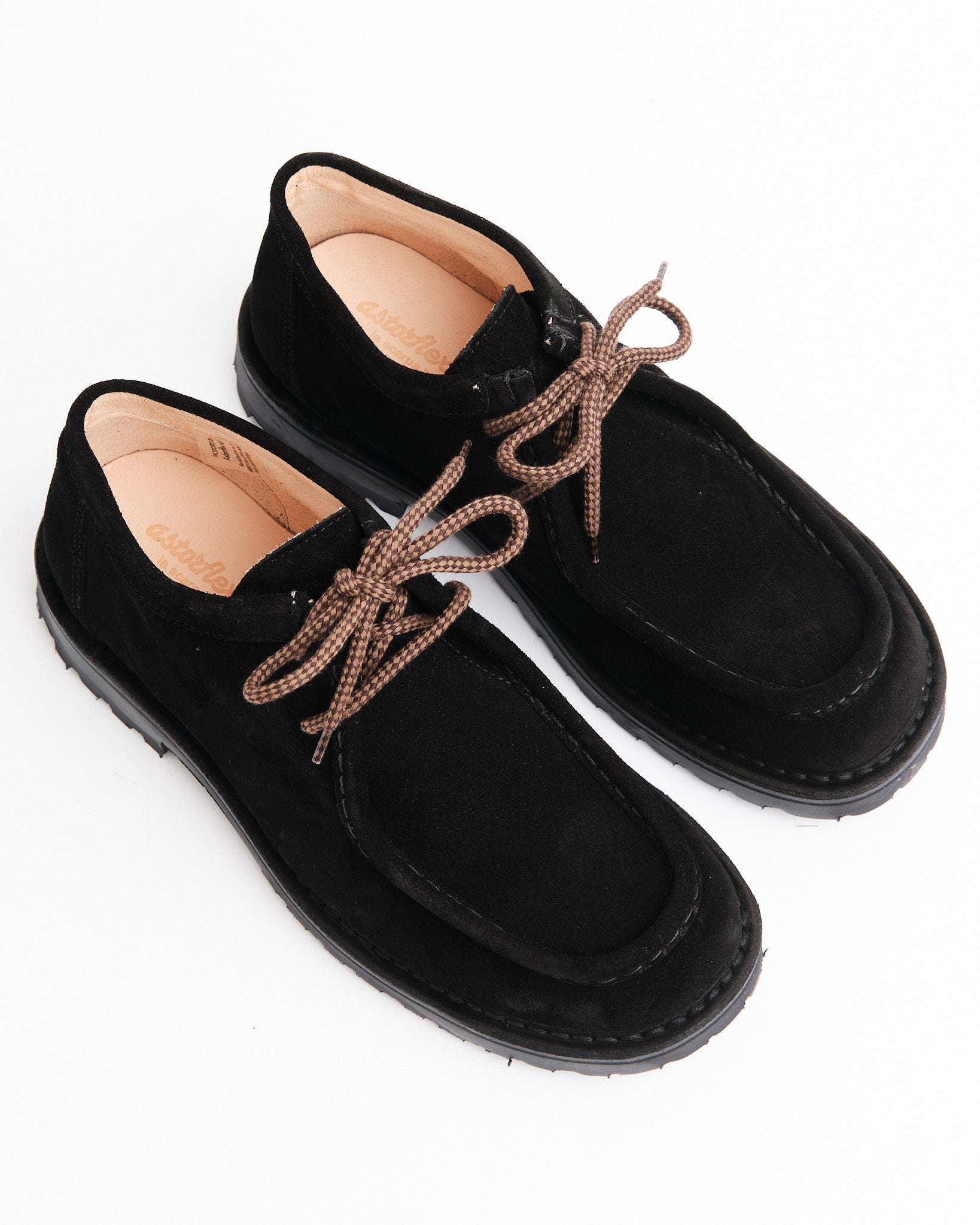 • Tomaia in pelle scamosciata conciata al vegetale in nero profondo