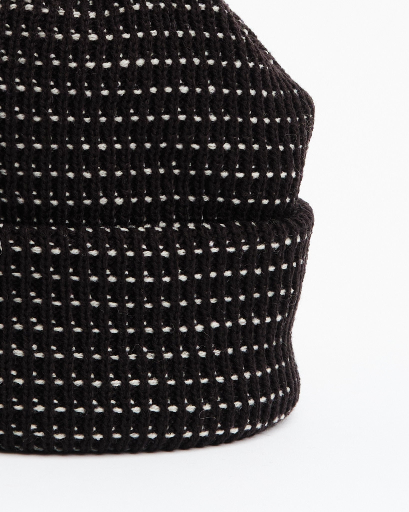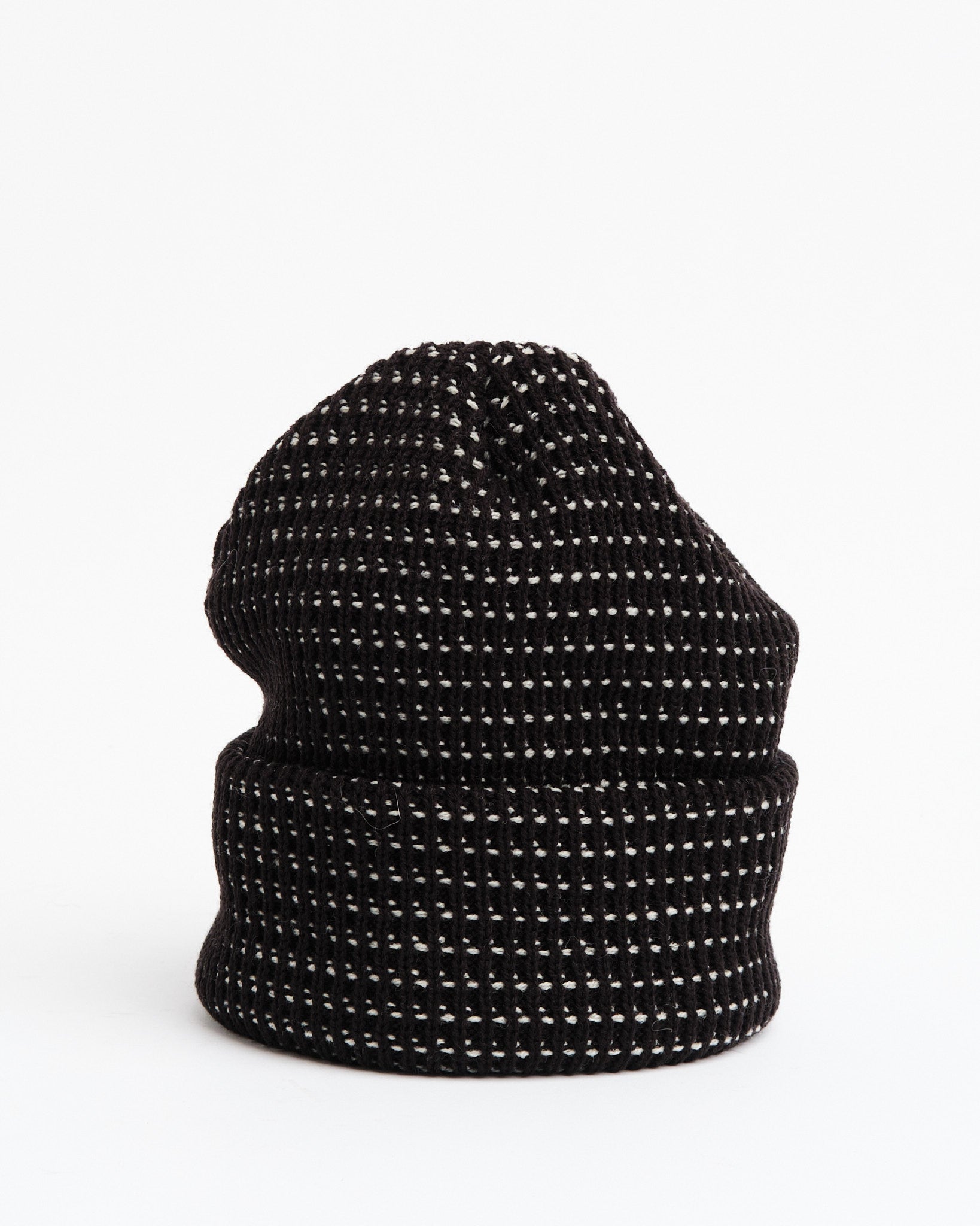 Riscaldatevi con il Berretto a Maglia Goffrata Found Feather in Nero. La novità di questa stagione è realizzata in filato di Cotone 100% con una tessitura a motivo incrociato che gli conferisce un aspetto unico simile a una cialda. Un filo di colore avorio a contrasto è tessuto orizzontalmente attraverso la maglia. Il berretto presenta una corona di 20cm realizzata da un unico pannello, una maglia super morbida e un risvolto singolo di 7cm. Inoltre, è lavabile. Design unisex per tutti.