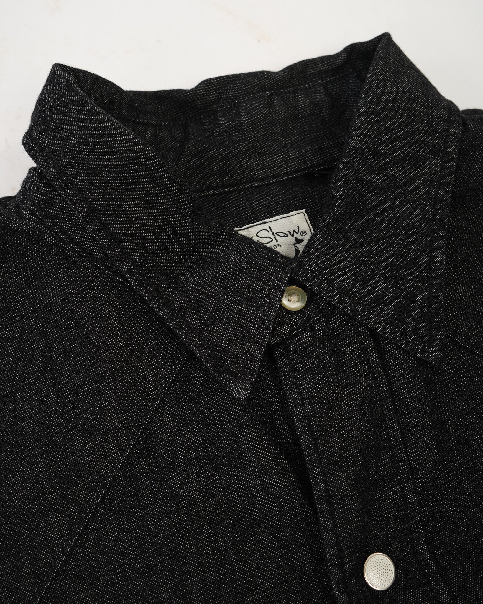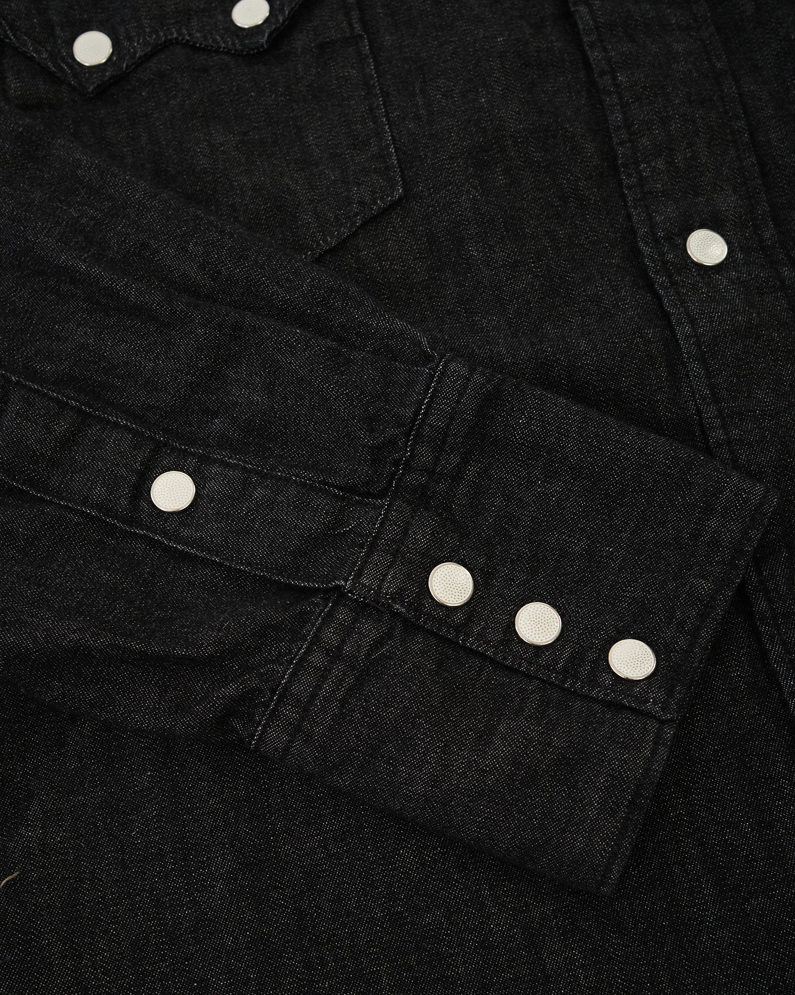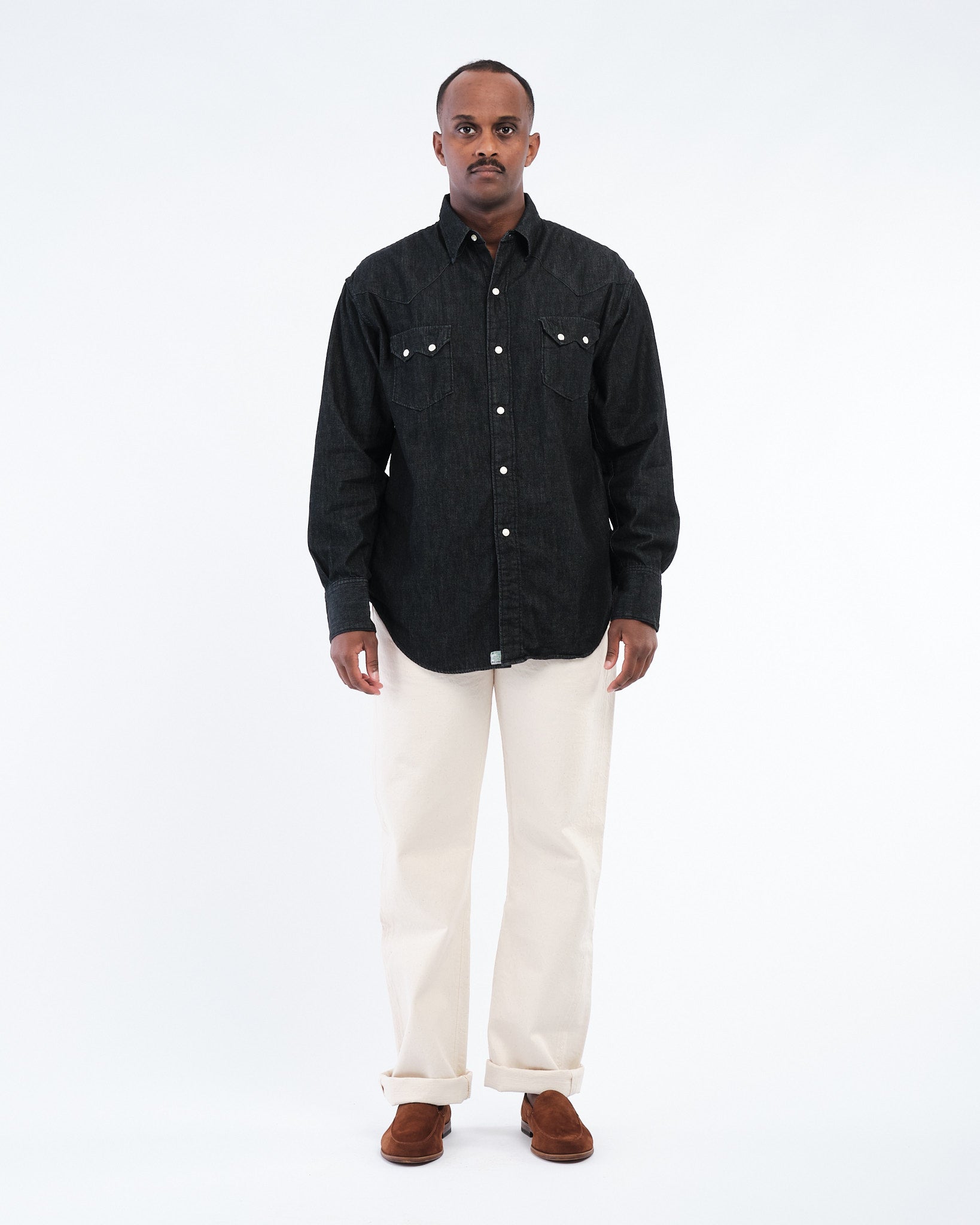 Un fedele omaggio agli anni '60, la Camicia Western in Denim Nero di orSlow (modello 01-8124-D61) cattura l'aspetto e la sensazione del denim vintage che ora è difficile da trovare. Realizzata in Giappone con denim nero da 6 once, bilancia una silhouette giusta con una lunghezza versatile che funziona sia infilata che fuori dai pantaloni. Le tasche sul petto e i distintivi "bottoni a fragola" la distinguono, mentre il tessuto leggero la rende perfetta come strato esterno per la primavera-estate o come capo da sovrapporre nei mesi più freddi.
