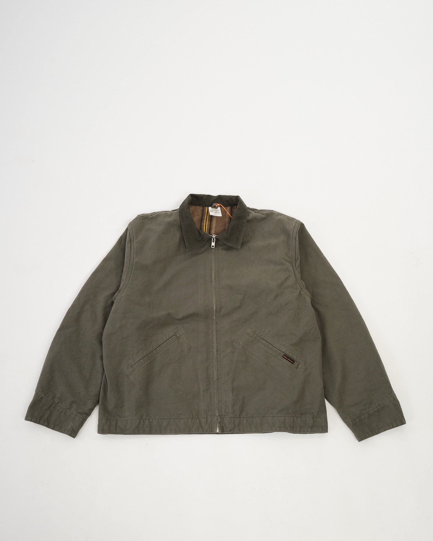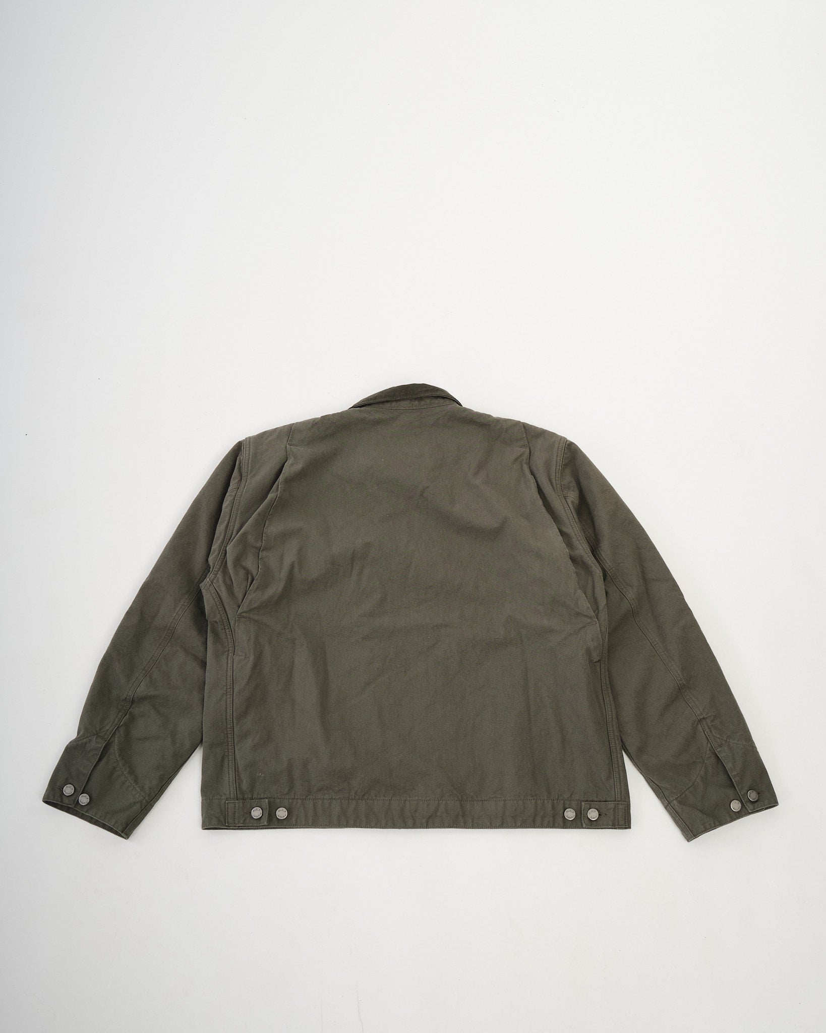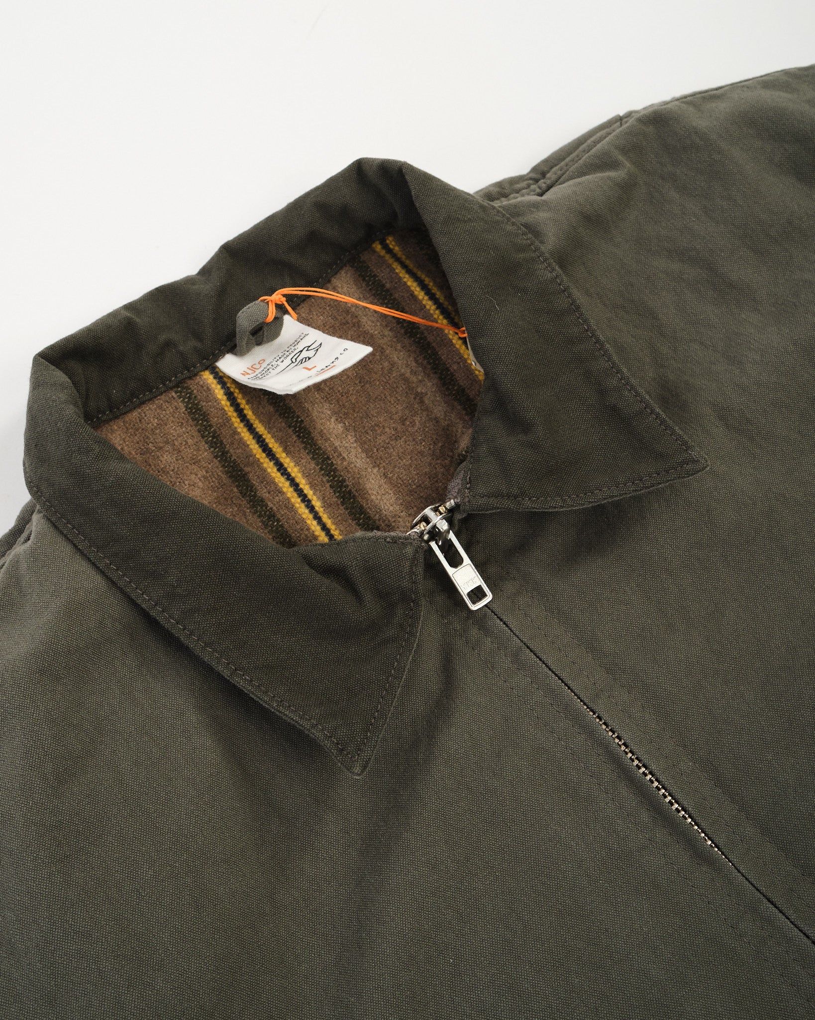 Il corpo è foderato con una coperta misto lana per il calore, mentre le maniche sono foderate con una miscela di cotone e poliammide riciclata, garantendo facilità di movimento. Un colletto in Duck Canvas verde scuro a contrasto ne esalta l'appeal vintage da lavoro. I dettagli aggiuntivi includono cuciture tono su tono, cuciture delle tasche a filetto curve e una robusta chiusura con zip, rendendola una giacca versatile che combina artigianalità ereditaria con funzionalità pratica.