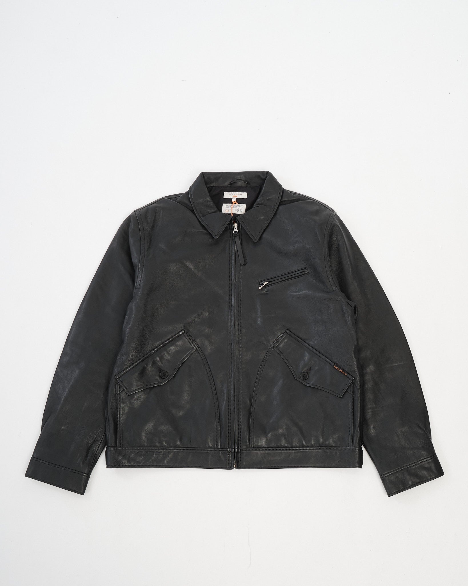 The 160985 Blake Zip Jacket Leather is crafted from vegetable-tanned lambskin with a super supple, soft hand and a short, boxy silhouette in a regular fit. It’s fully lined in a recycled polyamide/organic cotton blend for smooth layering, and finished with corozo buttons and antique silver trims for a nicely understated hardware look. Inside you’ll find two jetted pockets for essentials, plus adjustable cuffs and side tabs so you can dial in the fit. Produced in a gold-rated tannery with a focus on responsible manufacturing, including a verified living-wage contribution.