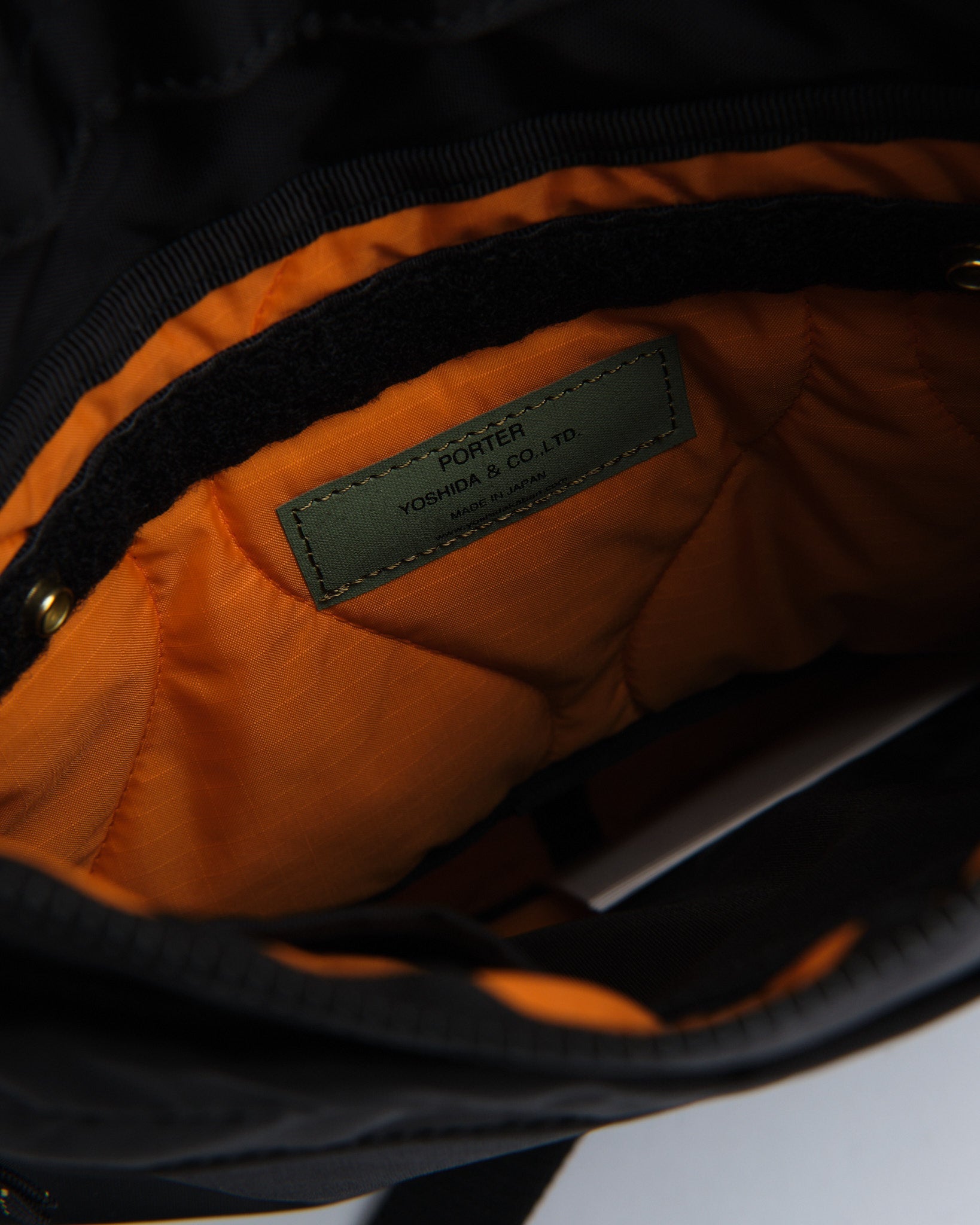 Prodotto in Giappone, la borsa mostra un'eccezionale maestria artigianale giapponese e attenzione ai dettagli in ogni cucitura. Il nylon trapuntato ripstop in arancione (colore di emergenza) aggiunge un tocco di colore e un ulteriore strato di durabilità.