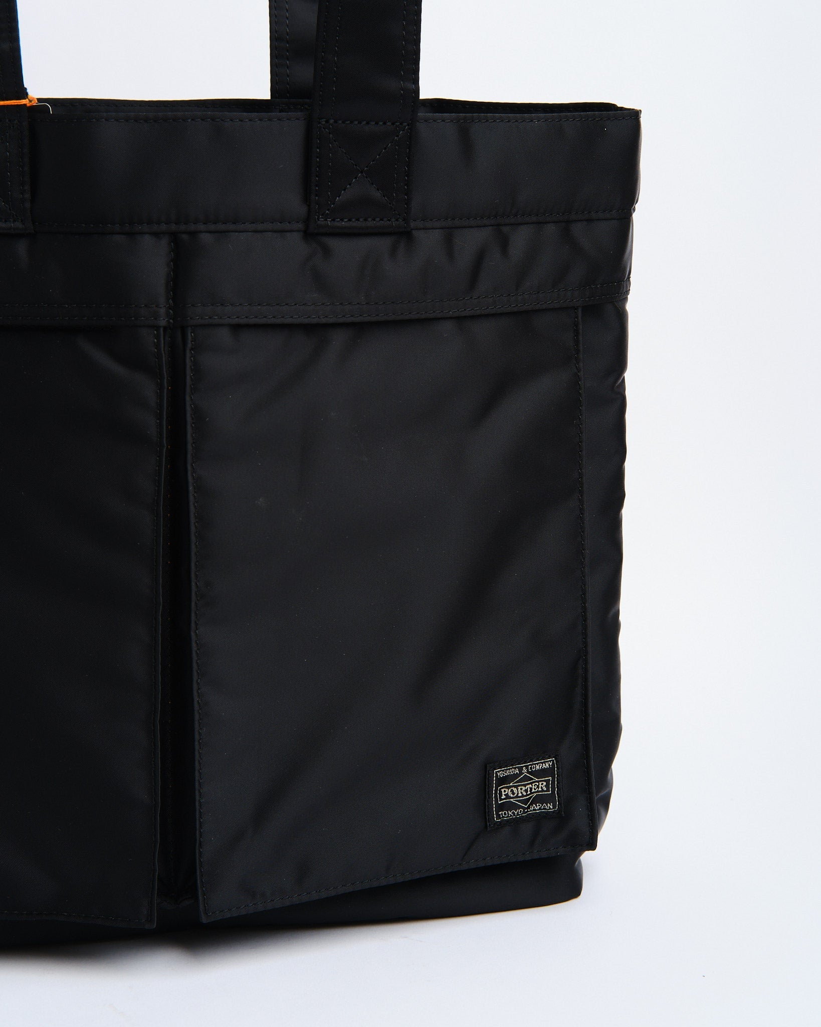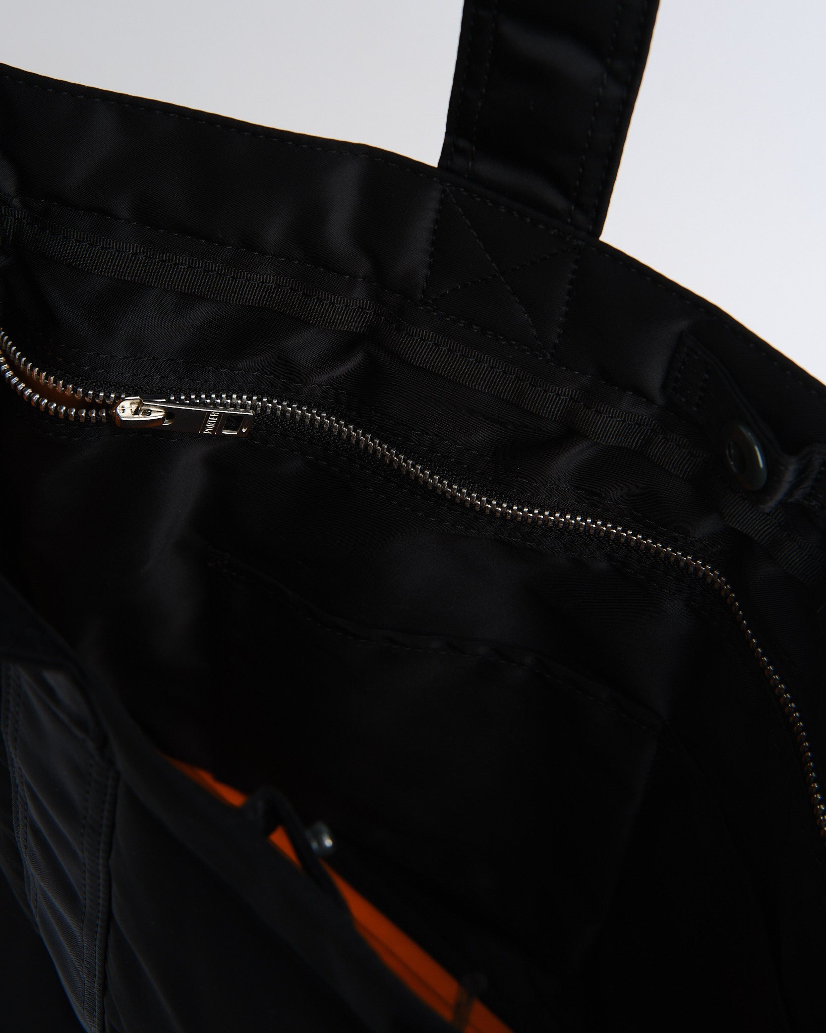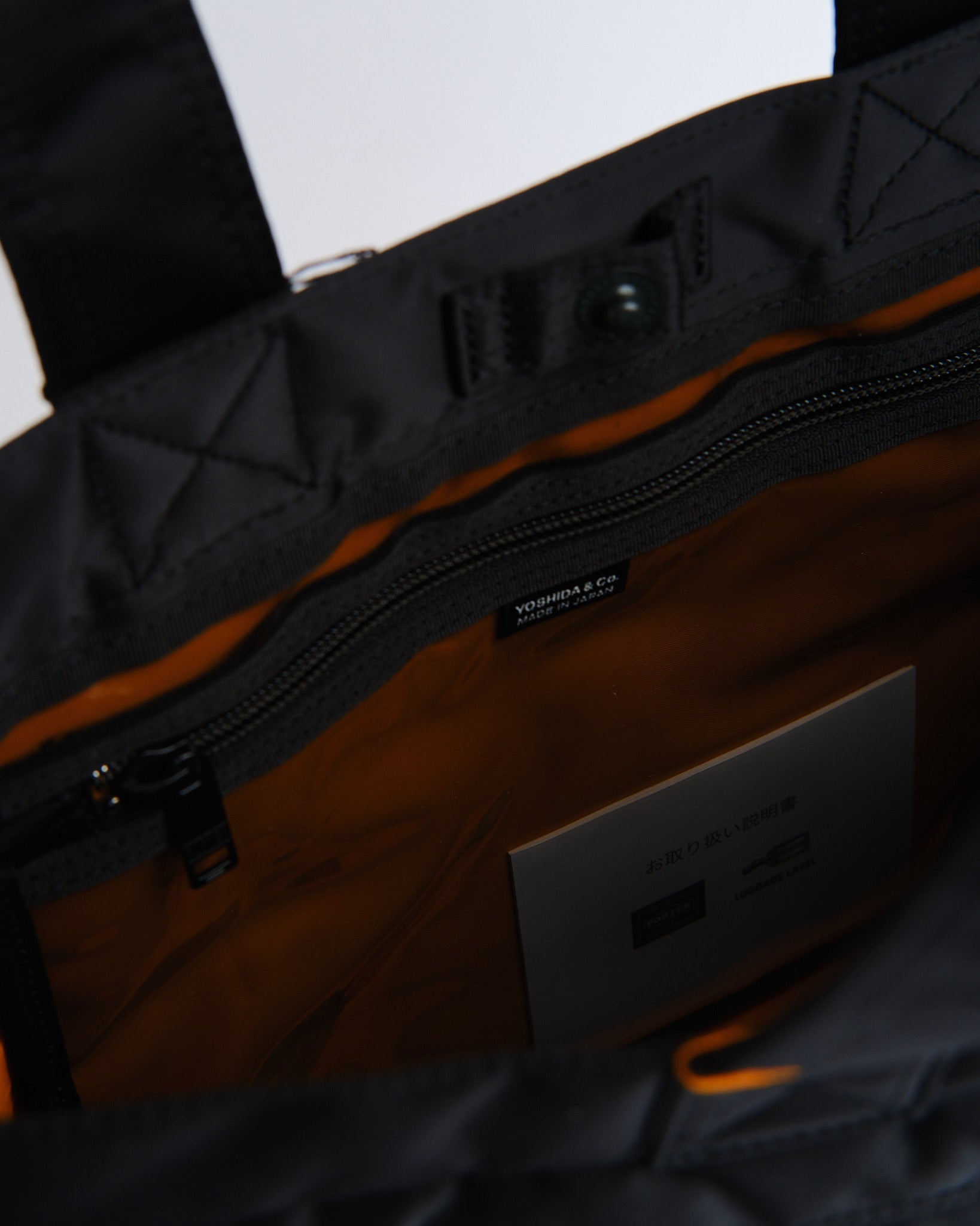 Presentiamo la Black PORTER YOSHIDA TANKER TOTE BAG, un vero e proprio testamento all'eccellente artigianalità giapponese. Ispirandosi alla giacca MA 1 senza tempo, la serie Tanker fonde senza sforzo stile e funzionalità. Questa borsa tote vanta una costruzione a tre strati che combina nylon, cotone poliestere e taffetà di nylon per un'estetica accattivante e una durata di lungo periodo. Presenta una fodera arancione, due manici comodi e più tasche chiuse con cerniere o bottoni a pressione. Nonostante il suo aspetto, questa borsa tote offre un'ampia funzionalità con una tasca interna con cerniera, una tasca trasparente e tasche anteriori distintive. I manici allungati la rendono facile da portare a spalla - perfetta, per l'uso e comodamente dimensionata per contenere documenti A4.