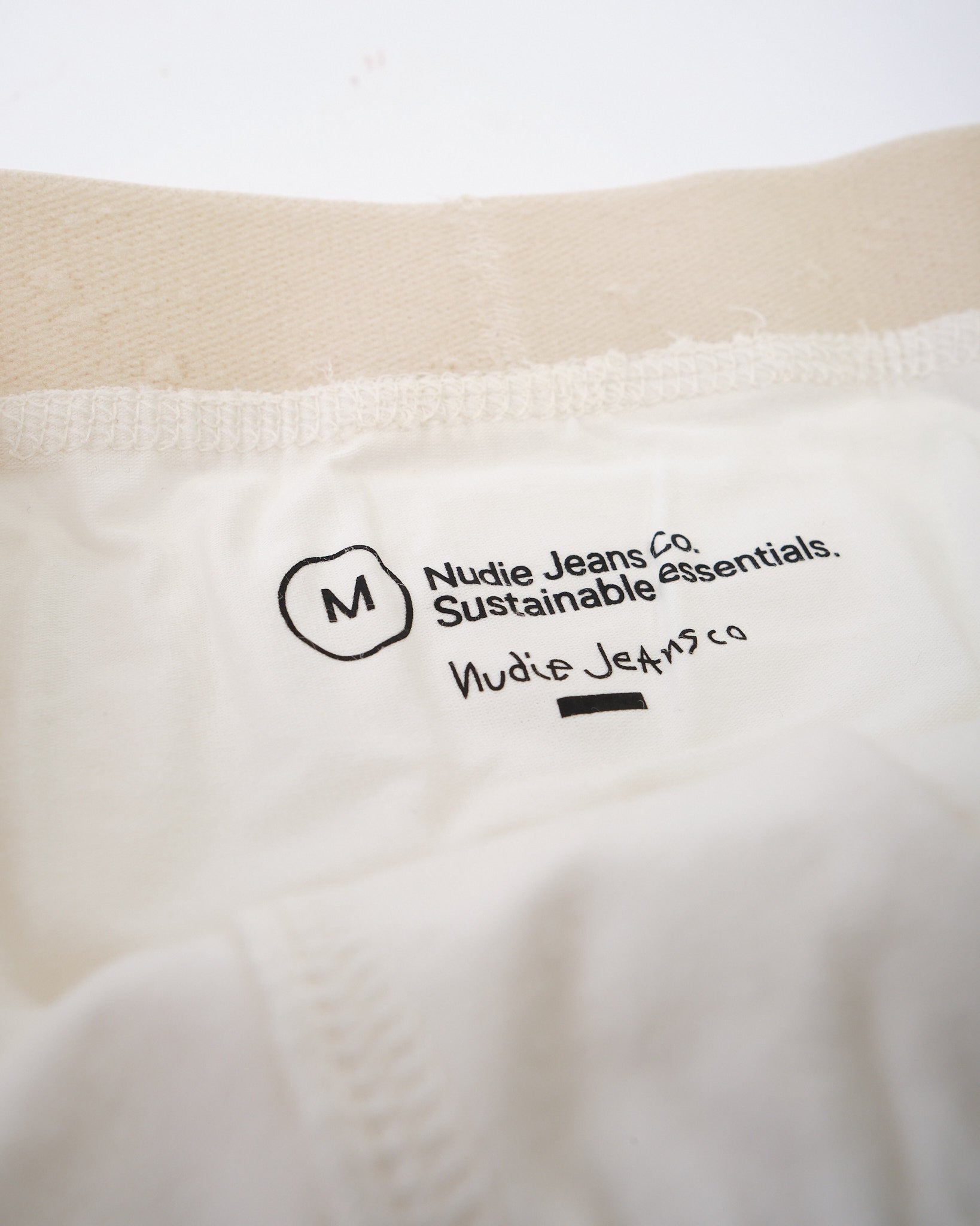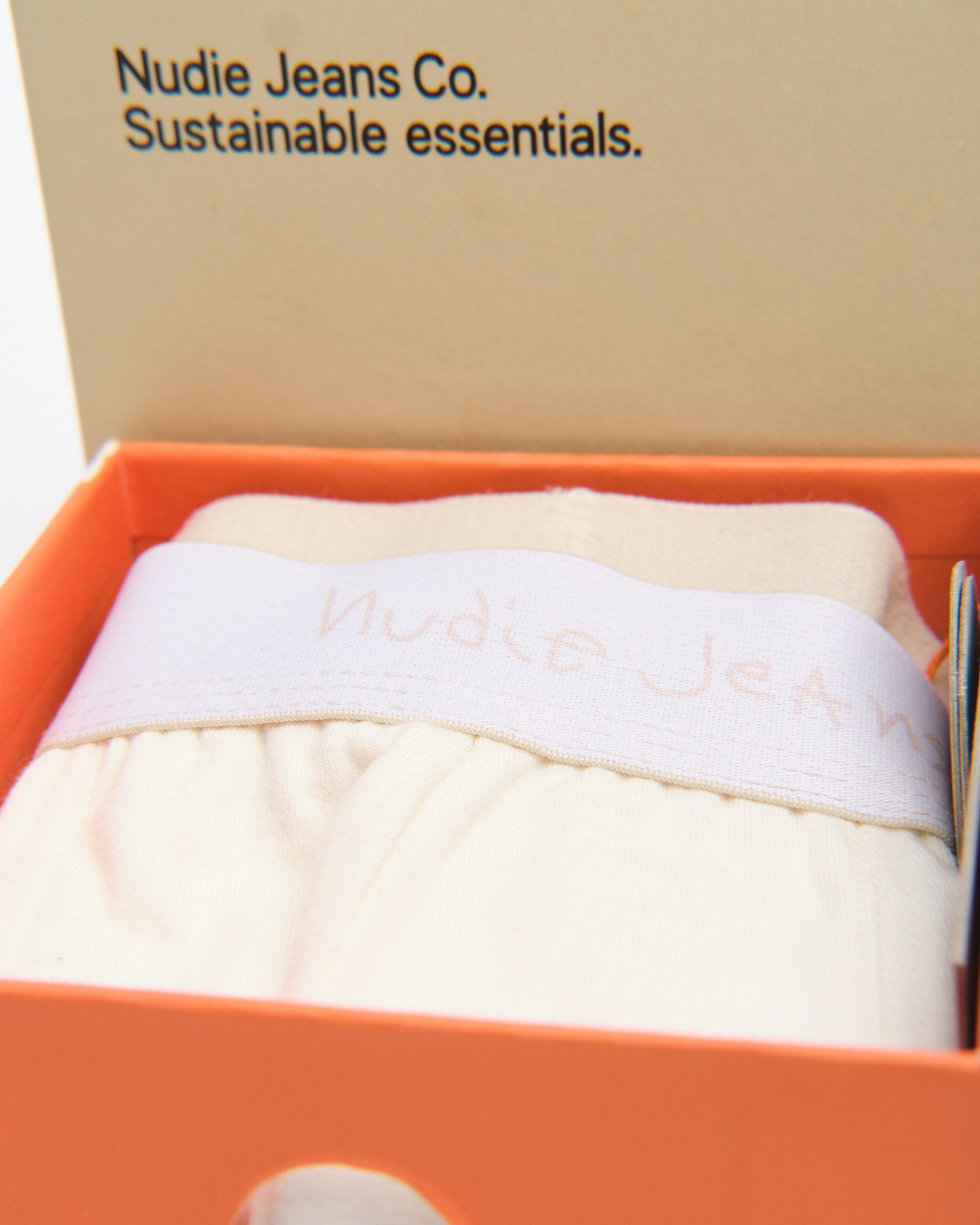 • Single pair of Nudie Jeans boxer briefs in offwhite.