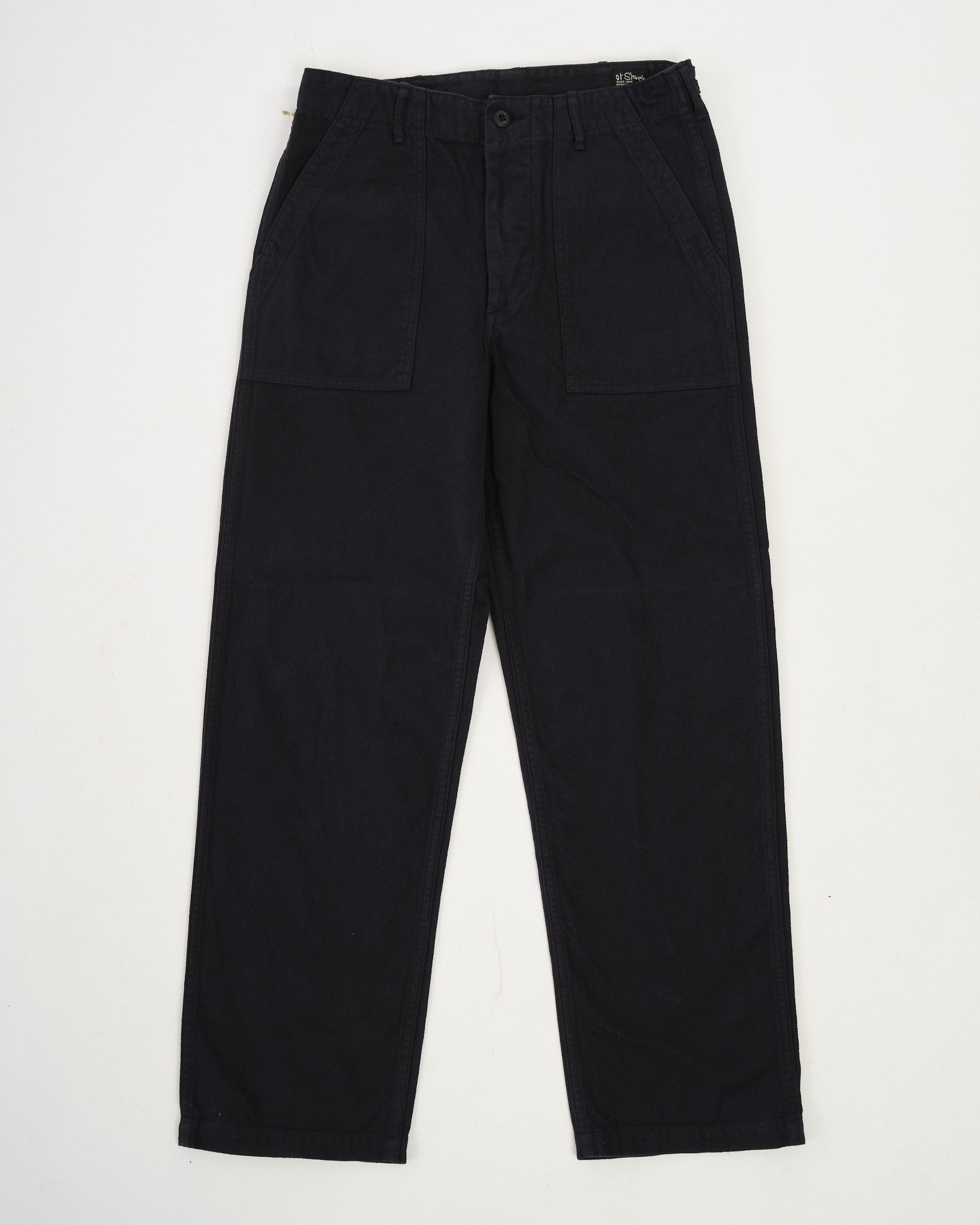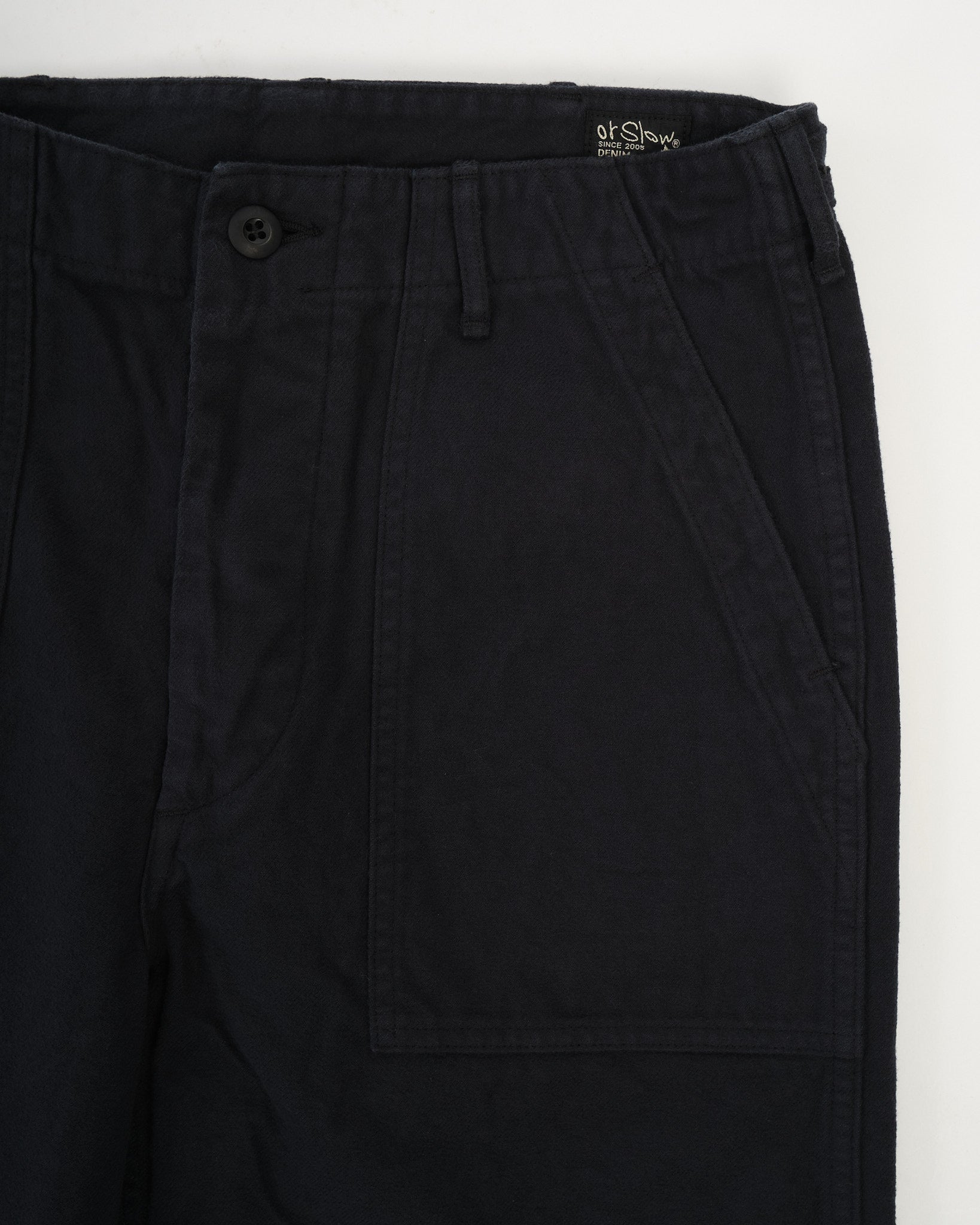 I pantaloni in flanella spazzolata di orSlow offrono uno stile classico dell'esercito statunitense in una versione più morbida e accogliente. Realizzati in Giappone in flanella di cotone di colore blu scuro, il tessuto è spazzolato per una sensazione calda e confortevole, perfetta per i mesi più freddi. Il design mantiene intatti i dettagli iconici della fatica: ampie tasche applicate anteriori, linguette regolabili con bottone in vita e proporzioni a gamba dritta. Combinando l'eredità militare con la portabilità quotidiana, questi pantaloni sono facili da abbinare a maglie, camicie o capispalla quando le temperature si abbassano.