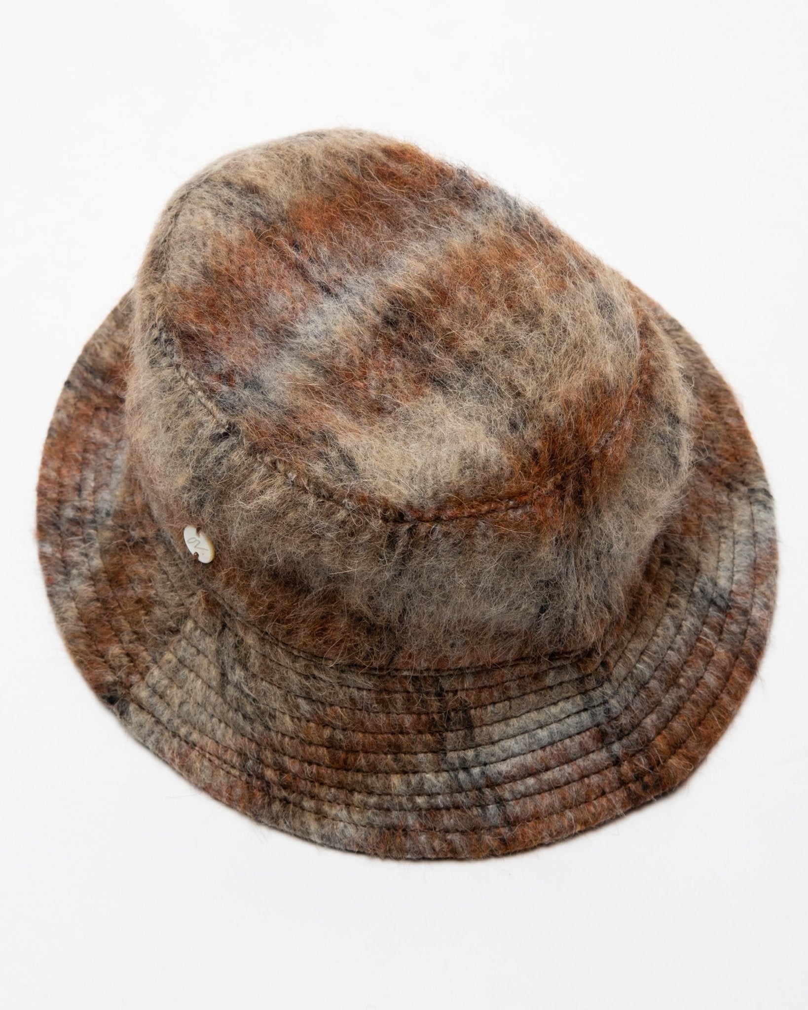 Bucket Hat Ament Check Mohair di Our Legacy. Uno dei migliori cappelli a secchiello autunno/inverno che abbiamo visto negli ultimi anni. Bellissima variante di colore Ament abbinata alla sensazione accogliente del mohair.