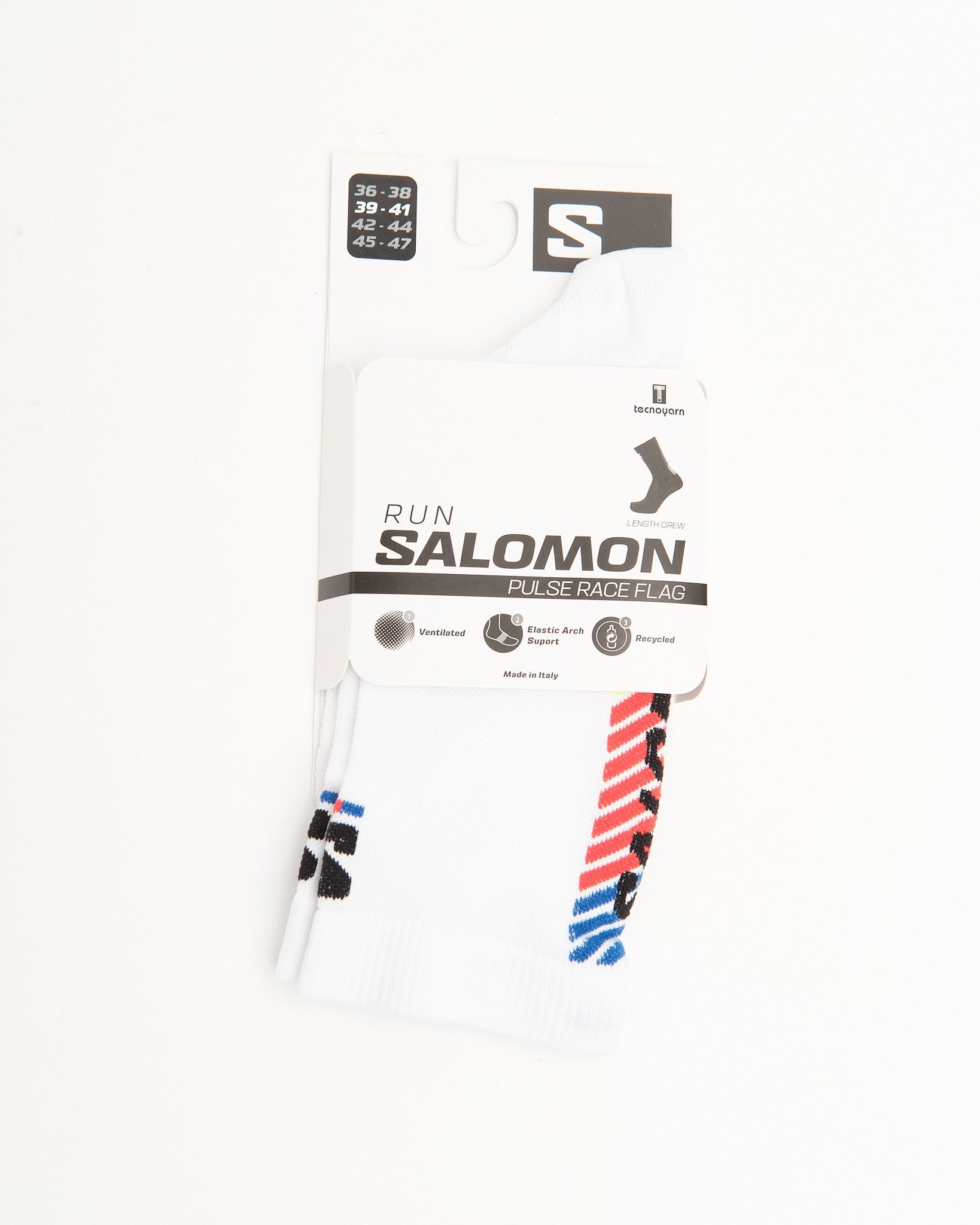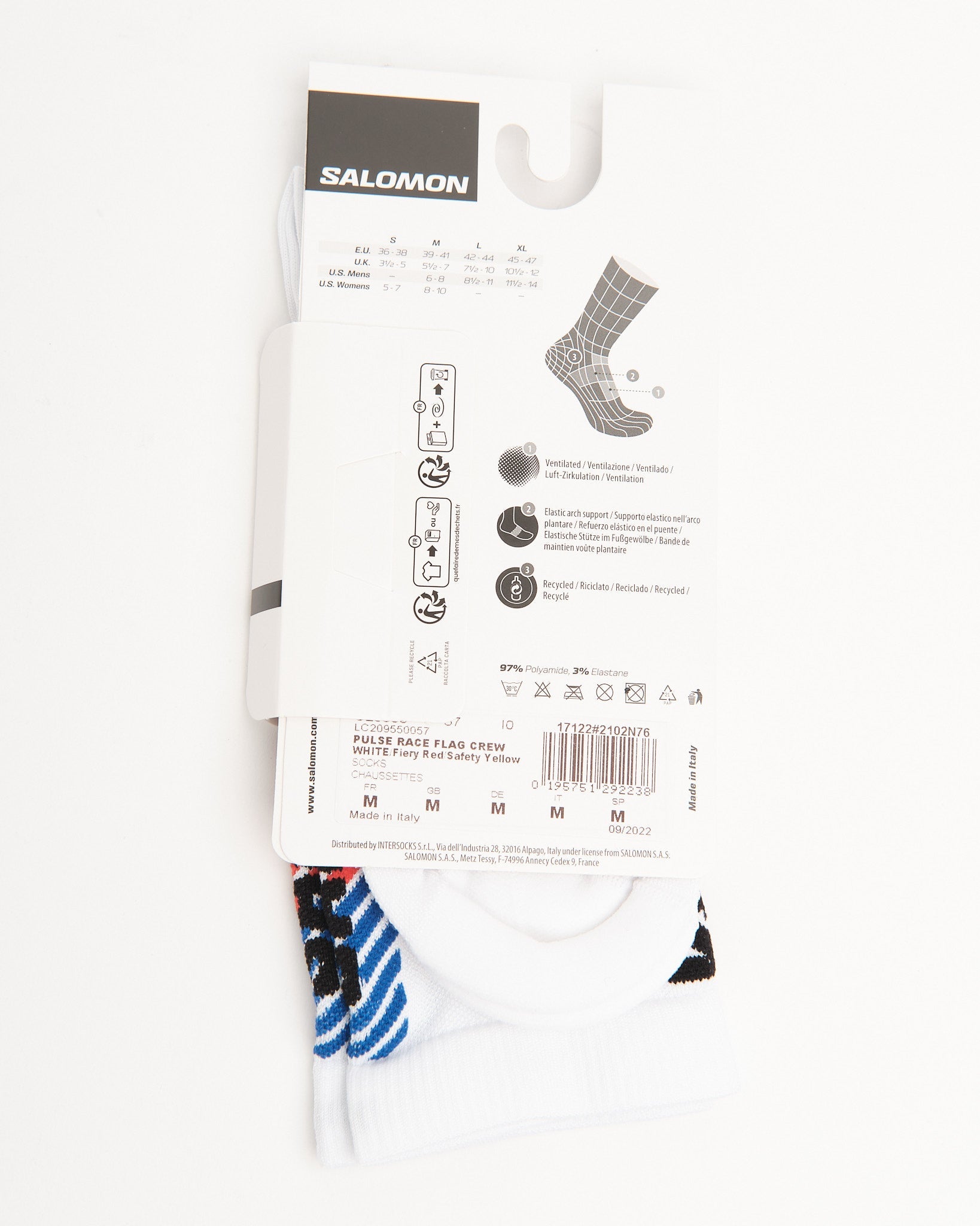 Calza da Equipaggio con Bandiera di Gara Pulse Bianco/Rosso Fuoco/Giallo Sicurezza di Salomon.