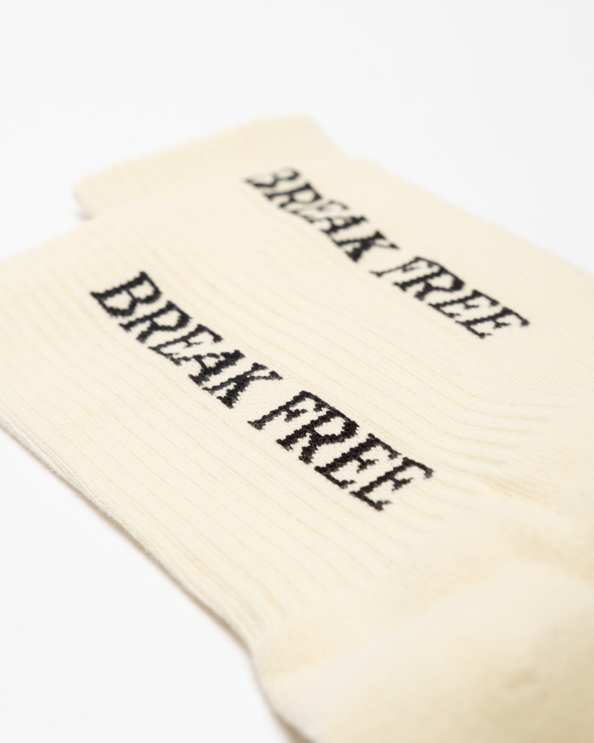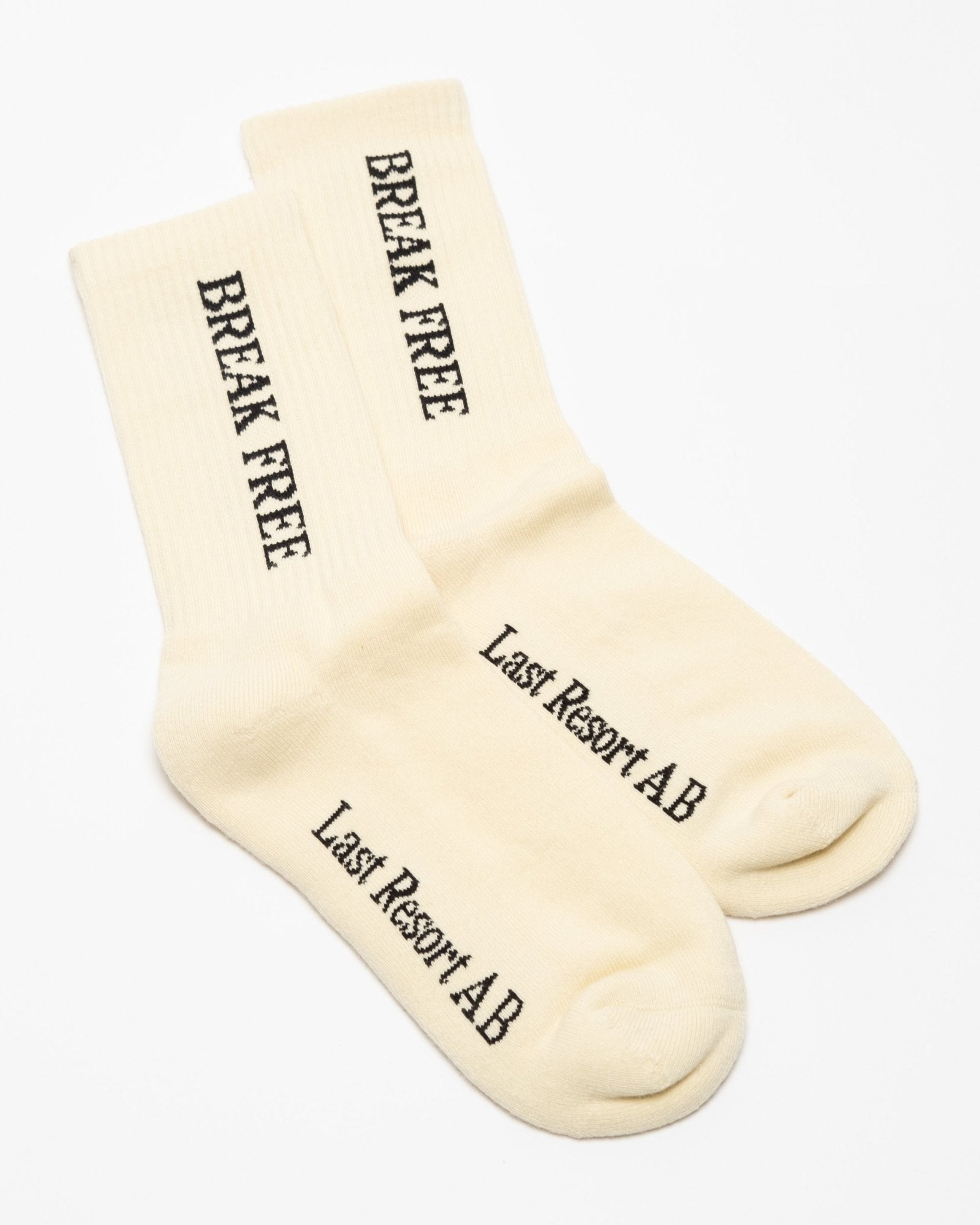 Calze Break Free 1 confezione Bianco Crema di Last Resort AB. Calze spesse con logo ricamato. 85% cotone, 10% poliestere e 5% spandex. Prodotte in Vietnam.