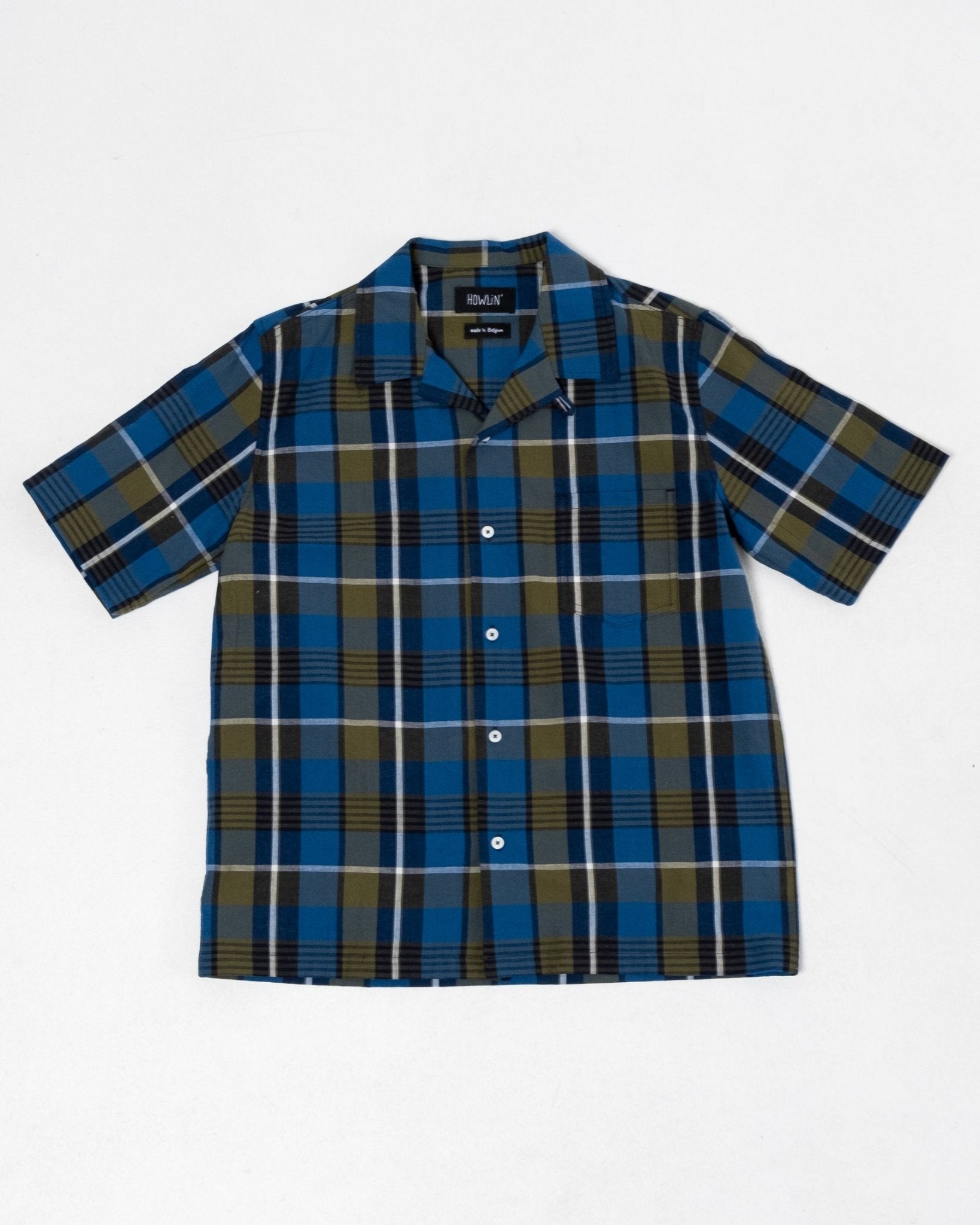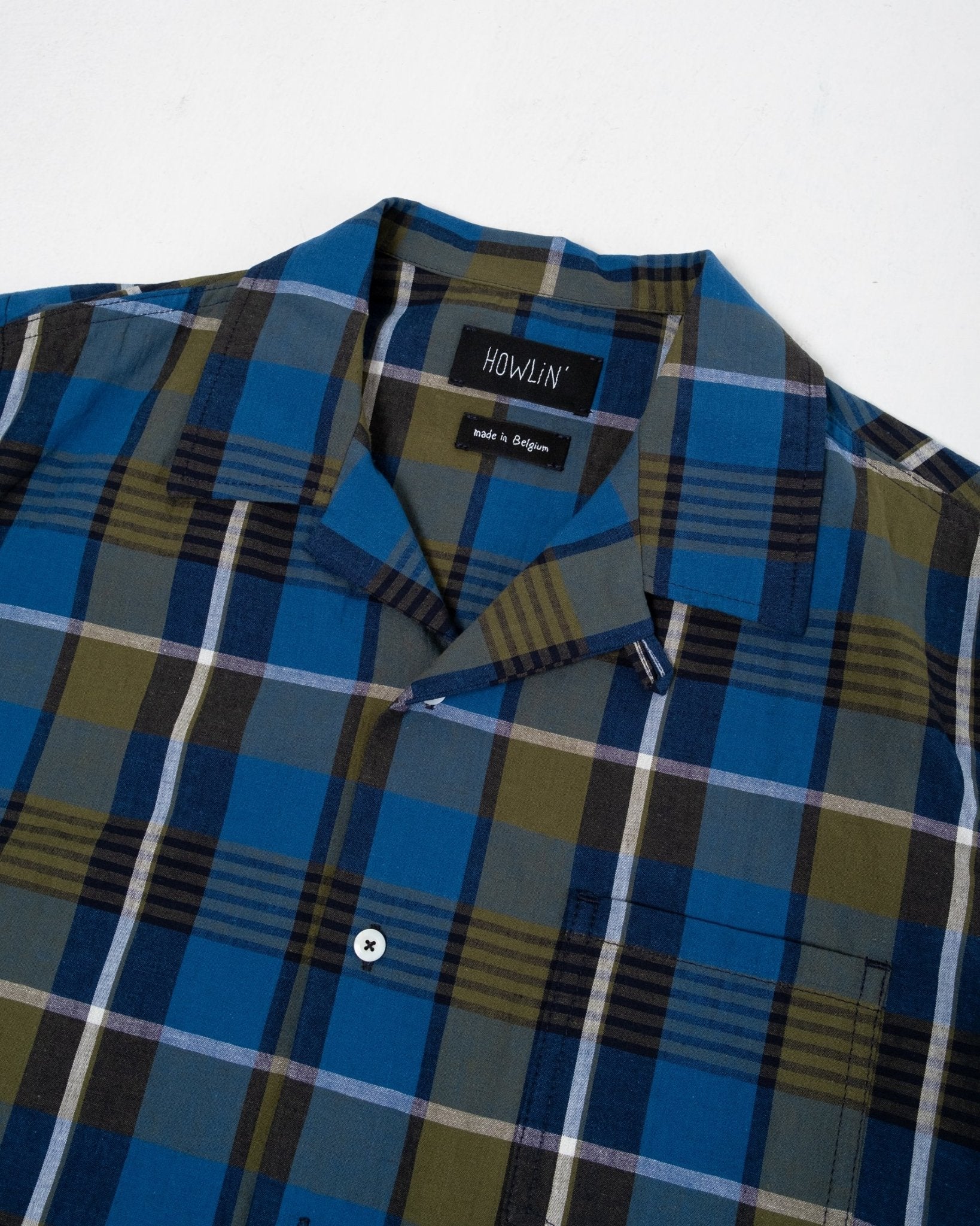 Camicia Cocktail a scacchi Madras di Howlin'. Camicia di vestibilità regolare realizzata con un tessuto giapponese. Una tasca sul petto e bottoni dall'Italia. Realizzata in Belgio.