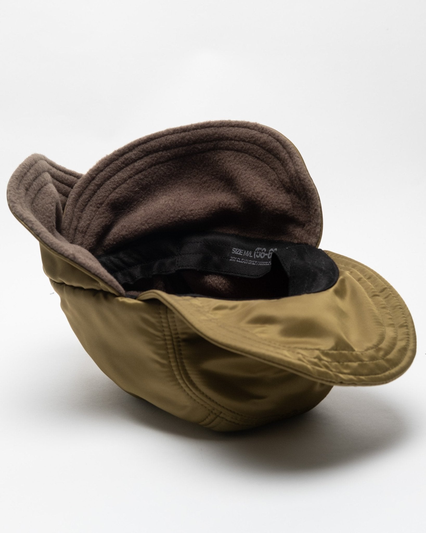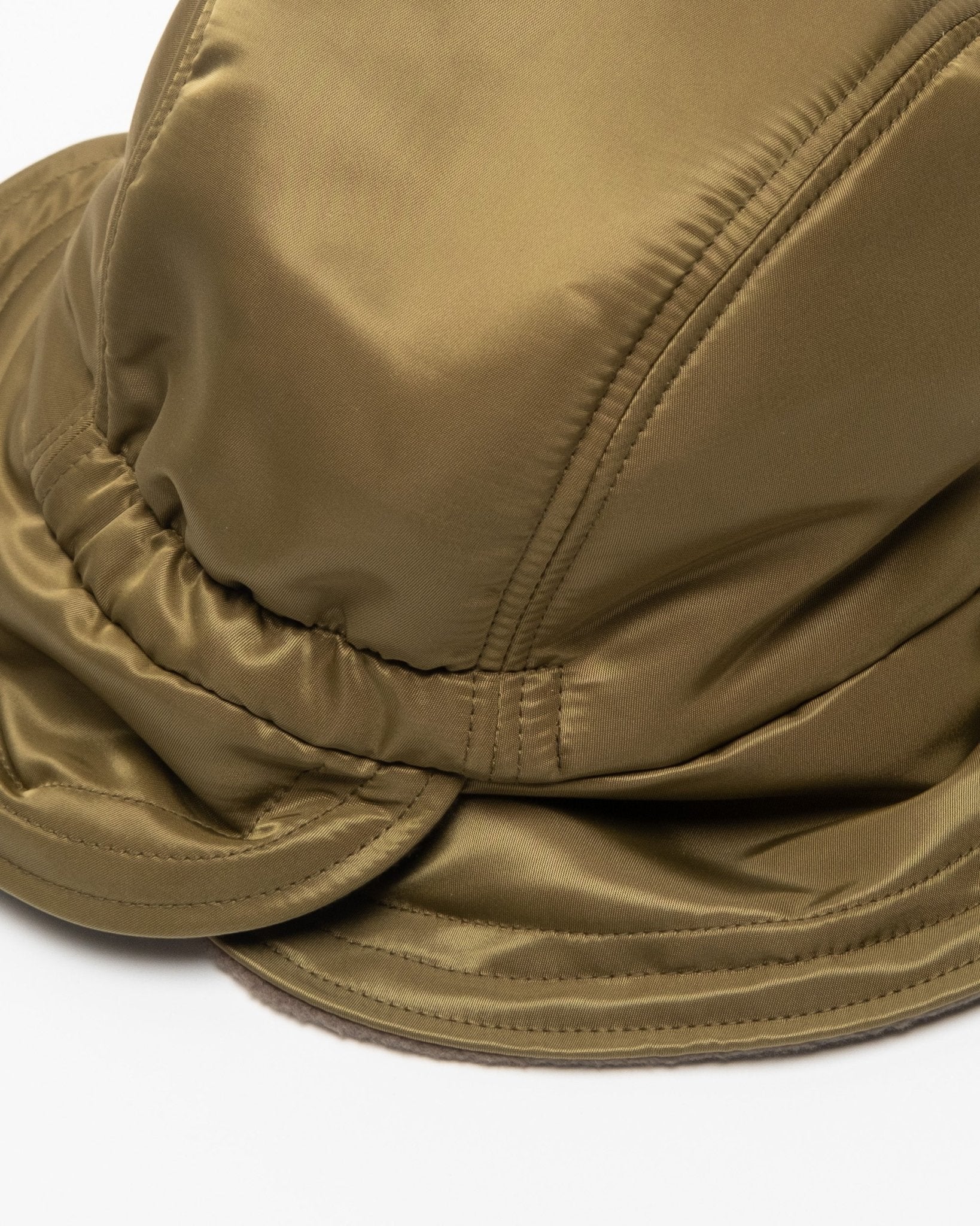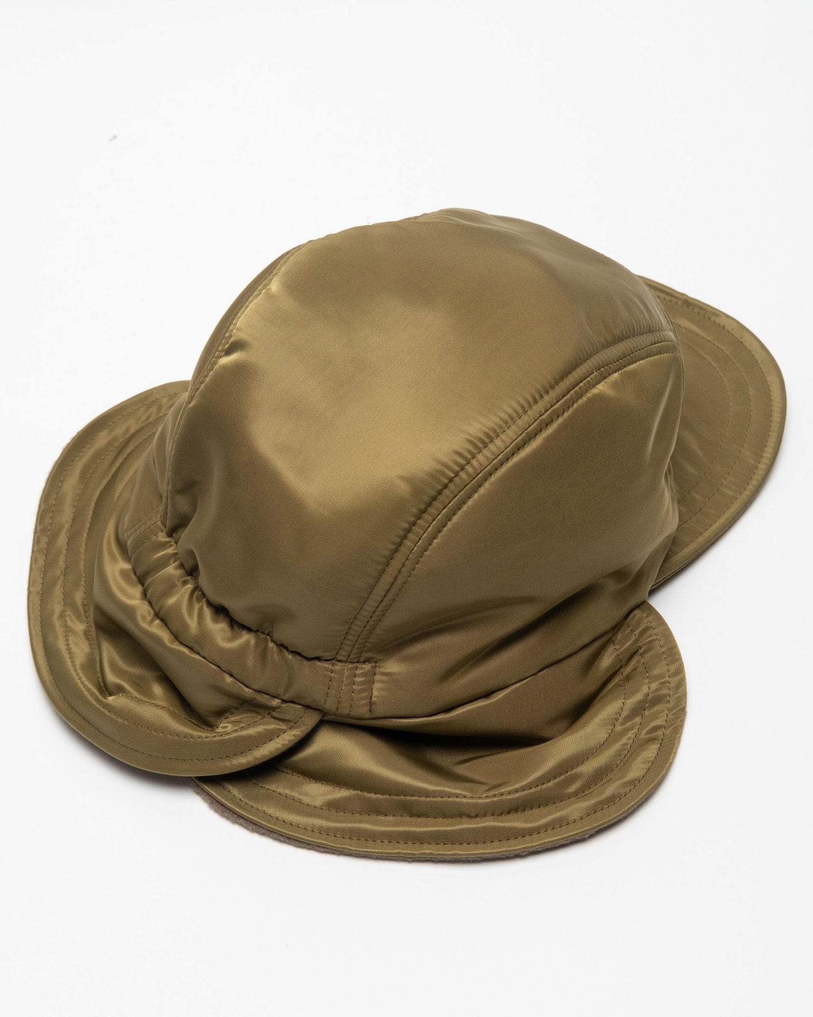 Cappello Lily Pad Verde di Found Feather. Questo cappello è ispirato ai cappelli da caccia vintage, ma presenta un design aggiornato, con 2 pannelli a telaio metallico sul retro del cappello. Questo è un cappello leggero, ma caldo e accogliente! Fodera in pile polare. Prodotto in Giappone.
