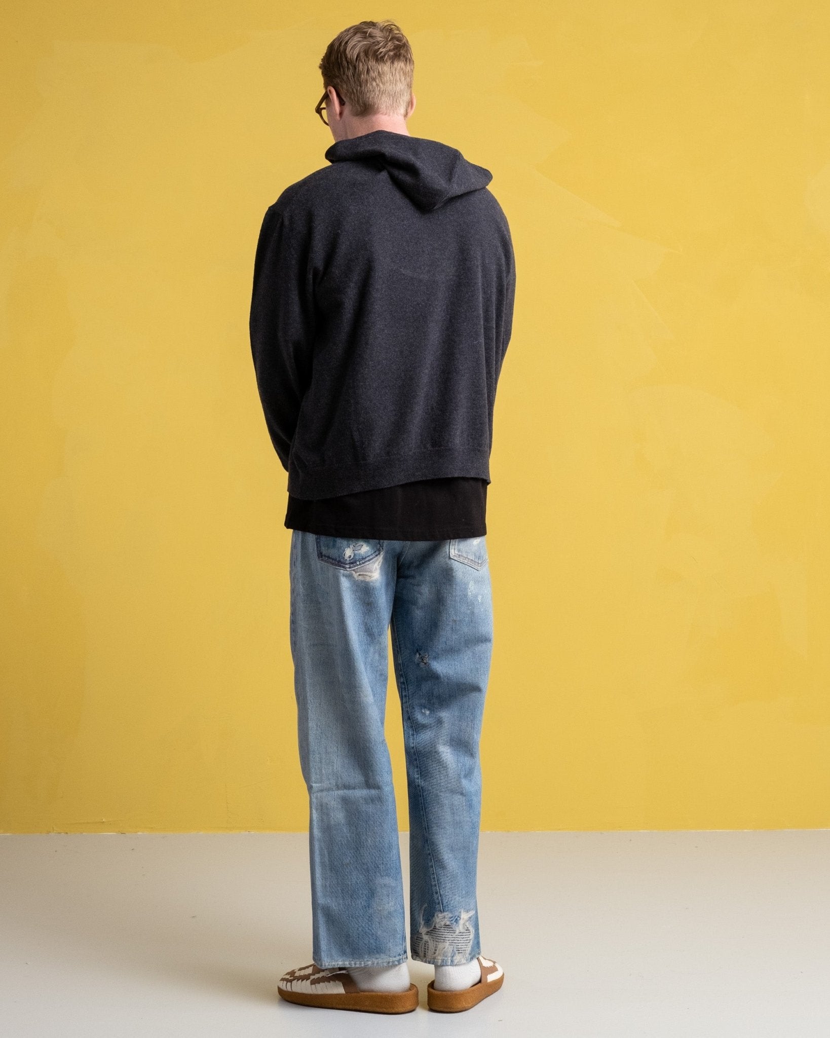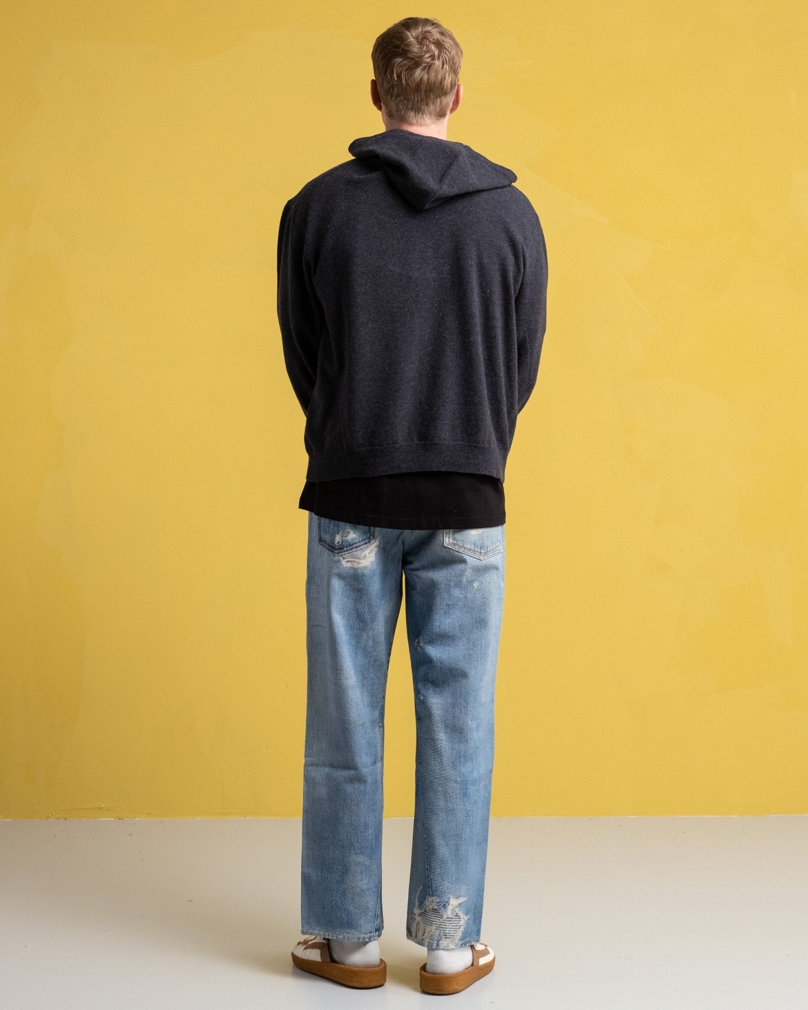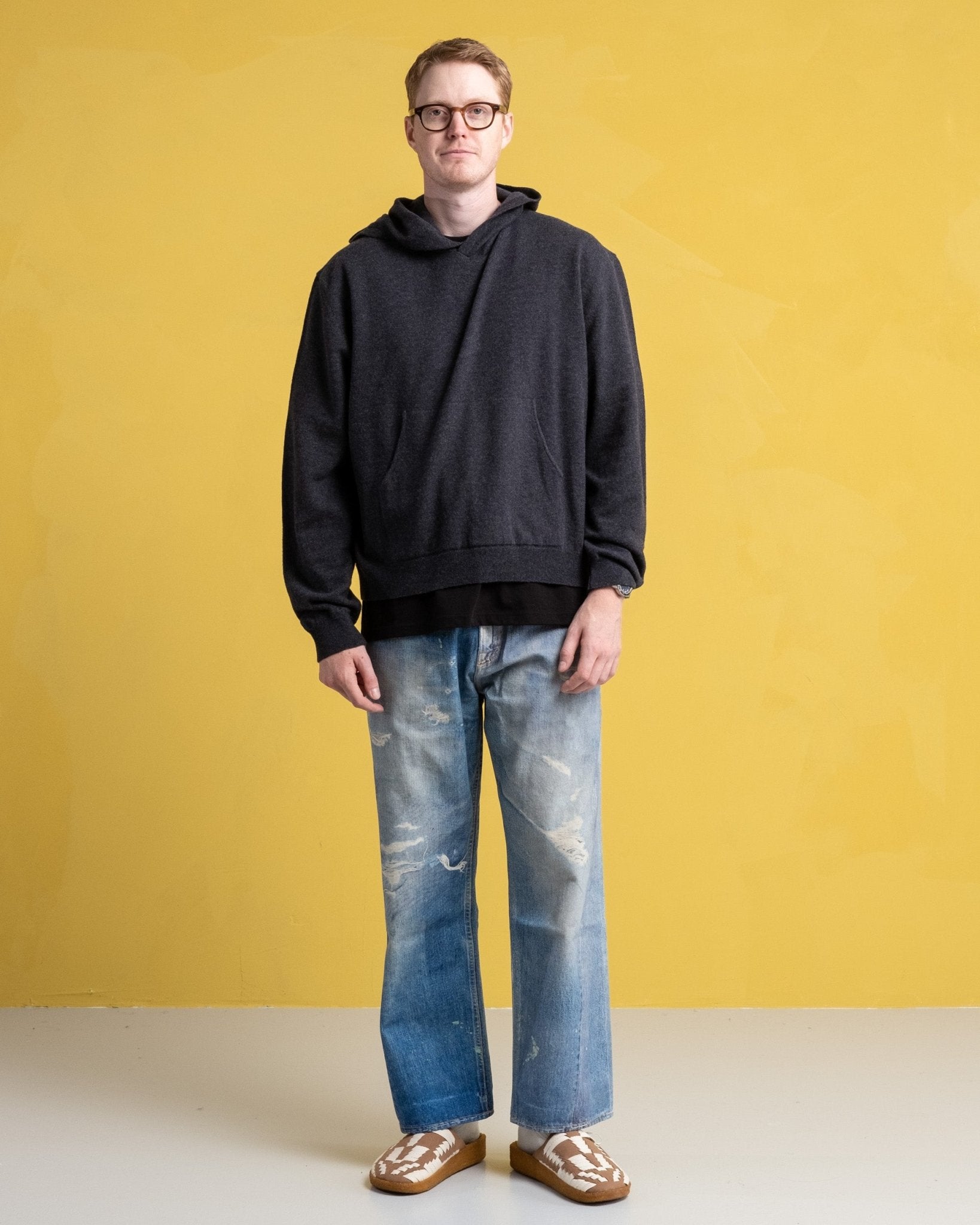 Felpa con Cappuccio in Maglia di Lana Melange Antracite di Our Legacy. Una felpa con cappuccio in maglia che non vorrai mai toglierti. Questo tessuto super morbido è realizzato in Italia con il 100% di lana vergine. Forse non hai mai cercato una felpa con cappuccio in lana maglia, ma ti assicuro, la vuoi. La vestibilità è abbastanza squadrata e super confortevole.