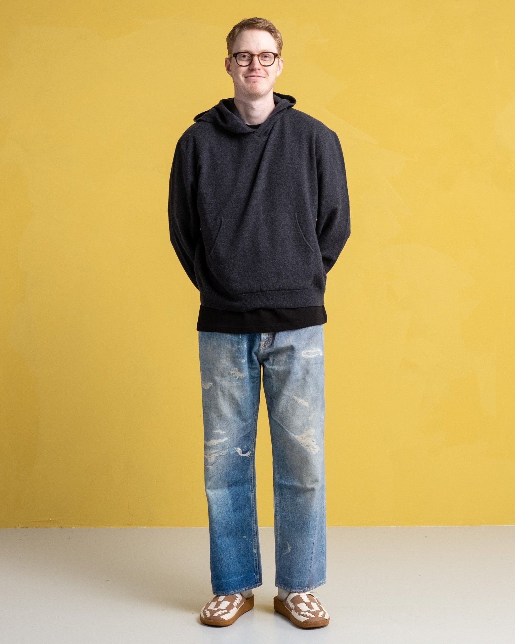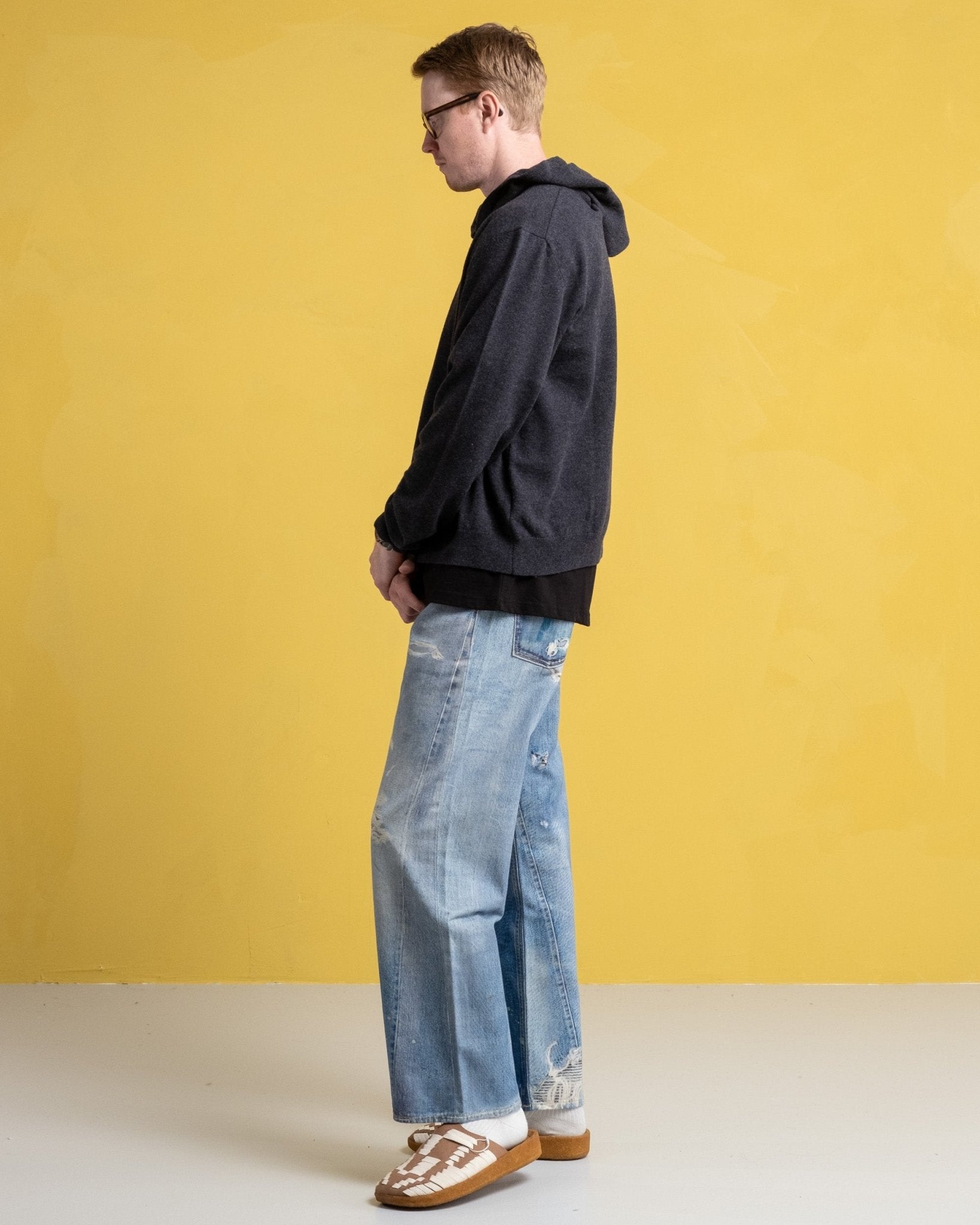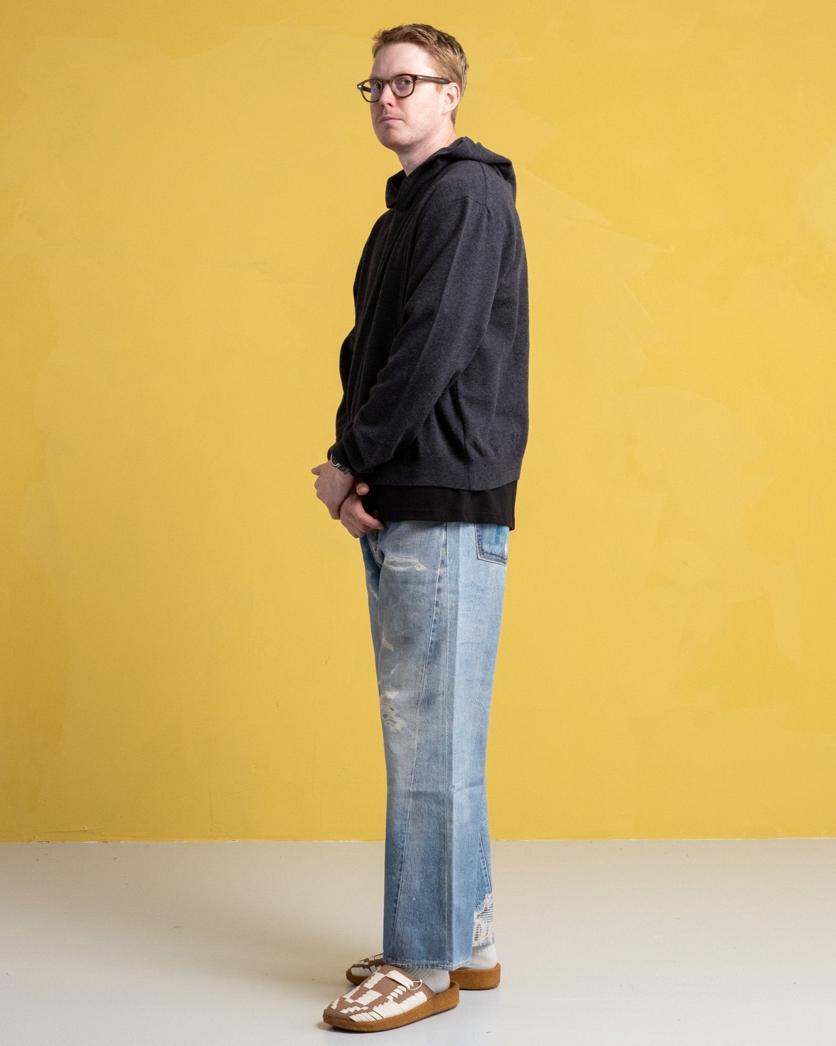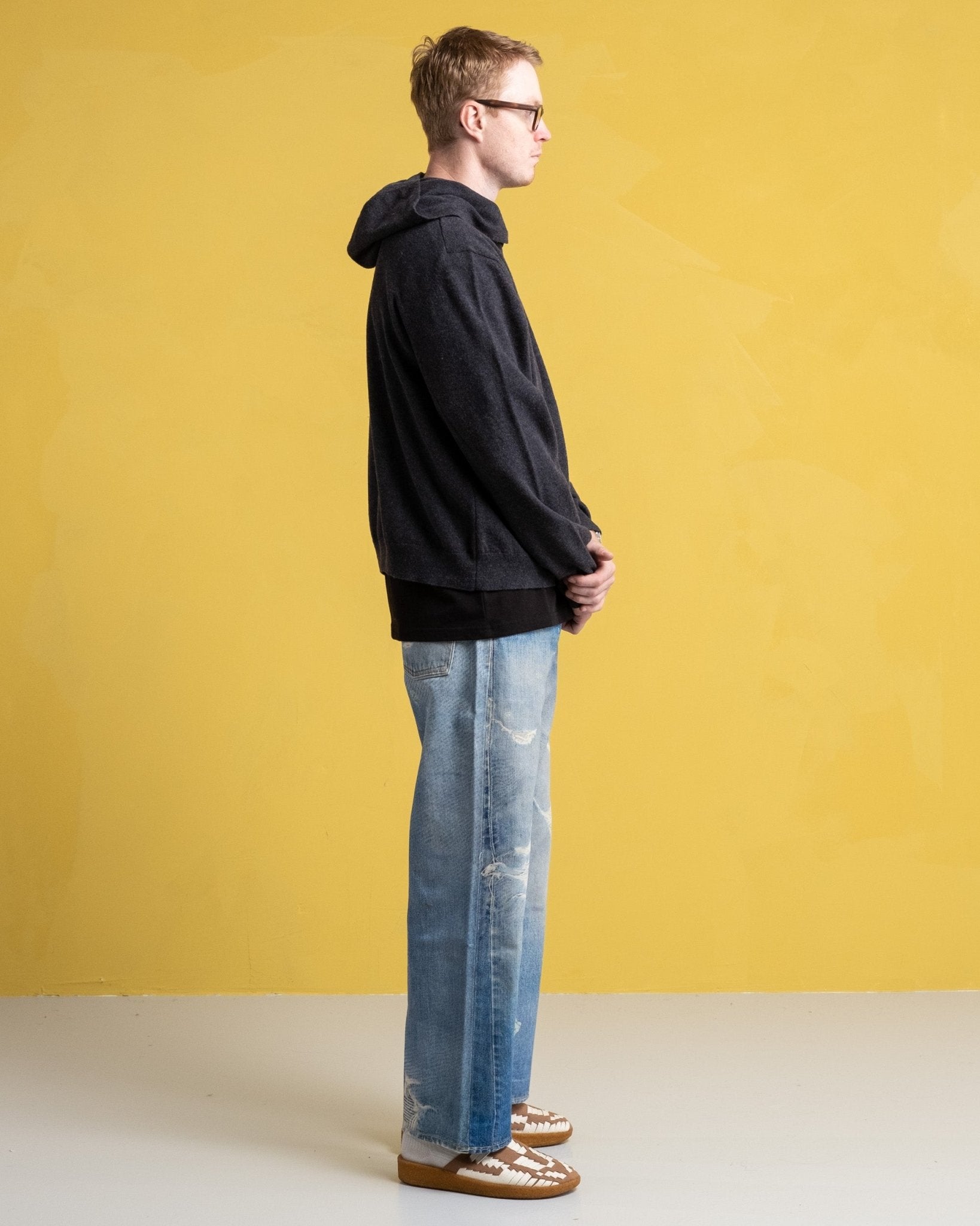 Felpa con Cappuccio in Maglia di Lana Melange Antracite di Our Legacy. Una felpa con cappuccio in maglia che non vorrai mai toglierti. Questo tessuto super morbido è realizzato in Italia con il 100% di lana vergine. Forse non hai mai cercato una felpa con cappuccio in lana maglia, ma ti assicuro, la vuoi. La vestibilità è abbastanza squadrata e super confortevole.