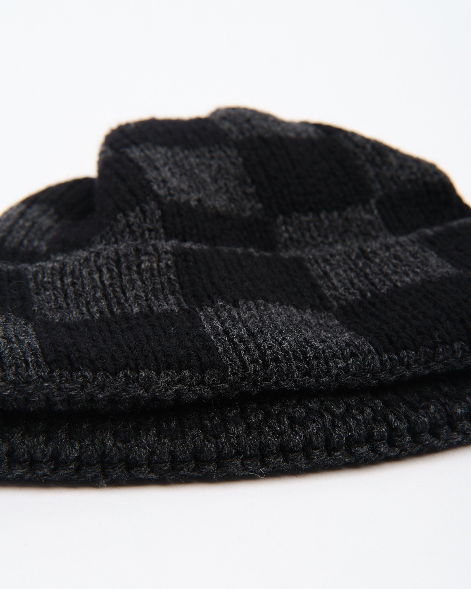 Il Beanie a Scacchi in Nero di Found Feather è un capo raffinato pensato per l'uso quotidiano. Realizzato in Giappone con morbida lana Donegal italiana lavabile, presenta una maglia jacquard che offre profondità visiva e una finitura sottilmente maculata. Una costruzione a pannello singolo e il filo elastico assicurano una vestibilità aderente e unisex, mentre il bordo di 7 cm e l'altezza della corona di 18 cm creano un profilo pulito e senza tempo. Rifinito con un'etichetta tessuta e un tag di cura codificato QR, è progettato per comfort, utilità e uno stile sobrio.