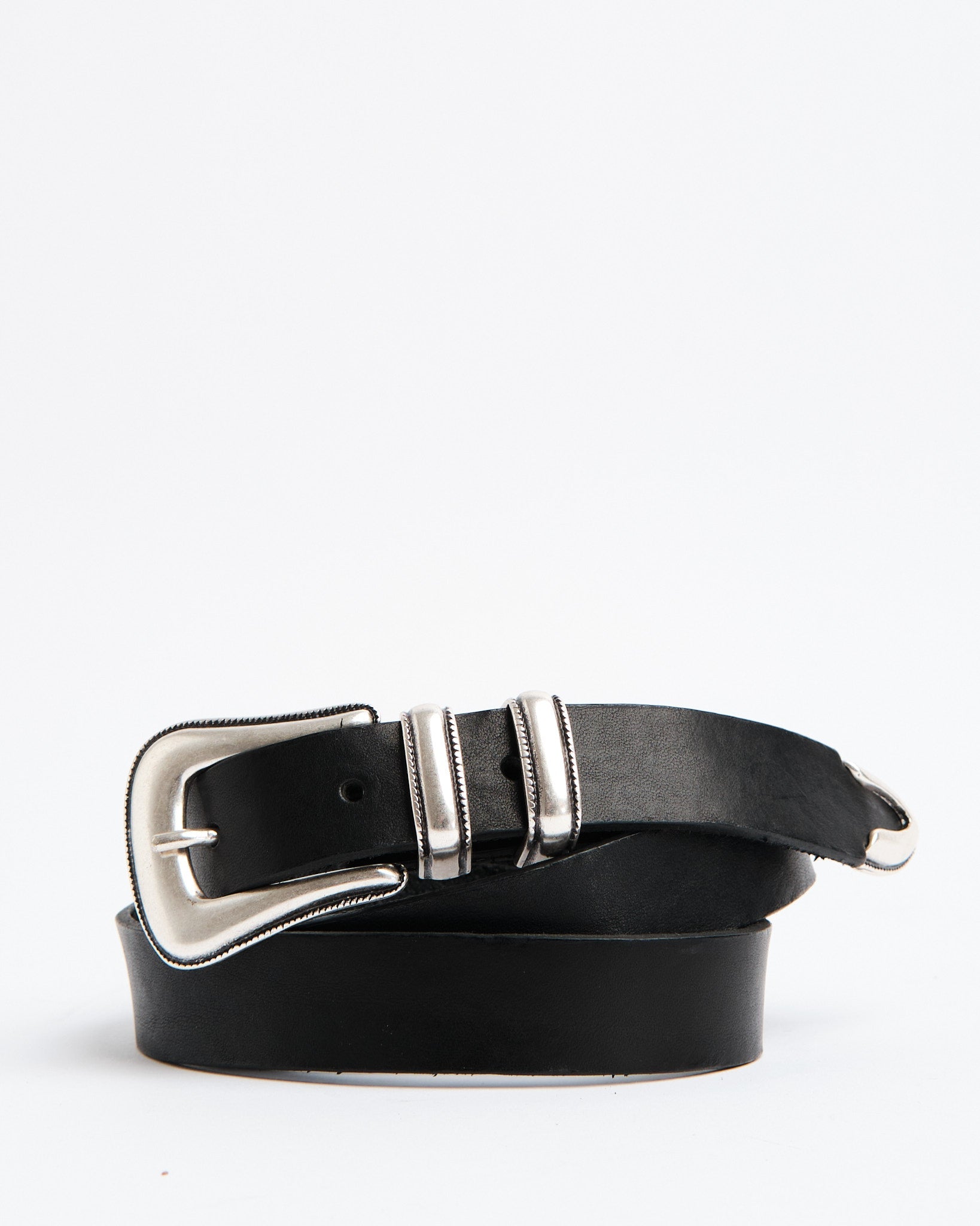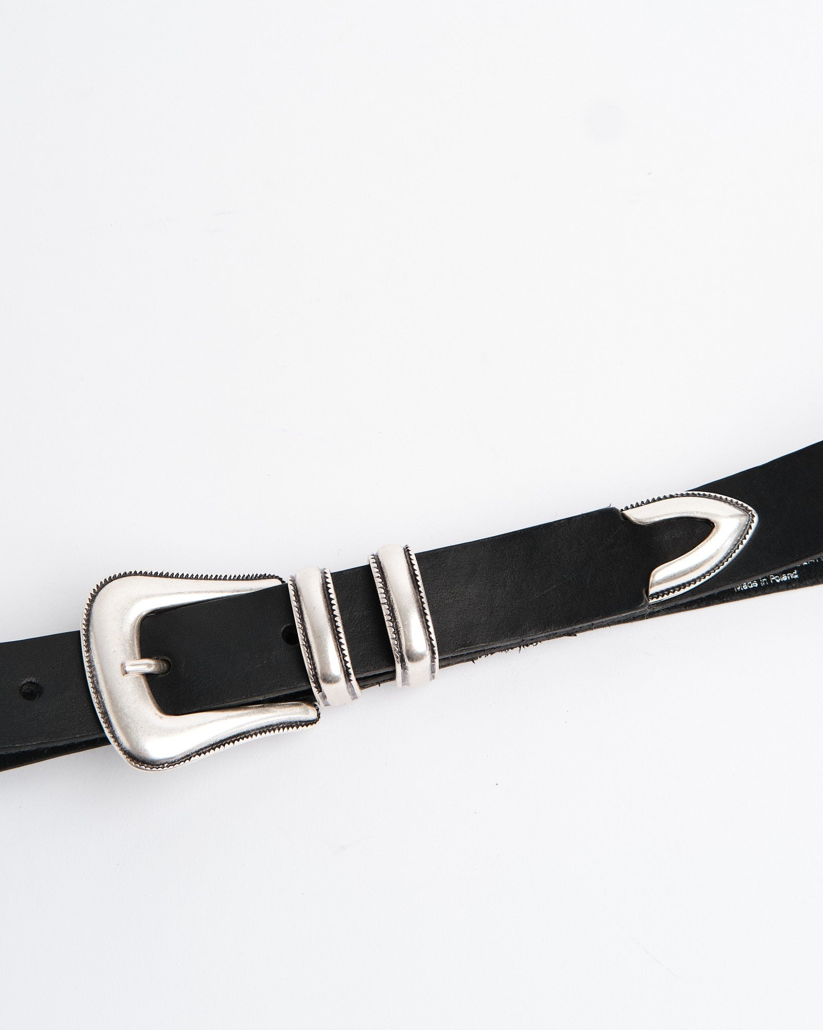 Lasciati sedurre dal fascino elegante della Cintura Western Silver Nera di Nudie Jeans Co. Realizzata in pelle pieno fiore conciata al vegetale di alta qualità, questa cintura aggiunge un fascino Western a qualsiasi outfit. Il suo design tradizionale presenta dettagli a puntini sui passanti, sulla punta e sui bordi della fibbia, conferendole un tocco unico che si adatta sia a look casual che eleganti. Ideale per coloro che apprezzano la qualità duratura e un'estetica classica.