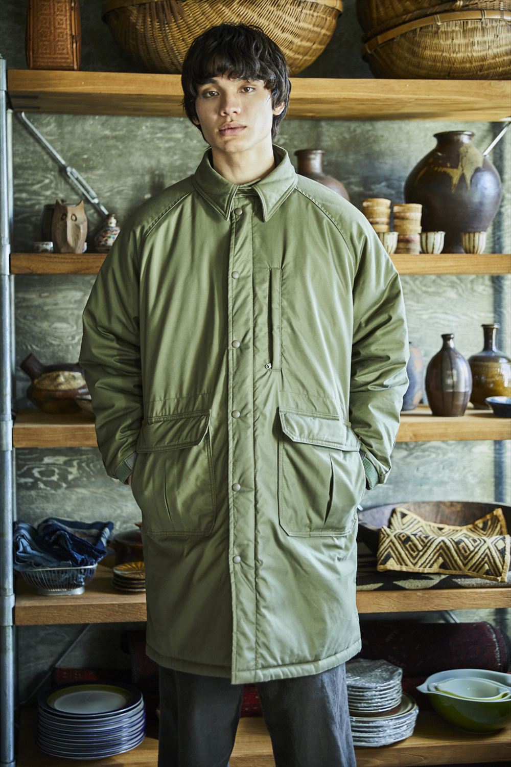 COTTON NYLON PADDING ACTIVE COAT ARMY GREEN