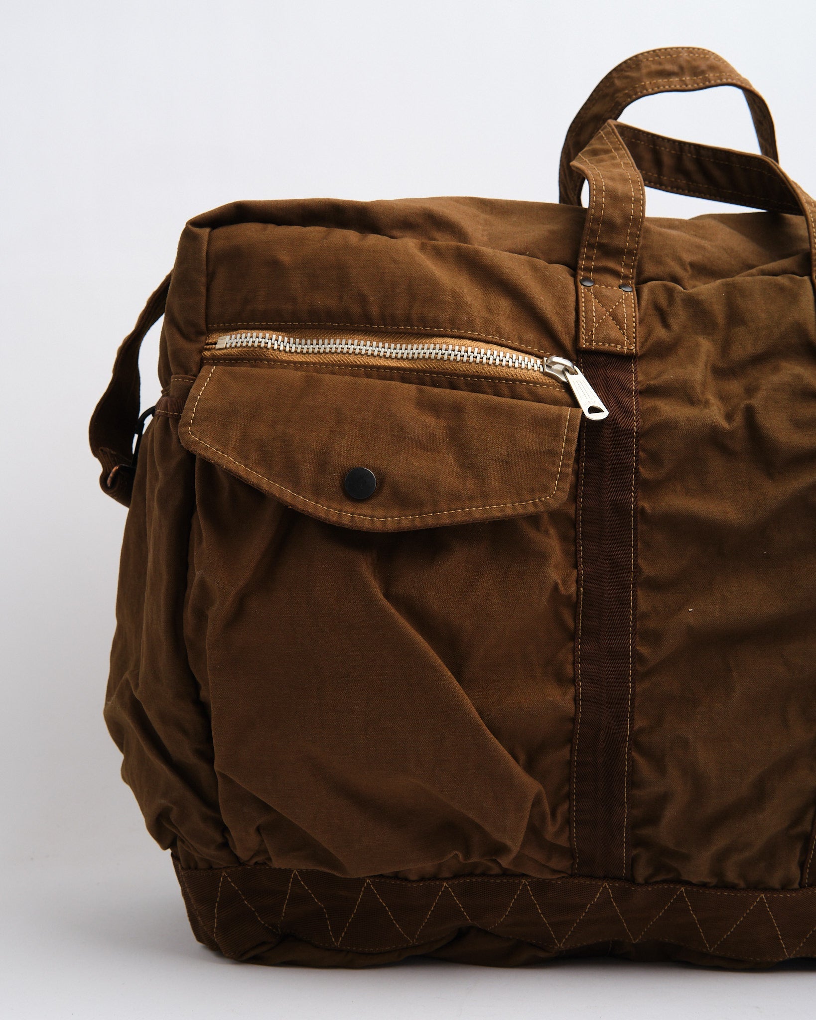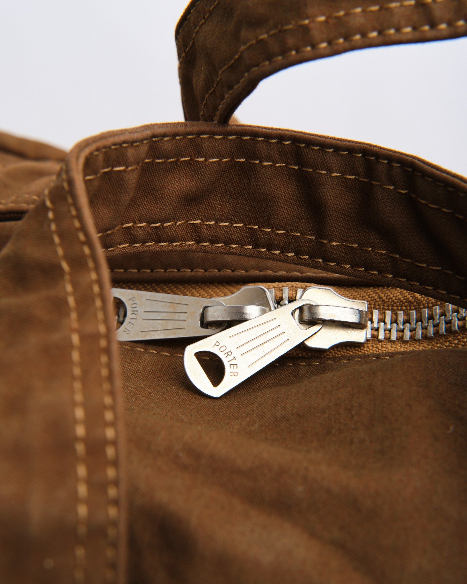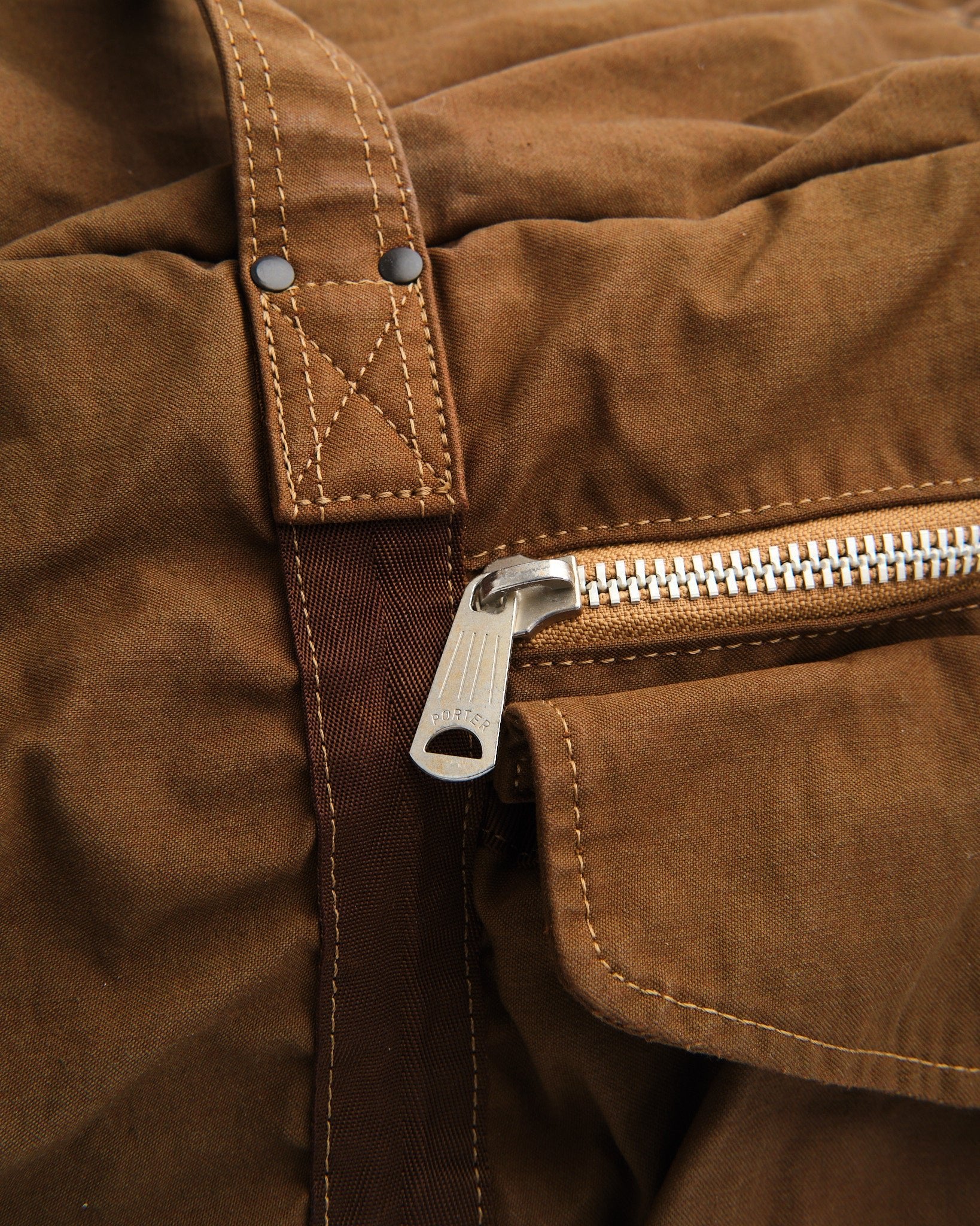 La PORTER BY YOSHIDA Crag 2-Way Boston Bag (L) in Coyote fa parte della serie PORTER CRAG, nota per la sua unica tecnica di tintura del prodotto che crea un colore profondo e ricco, migliorando la texture del tessuto. Realizzata in tessuto di raso di cotone, un blend ad alta densità di nylon e cotone, la borsa è stata tinta utilizzando il processo di tintura in due bagni, che produce tonalità vibranti e multidimensionali. La tecnica di tintura conferisce anche sottili differenze di colore, piega e restringimento, conferendo a ogni borsa un aspetto e una sensazione distintivi.